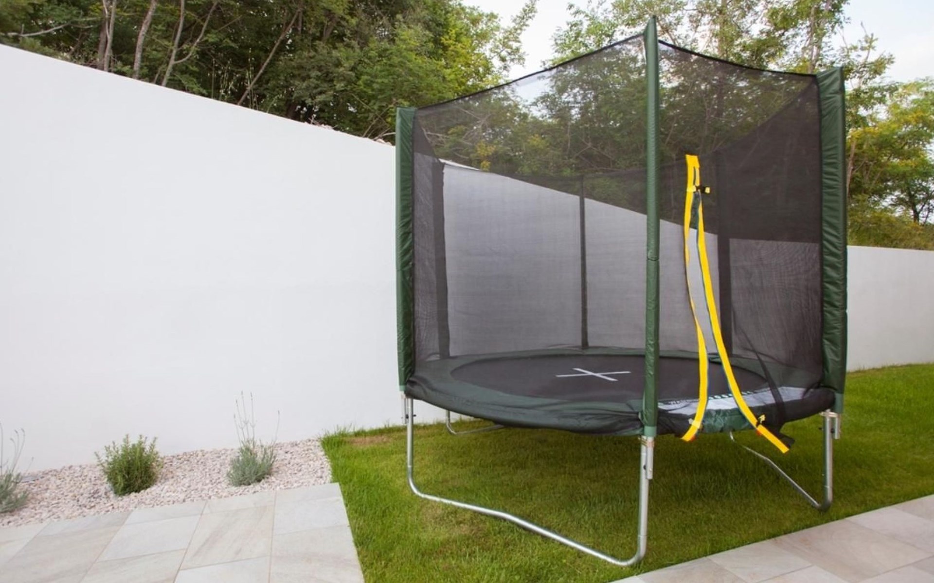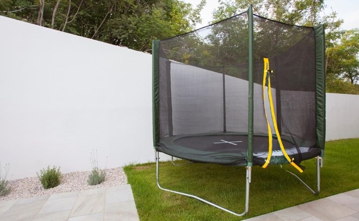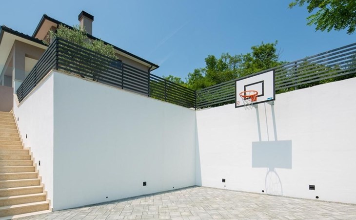 The outside of this amazing property is made for entertainment and relaxation. For those who enjoy peace and relaxation, there is a 45m2 pool and comfortable sun loungers for getting that summer tan. And for the more active guests, there is a variety of sports activities at your disposal: basketball court, volleyball, trampoline, badminton, and a bocce ball court. In conclusion – the kids won't ever be bored, and you don't have to worry about their safety, because the whole property is fully fenced and away from the crowds.