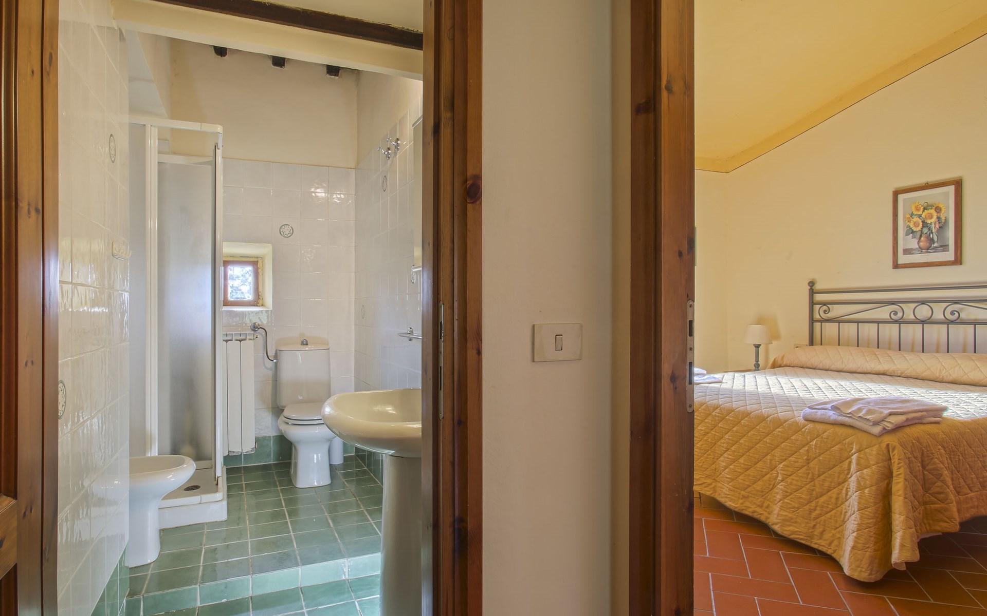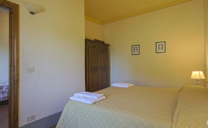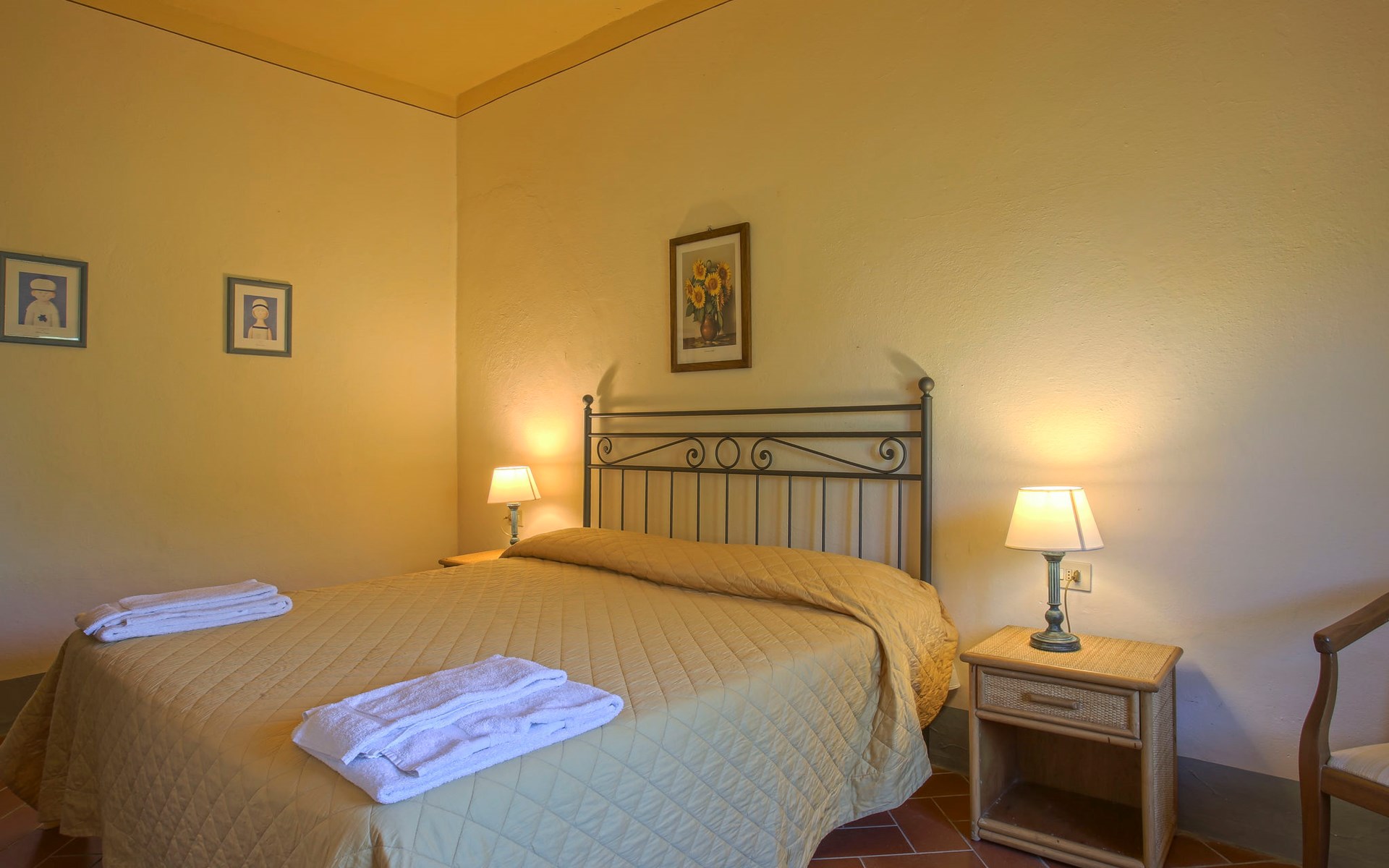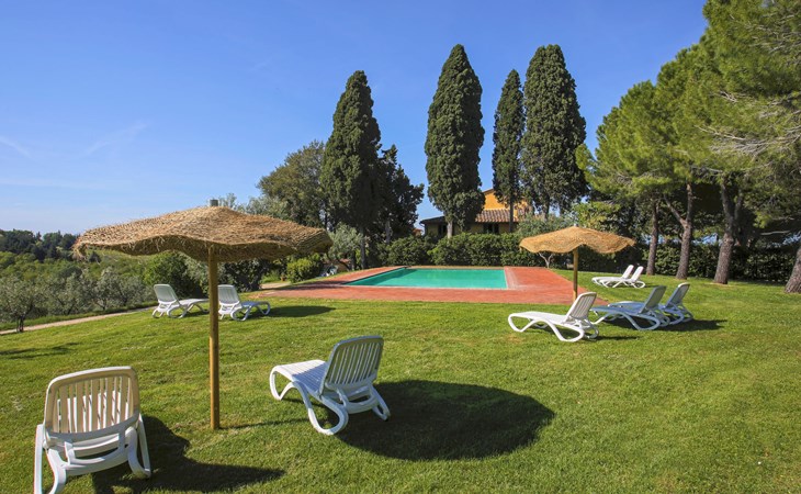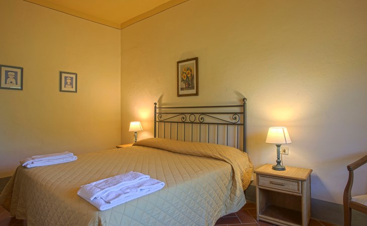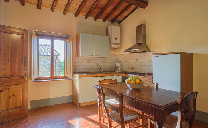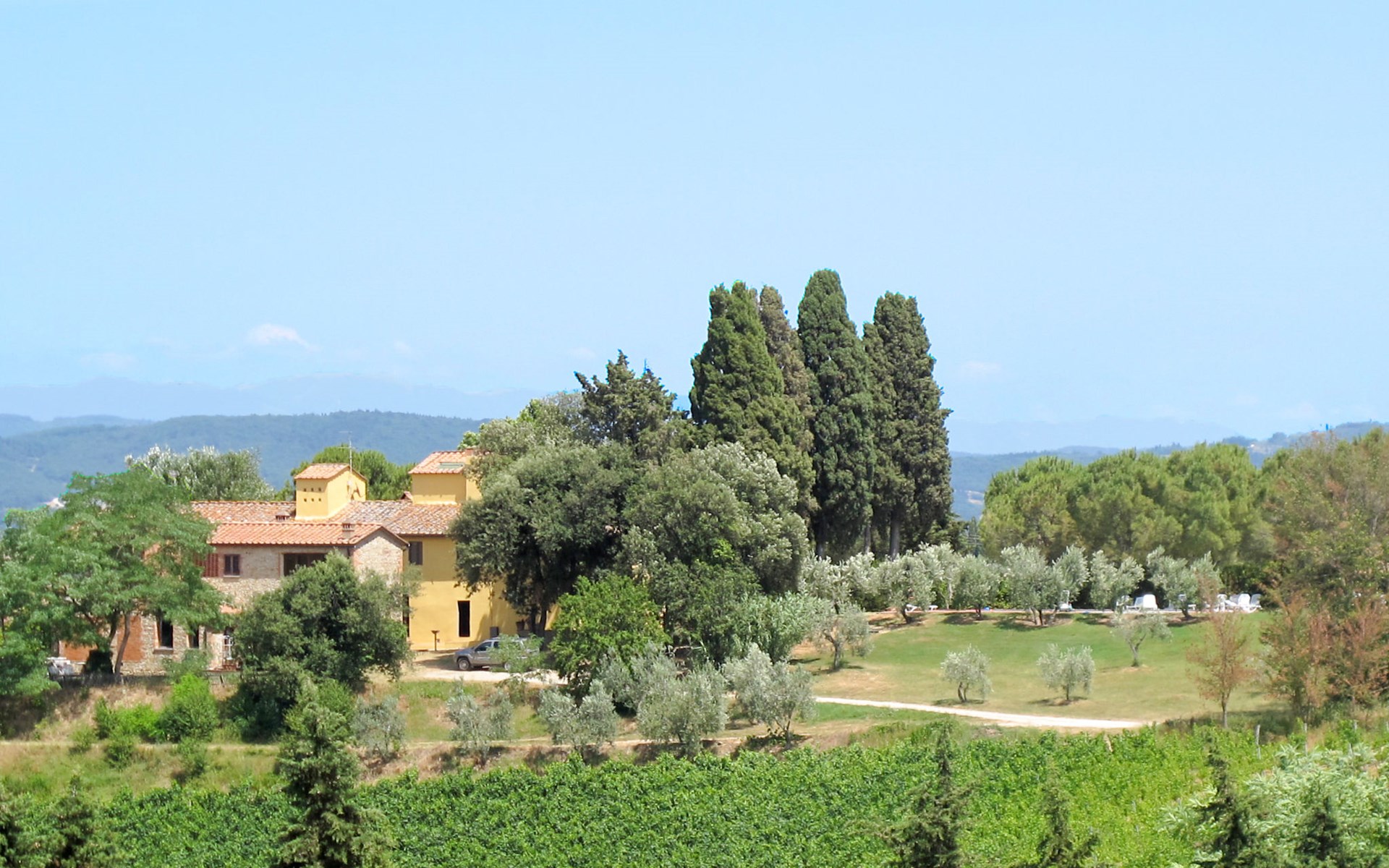 Agriturismo on a vinyard "Campiglia", surrounded by fields and vineyards. 6 apartments in the property. 2 km from the centre of Tavarnelle, 30 km from the centre of Firenze, 40 km from the centre of Siena, in a sunny, elevated position, 90 km from the sea, 90 km from the beach, in the countryside. For shared use: property 20 ha, well-kept garden (not fenced) with lawn and trees, lawn for sunbathing 1'000 m2, swimming pool fenced (15 x 7 m, depth 110 - 140 cm, seasonal availability: 25.Apr. - 31.Oct.). Outdoor shower, patio, garden furniture, barbecue, pool maintenance by the owner/gardener. In the house: washing machine (for shared use). 300 m long motor access (via unmade road). Parking on the premises. Shop 1 km, grocery 1 km, supermarket 1 km, restaurant 1 km, bar 1 km, bakery 1 km, 20 minute walk to the centre, bus stop 2 km, railway station "Barberino Zambra" 10 km, sandy beach "Cecina Mare" 90 km. Golf course (9 hole) 20 km, tennis 1 km, fishing possibilities 5 km. Nearby attractions: San Gimignano 22 km, Certaldo 15 km, Volterra 52 km, Montalcino 85 km. Please note: suitable for families, baby equipment (included). Groups of teenagers on request only. Local sale of farm products. The owner lives on the same property. All houses/apartments are individually designed/furnished.