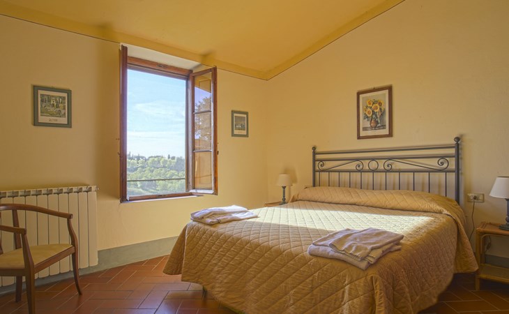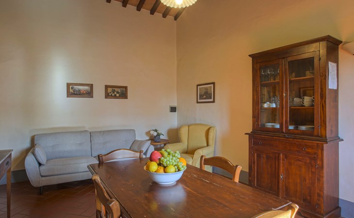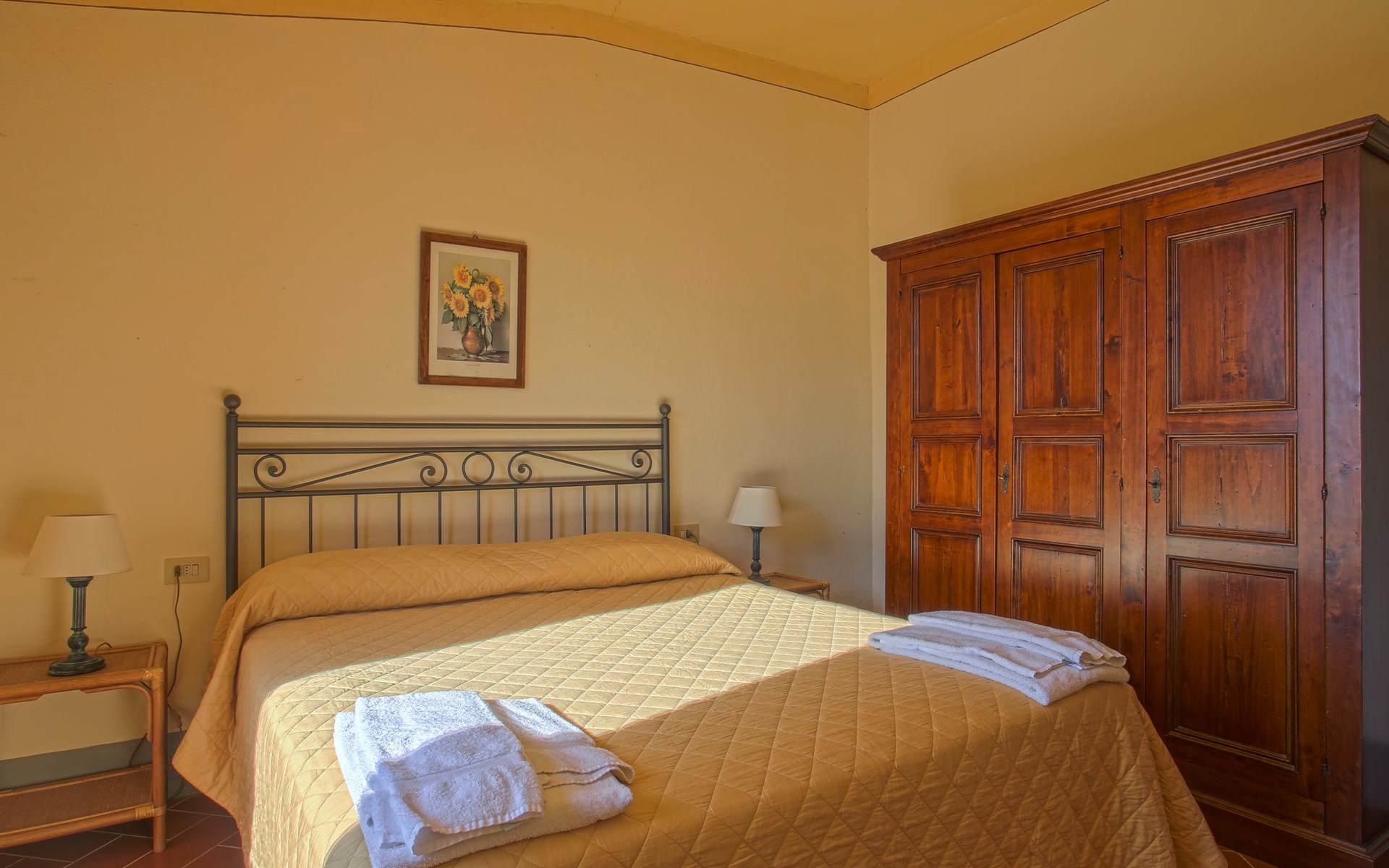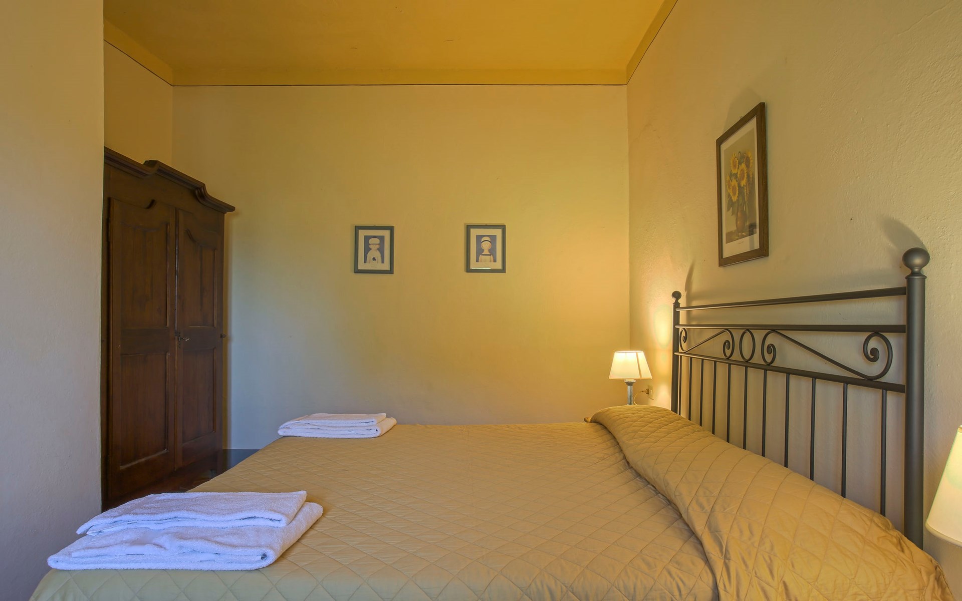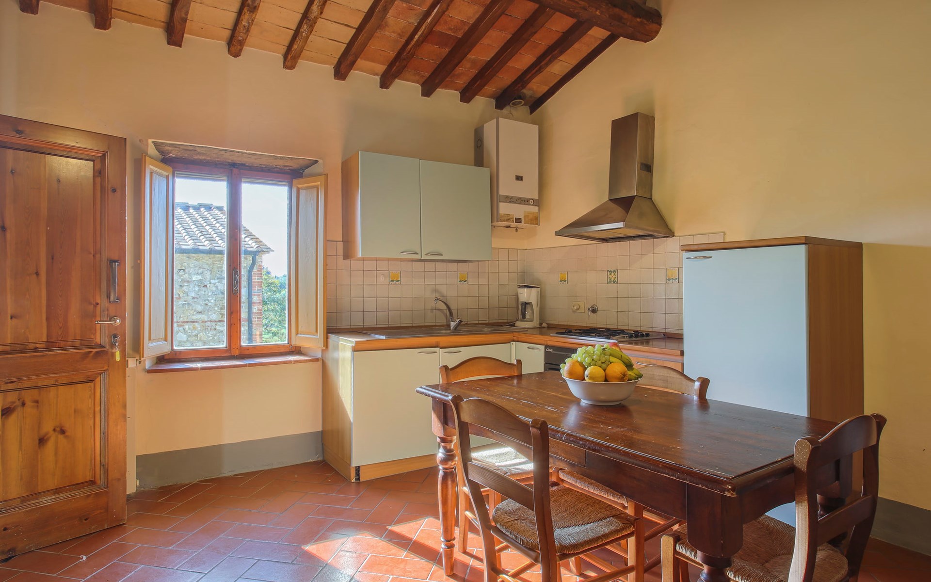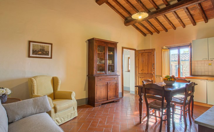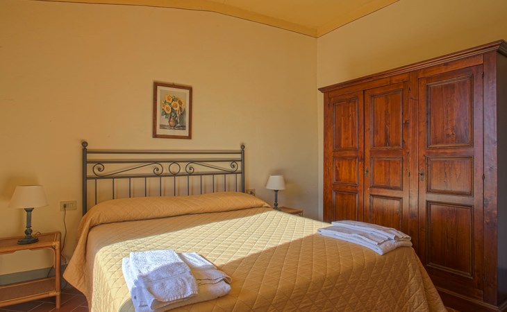 Agriturismo on a vinyard "Campiglia", surrounded by fields and vineyards. 6 apartments in the property. 2 km from the centre of Tavarnelle, 30 km from the centre of Firenze, 40 km from the centre of Siena, in a sunny, elevated position, 90 km from the sea, 90 km from the beach, in the countryside. For shared use: property 20 ha, well-kept garden (not fenced) with lawn and trees, lawn for sunbathing 1'000 m2, swimming pool fenced (15 x 7 m, depth 110 - 140 cm, seasonal availability: 25.Apr. - 31.Oct.). Outdoor shower, patio, garden furniture, barbecue, pool maintenance by the owner/gardener. In the house: washing machine (for shared use). 300 m long motor access (via unmade road). Parking on the premises. Shop 1 km, grocery 1 km, supermarket 1 km, restaurant 1 km, bar 1 km, bakery 1 km, 20 minute walk to the centre, bus stop 2 km, railway station "Barberino Zambra" 10 km, sandy beach "Cecina Mare" 90 km. Golf course (9 hole) 20 km, tennis 1 km, fishing possibilities 5 km. Nearby attractions: San Gimignano 22 km, Certaldo 15 km, Volterra 52 km, Montalcino 85 km. Please note: suitable for families, baby equipment (included). Groups of teenagers on request only. Local sale of farm products. The owner lives on the same property. All houses/apartments are individually designed/furnished.