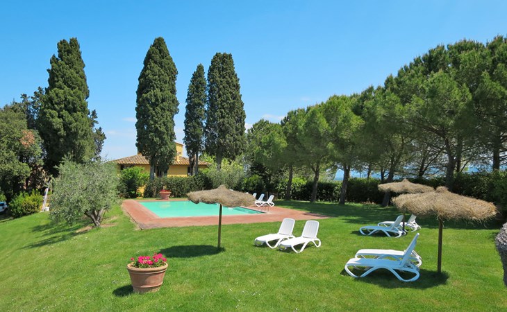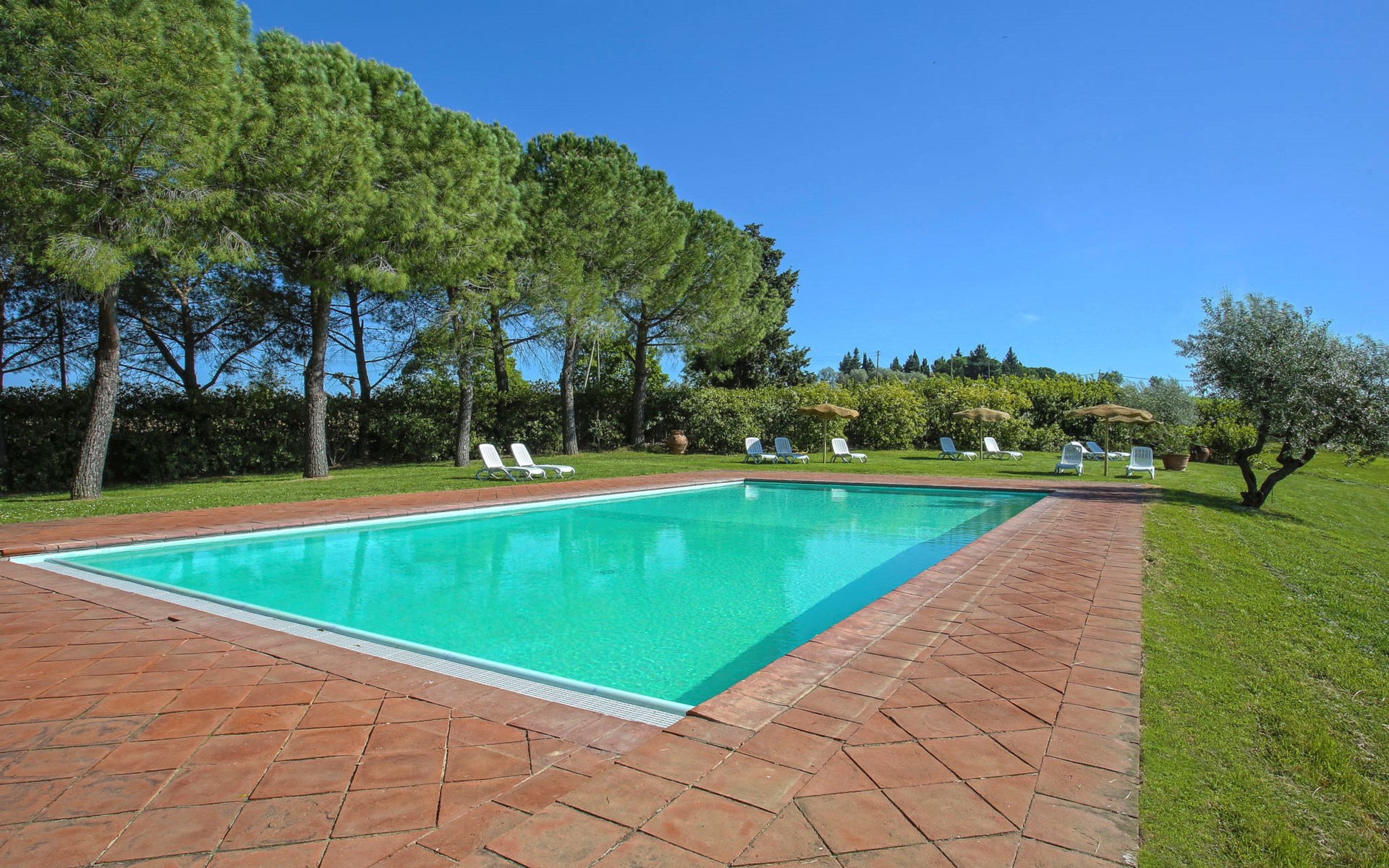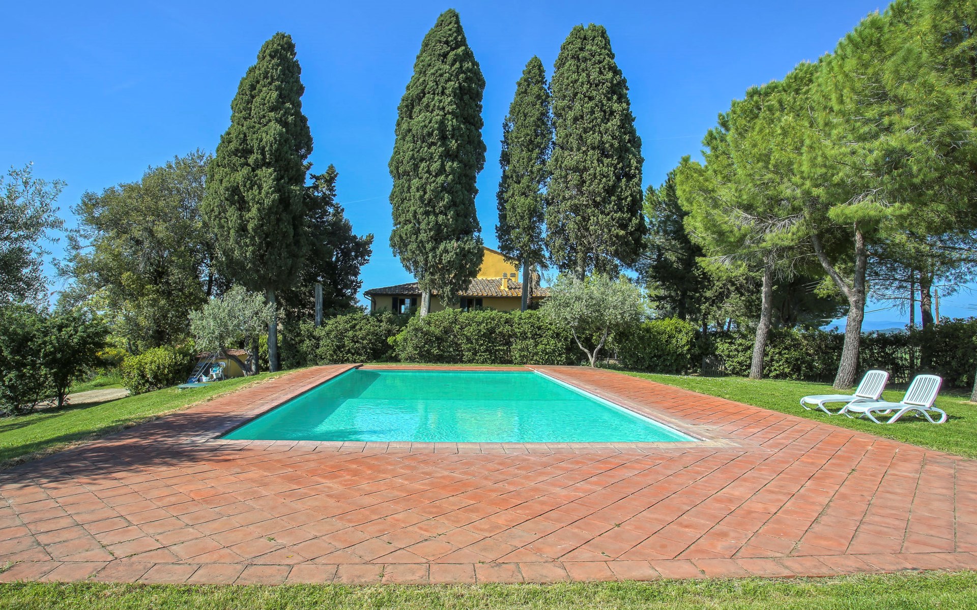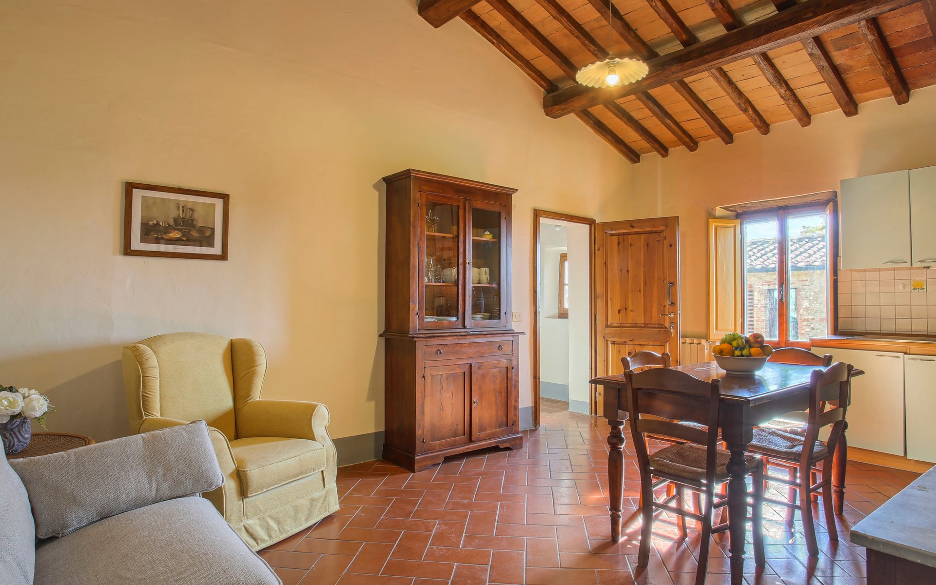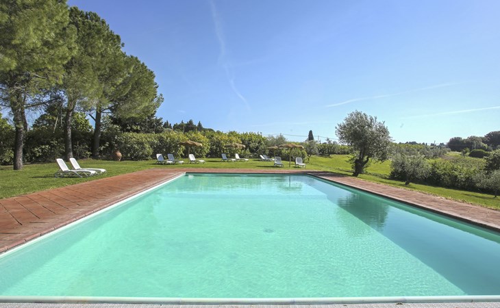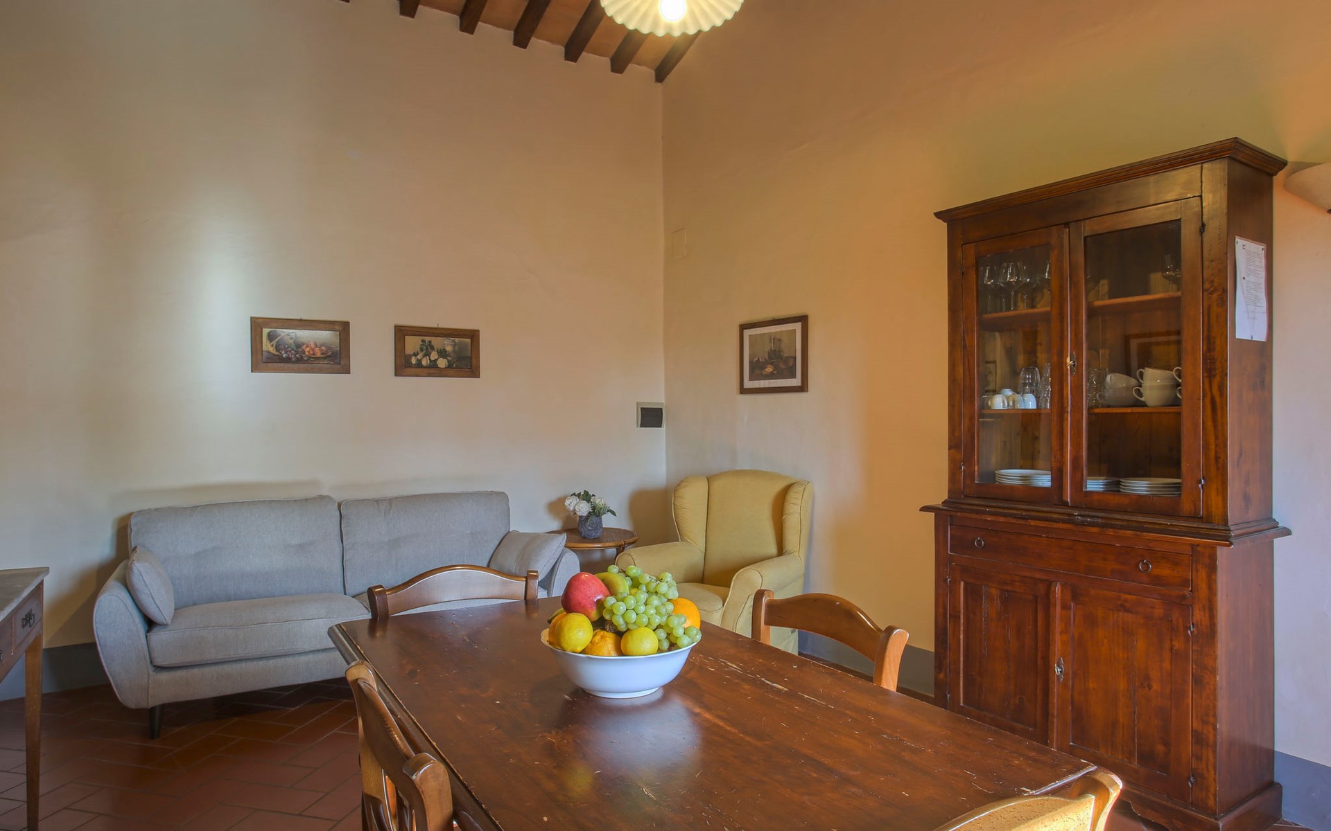 Agriturismo on a vinyard "Campiglia", surrounded by fields and vineyards. 6 apartments in the property. 2 km from the centre of Tavarnelle, 30 km from the centre of Firenze, 40 km from the centre of Siena, in a sunny, elevated position, 90 km from the sea, 90 km from the beach, in the countryside. For shared use: property 20 ha, well-kept garden (not fenced) with lawn and trees, lawn for sunbathing 1'000 m2, swimming pool fenced (15 x 7 m, depth 110 - 140 cm, seasonal availability: 25.Apr. - 31.Oct.). Outdoor shower, patio, garden furniture, barbecue, pool maintenance by the owner/gardener. In the house: washing machine (for shared use). 300 m long motor access (via unmade road). Parking on the premises. Shop 1 km, grocery 1 km, supermarket 1 km, restaurant 1 km, bar 1 km, bakery 1 km, 20 minute walk to the centre, bus stop 2 km, railway station "Barberino Zambra" 10 km, sandy beach "Cecina Mare" 90 km. Golf course (9 hole) 20 km, tennis 1 km, fishing possibilities 5 km. Nearby attractions: San Gimignano 22 km, Certaldo 15 km, Volterra 52 km, Montalcino 85 km. Please note: suitable for families, baby equipment (included). Groups of teenagers on request only. Local sale of farm products. The owner lives on the same property. All houses/apartments are individually designed/furnished.