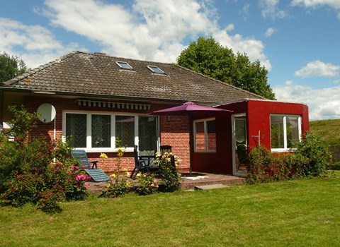 Apartment block "Nordsee-Ferienhaus", 2 storeys. 500 m from the centre of Friedrichskoog, on the outskirts, 10 km from the centre of Marne, 65 km from the centre of St.Peter Ording, 4 km from the sea, 16 km from the beach. For shared use: natural state property, large garden with lawn. Table tennis, terrace, garden furniture, barbecue, children's playground (slide, swing, sandbox). In the house: trampoline, central heating system. Supermarket 300 m, restaurant 1 km, bus stop 500 m, grass beach 16 km. Please note: car recommended. Suitable for families. The owner does not accept any youth groups.