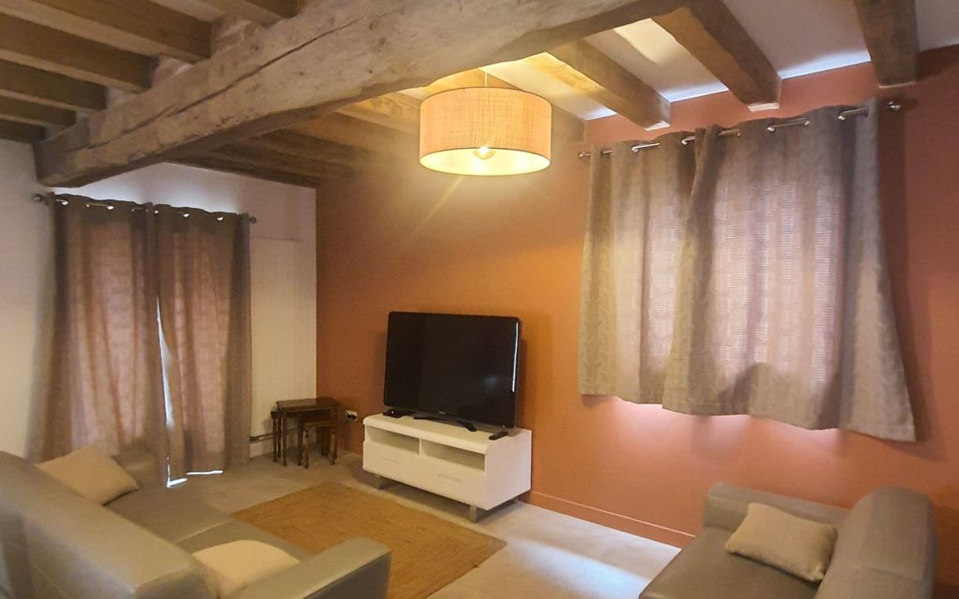 Redecorated in an authentic style using top quality materials, the gite is very spacious: 160m², consisting of one floor - Le Pressoir de mon Père is very comfortable, with 3 bathrooms and a fitted kitchen, laundry facilities, etc. - large living room, dining room and voluminous kitchen.
