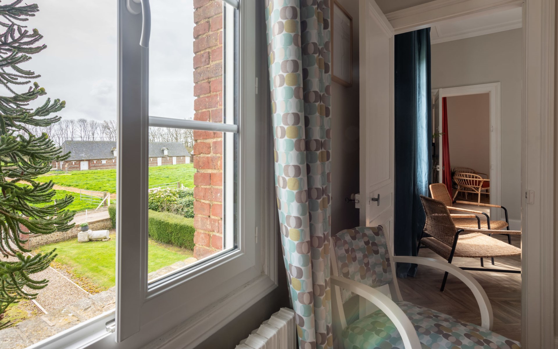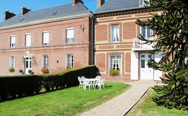 Beautiful single-family house "Le Domaine du Vasouy", semi-detached. In a hamlet 2.5 km from the centre of Colleville, 5 km from the centre of Valmont, 8.5 km from the centre of Fécamp, 10 km from the sea. For shared use: property 2'000 m2 with lawn. Private: garden 180 m2 with lawn and trees. Garden furniture, barbecue, parking on the premises. Supermarket 5 km, bus stop "Honfleur (Central Bus Station)" 4.4 km, pebble beach 10 km, indoor swimming pool 8.5 km. Golf course (18 hole) 28 km. Please note: the owner lives on the same property.