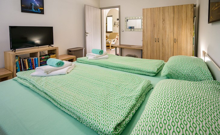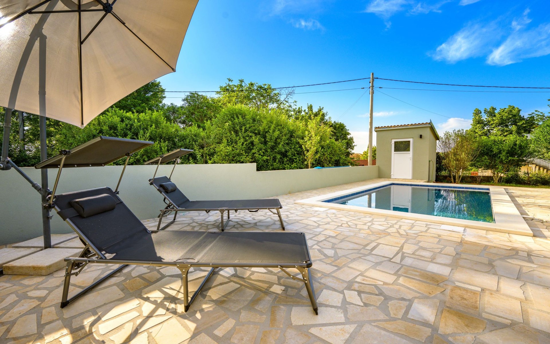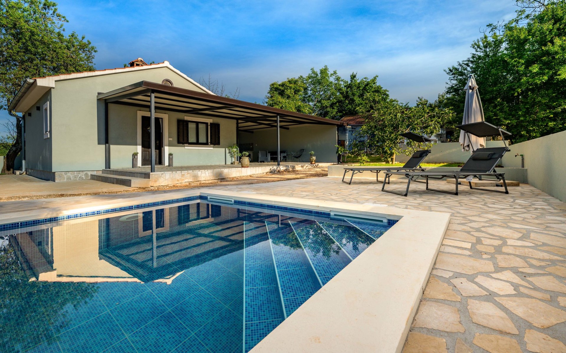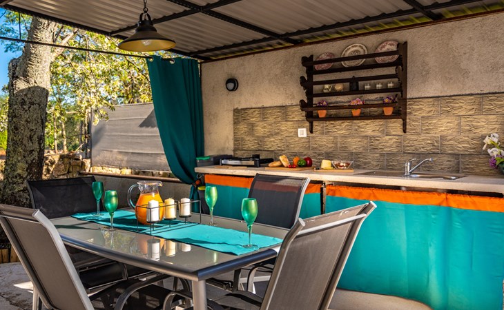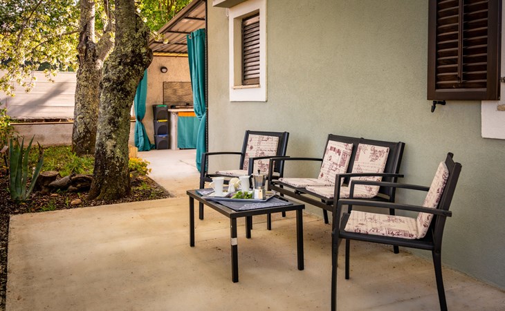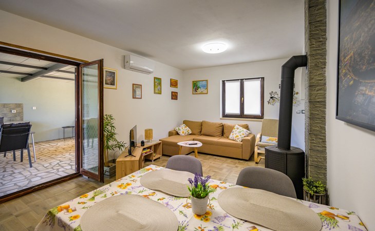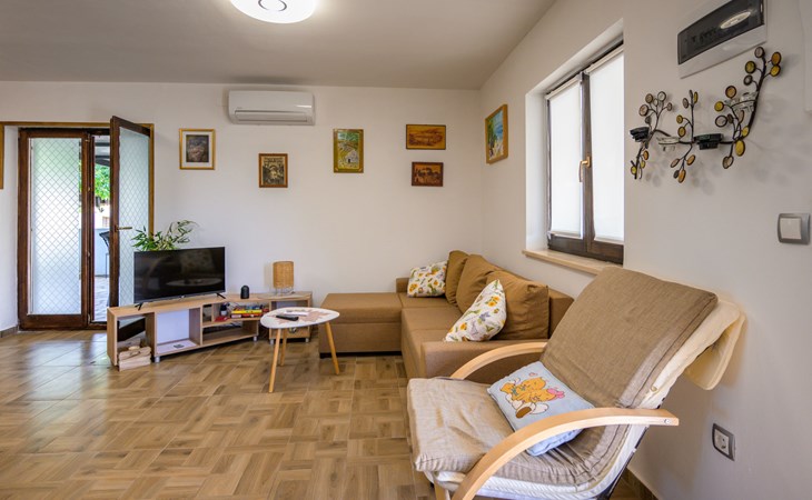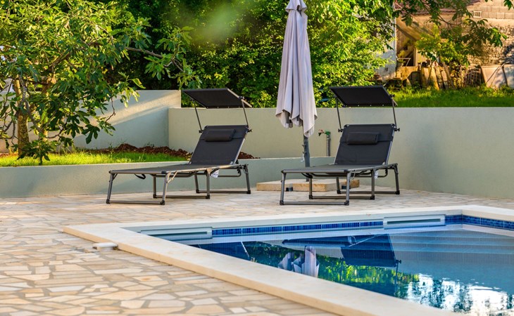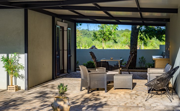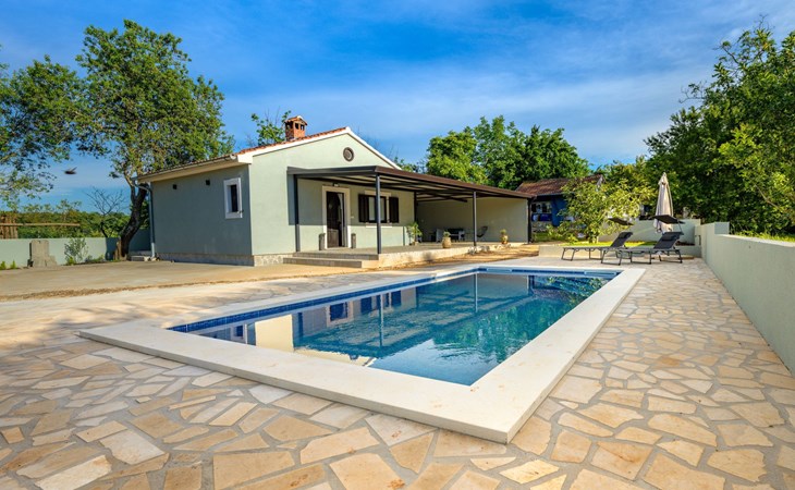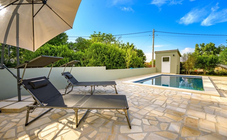 Baderna 13 km from Poreč: Simple single-family house "Ulika". In the centre of Štifanići 2 km from the centre of Baderna, in a quiet position, 16 km from the sea. Pool maintenance by the owner/gardener. Private: property 500 m2 (fenced) with wildlife garden, swimming pool angular (3 x 6 m, depth 130 cm, seasonal availability: 01.Jun. - 30.Oct.). Terrace, garden furniture, barbecue. In the house: internet access. Parking (for 2 cars) at the house on the premises. Shop 1.6 km, restaurant 2.2 km, café 1.5 km, bus stop 2 km, pebble beach 16 km, rocky beach 16 km.