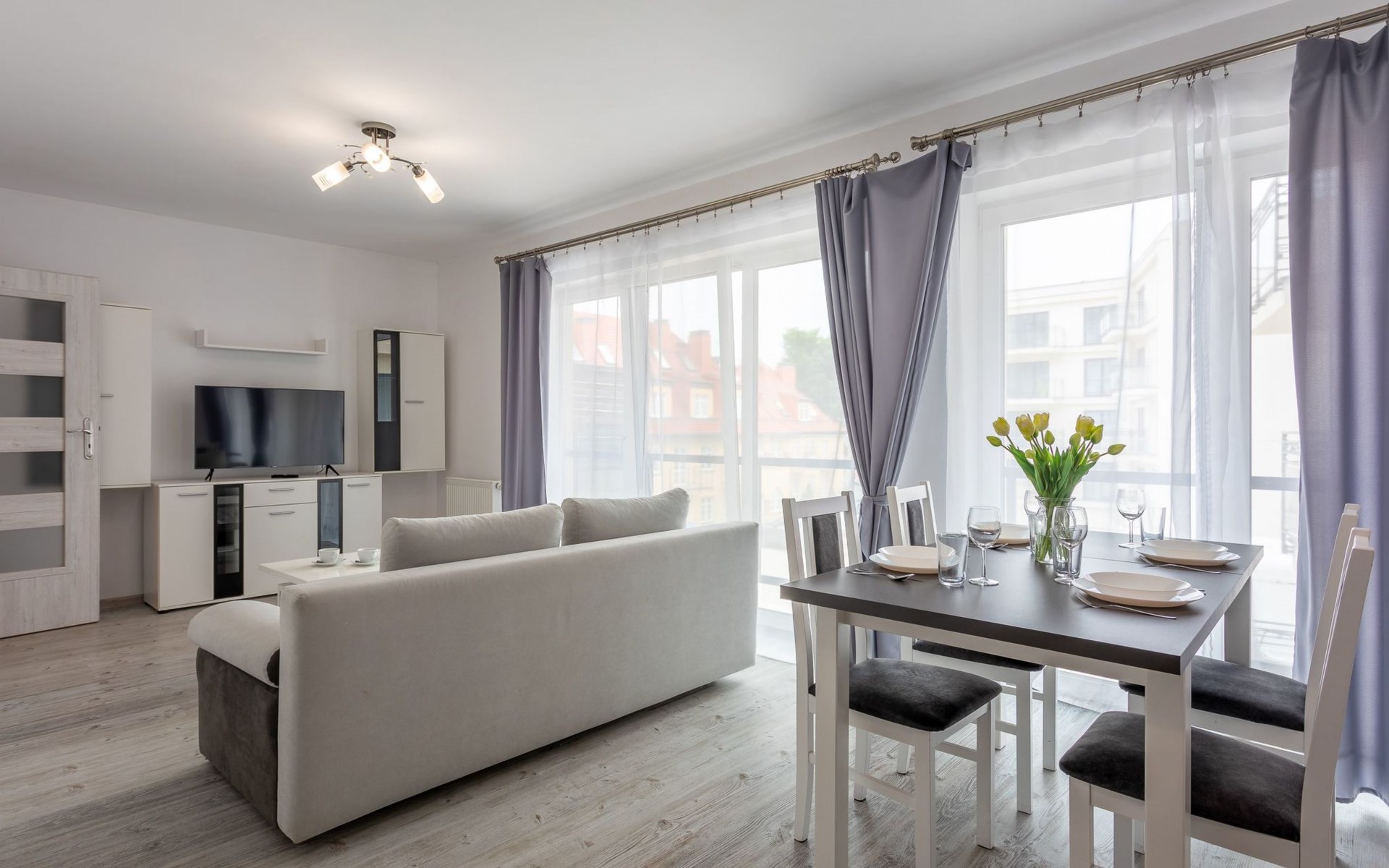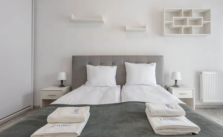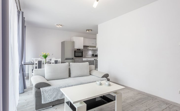 The flat "Flotylla 13" in Świnoujście is located directly on the harbour, in the historic flotilla buildings and right next to the historic 58-hectare landscaped park. It consists of a living, dining and sleeping area, a fully equipped kitchenette and a very spacious bathroom.