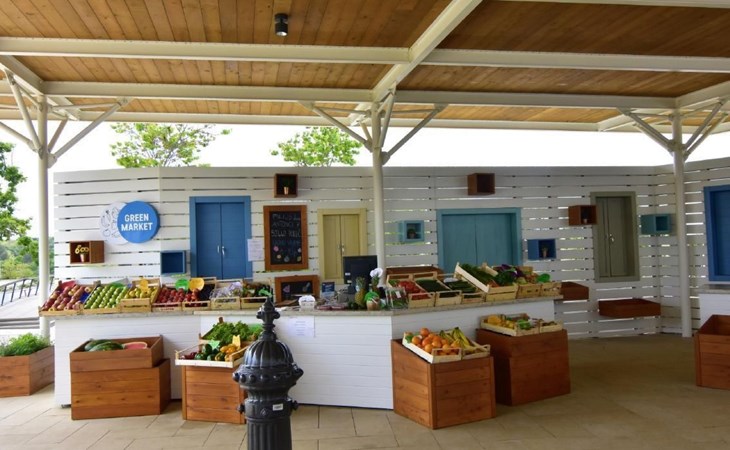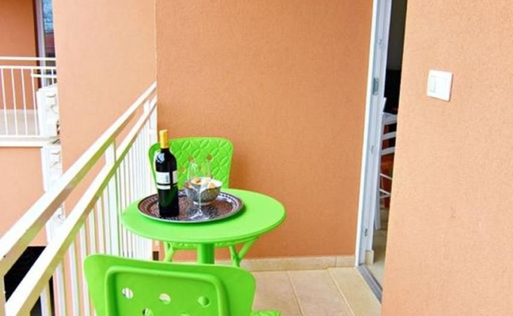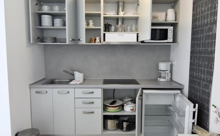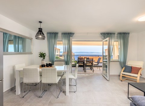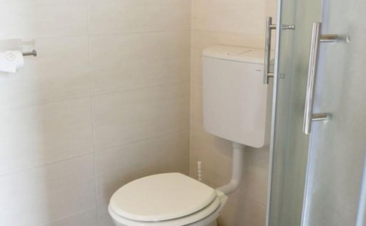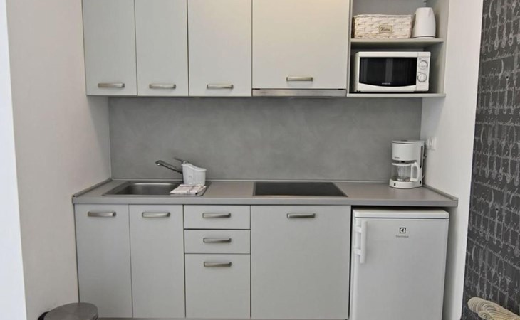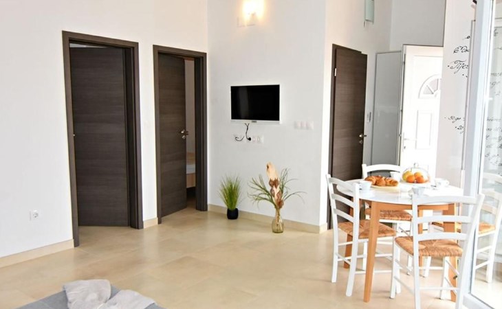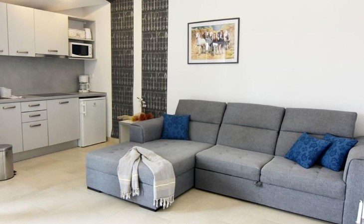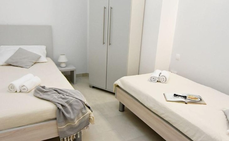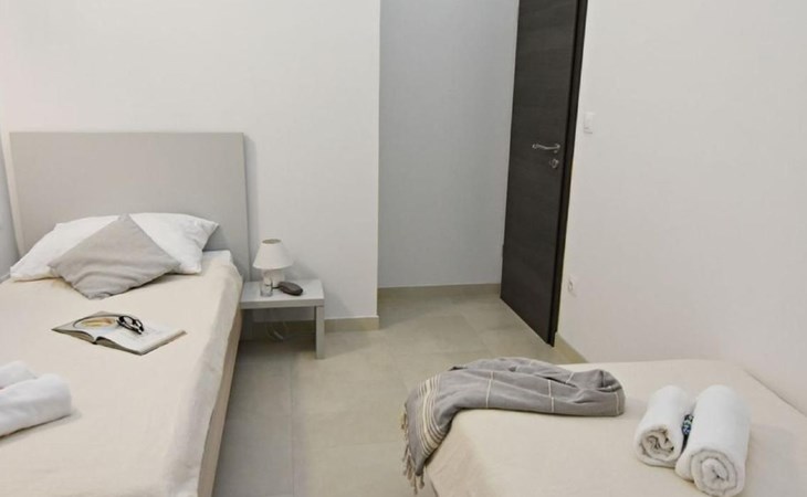 In the NOA 2 flat, positioned on the first floor of the main building, you can expect an air-conditioned environment and a well thought-out interior design. The flat has two bedrooms - a comfortable double room and an additional room with two single beds. The living area is furnished with a sofa, a flat-screen satellite TV and a dining table. The kitchenette has everything you need for self-catering: from an electric cooker, fridge and microwave to a coffee machine and other kitchen utensils. There is also a bathroom with a shower, bidet and other amenities.