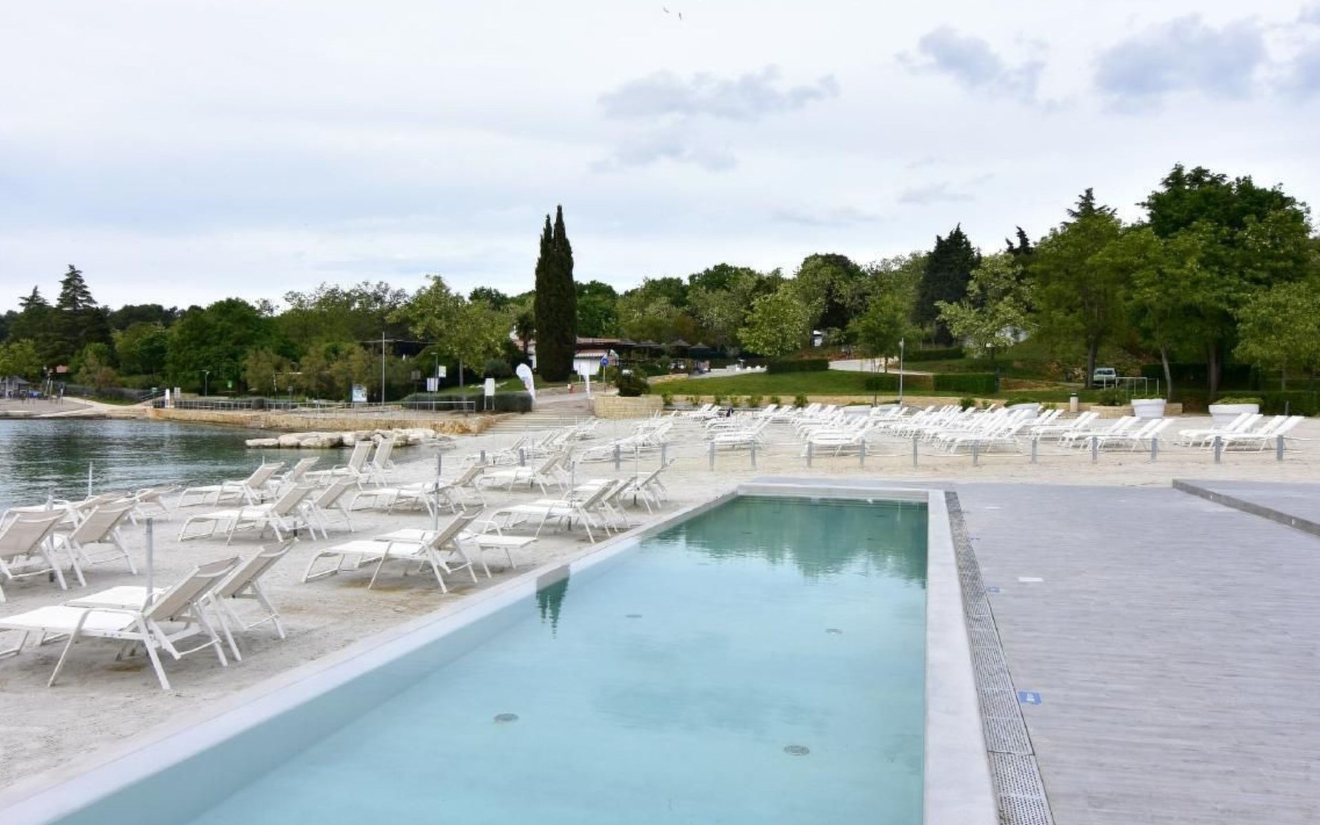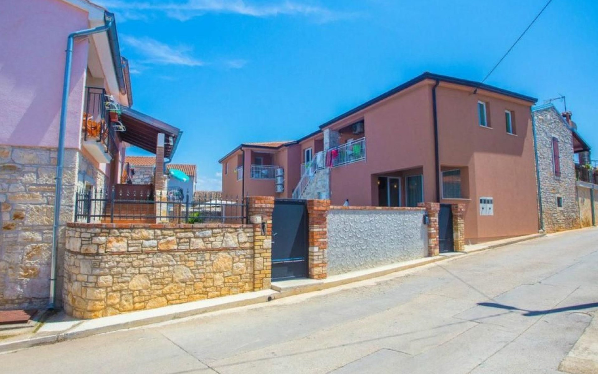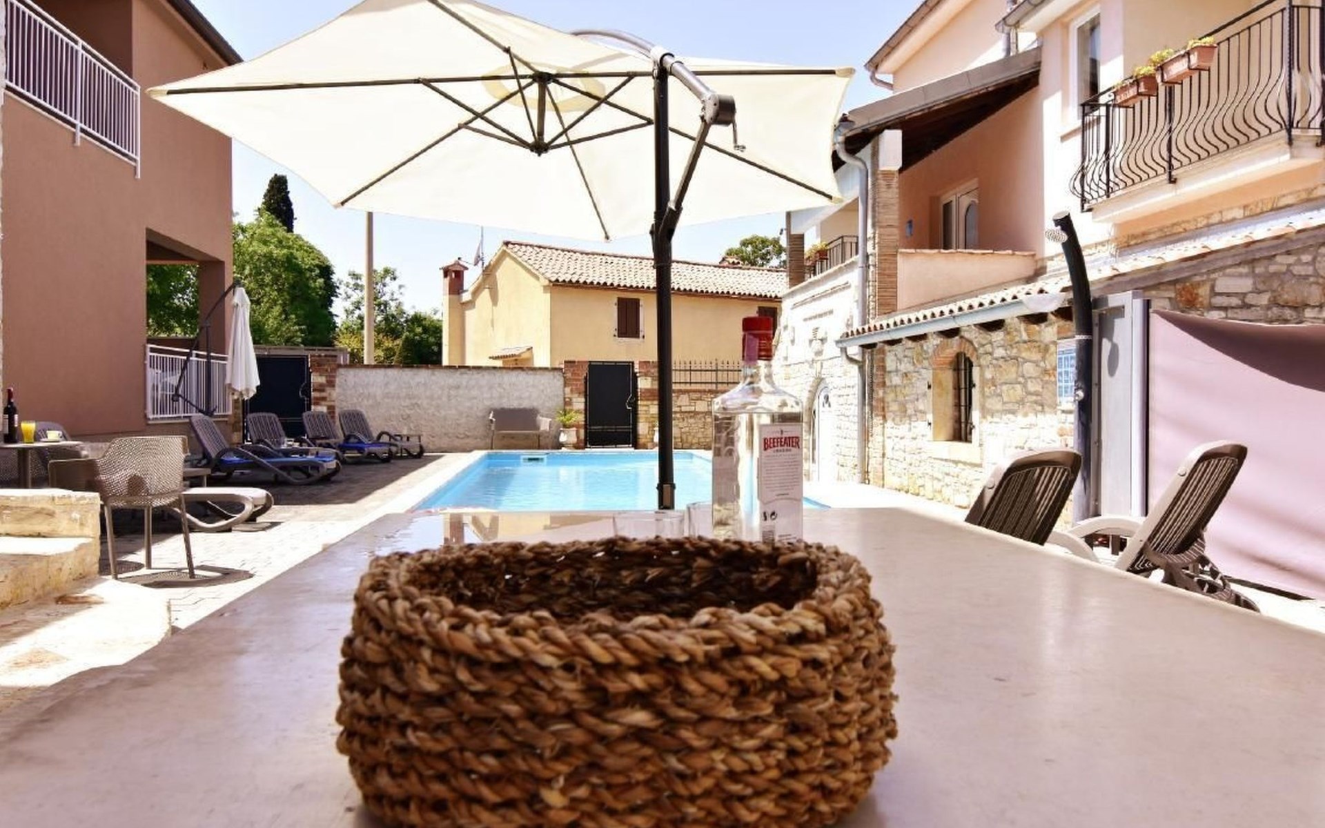 Outside, a communal pool surrounded by sun loungers, parasols and an outdoor shower is waiting to offer you relaxation. For the ultimate holiday experience, there is also a barbecue area and a garden table with traditional Istrian stone benches. A games room with a pool table, table tennis table and comfortable seating provides entertainment for all ages.