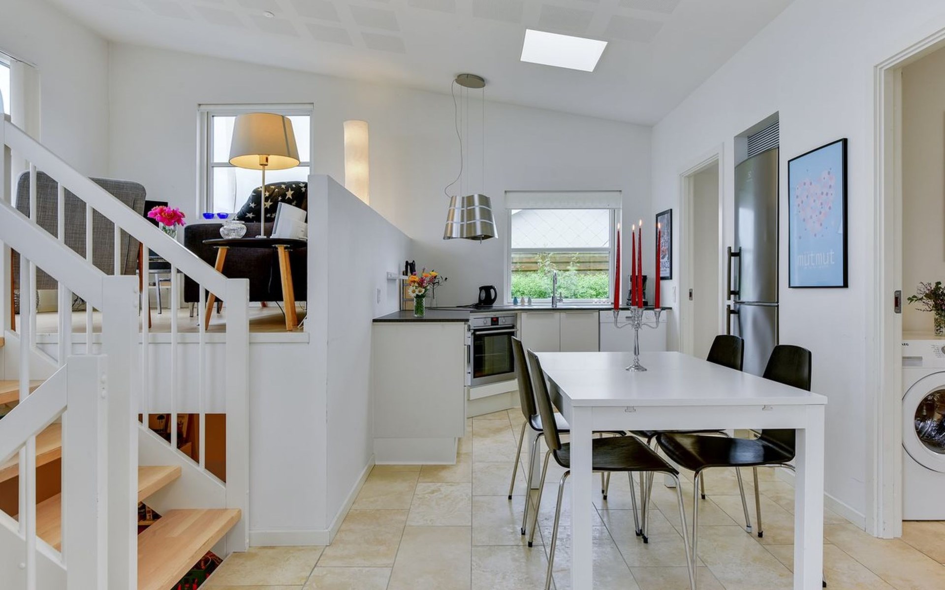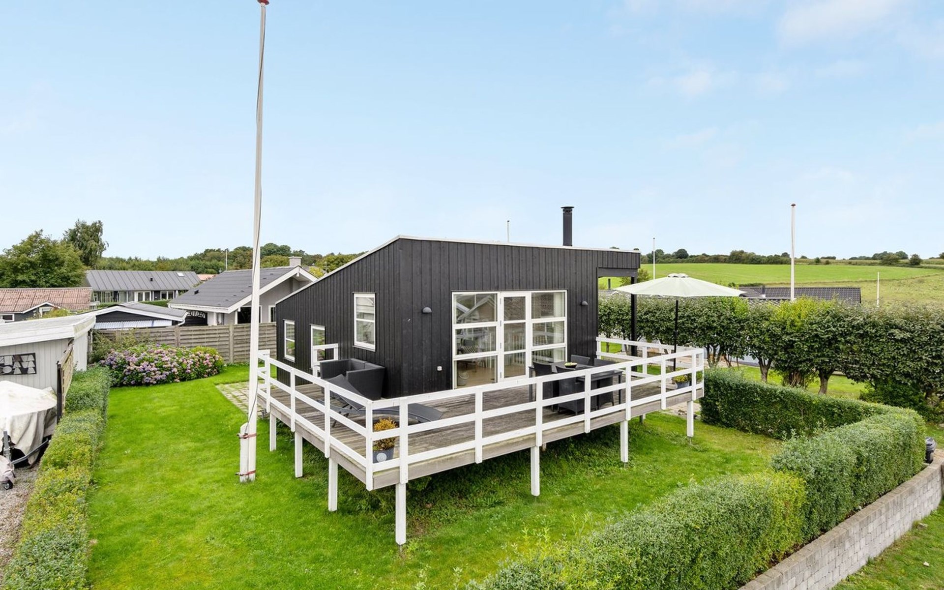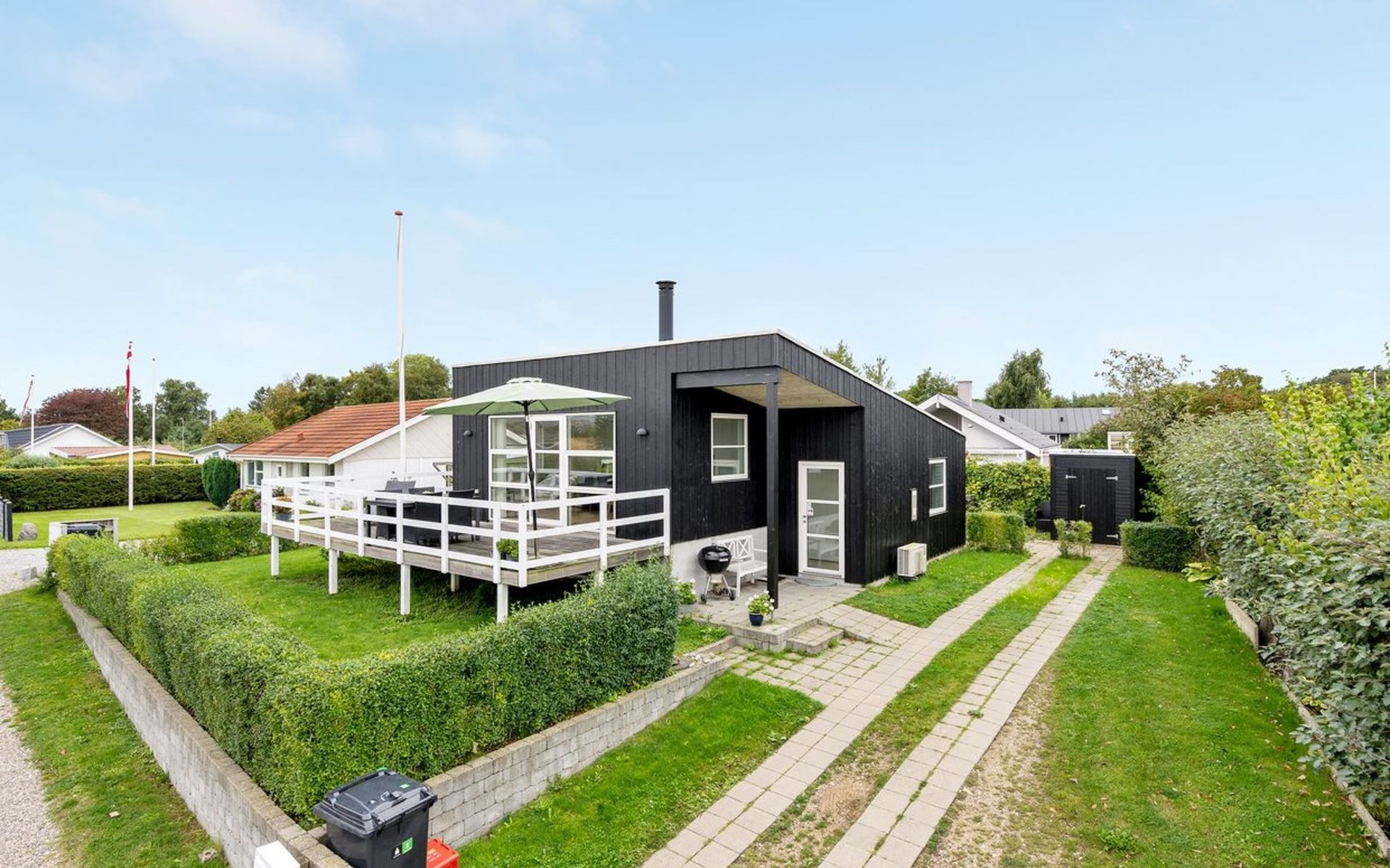 Single-family house, built in 2014. 100 m from the sea. Private: property 400 m2, well-kept garden. Terrace (50 m2), barbecue. In the house: washing machine. Parking at the house. Grocery 2 km. Golf course 14 km. The owner does not accept any youth groups.