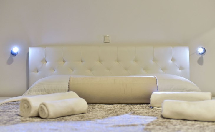Inside the villa you will find a spacious living area of 260 square metres, divided into two separate flats of 130 square metres each. Each flat has five bedrooms and five bathrooms with shower, hairdryer and cosmetic products. The modern facilities include Android flat screen TVs in all bedrooms. For your comfort, bed linen, towels, beach towels and bathrobes are provided. The villa also offers two fully equipped kitchens, dining rooms and living rooms with sofa beds, dining facilities and comprehensive kitchen equipment for your culinary well-being.