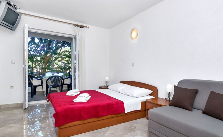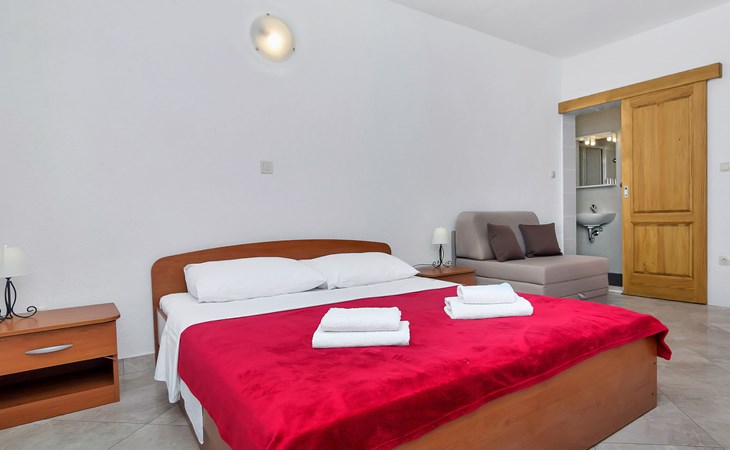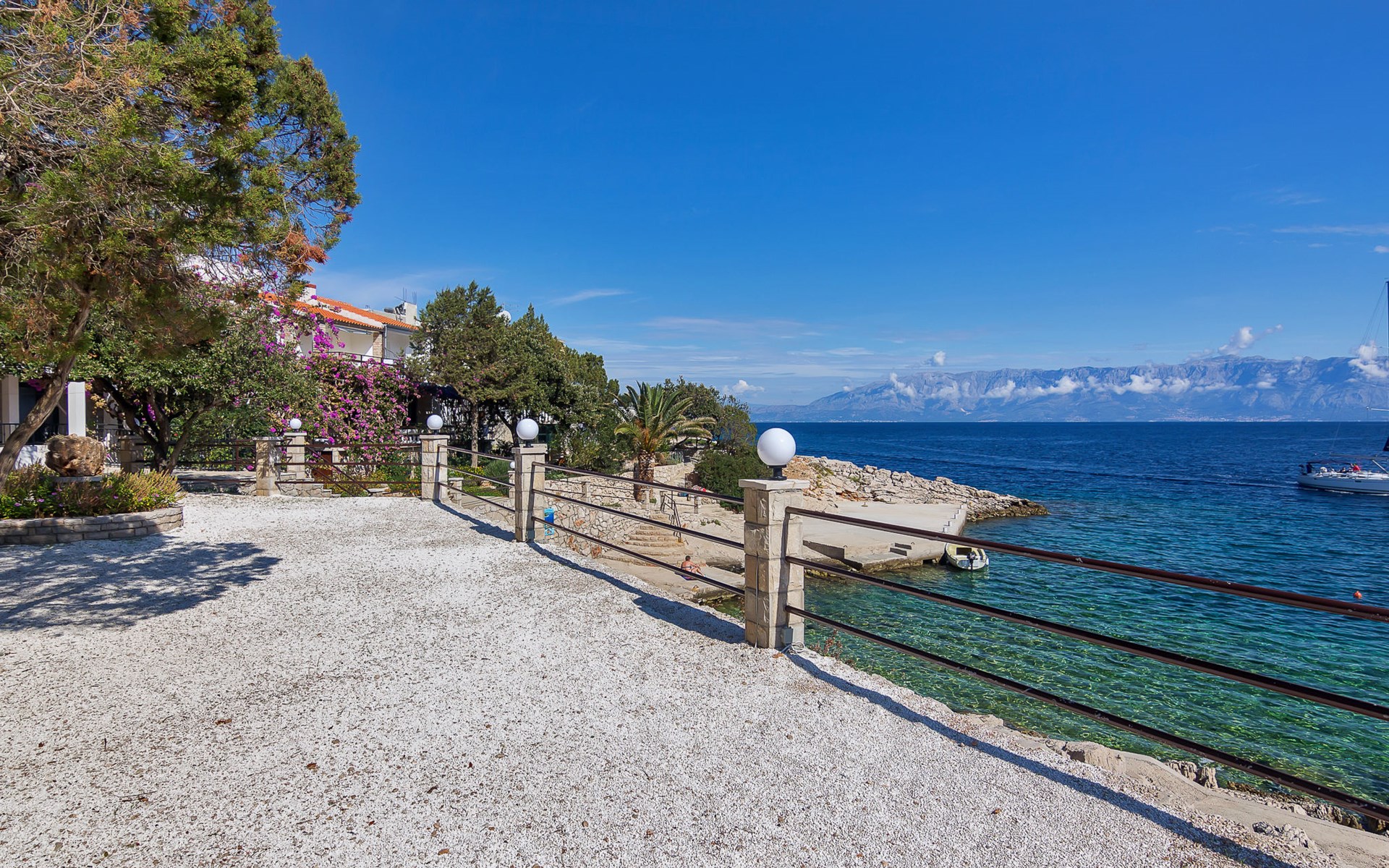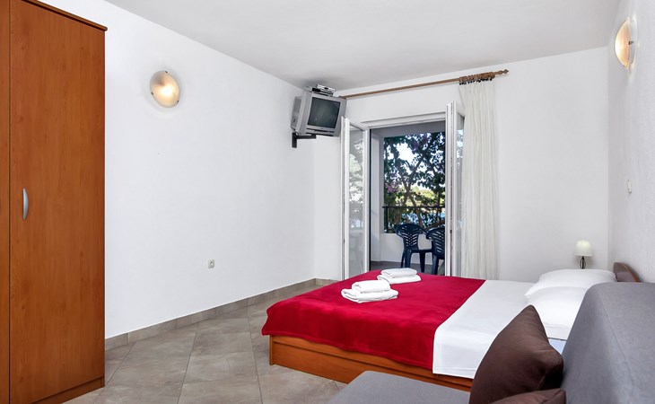 Apartment house "Rubin". 4 km from the centre of Zastražišće, in a quiet, sunny position, 10 m from the sea, 10 m from the beach. For shared use: property 1'000 m2. Barbecue. In the house: internet access, bicycle rental. Parking at the house on the premises. Shop 4 km, restaurant 15 km, bus stop 54.5 km, rocky beach, concrete beach 10 m. Please note: private mooring, on request. Motor-boat rental possible (on request, extra).