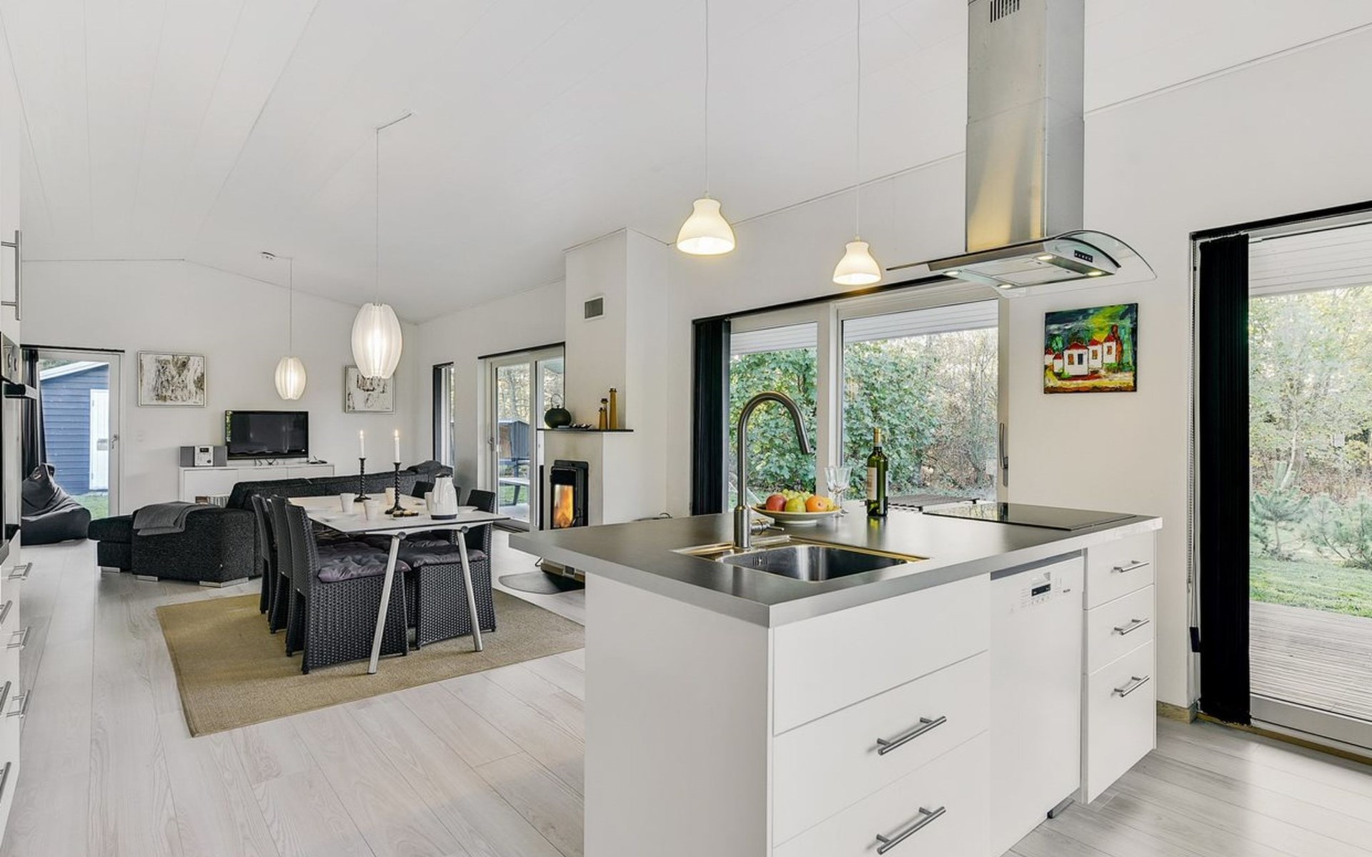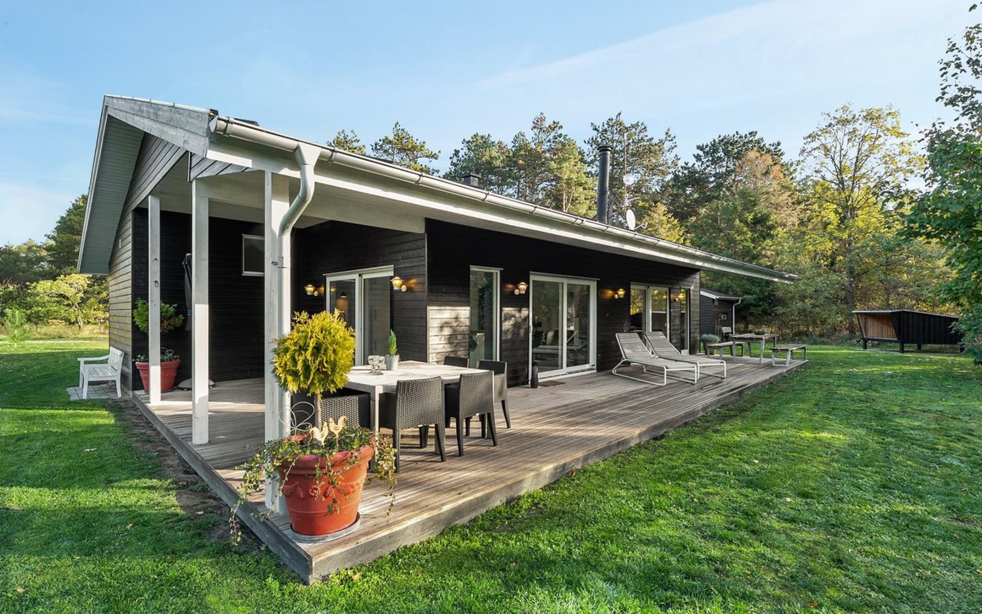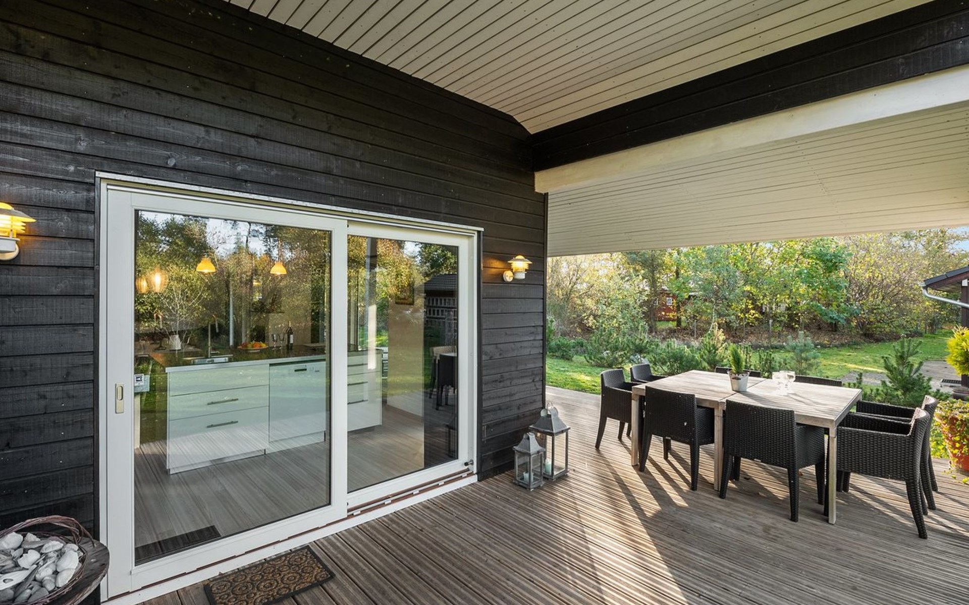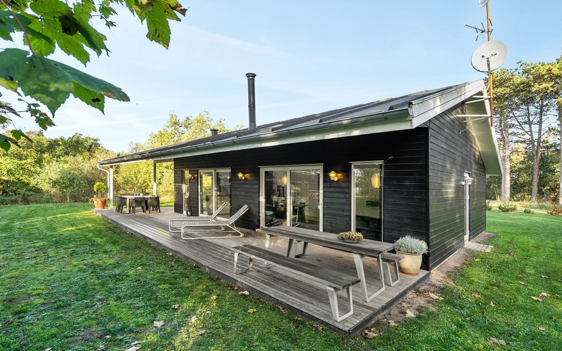Single-family house, built in 2014. Private: natural state property 1'250 m2. In the house: washing machine. Parking at the house. Grocery 3 km. The owner does not accept any youth groups.
