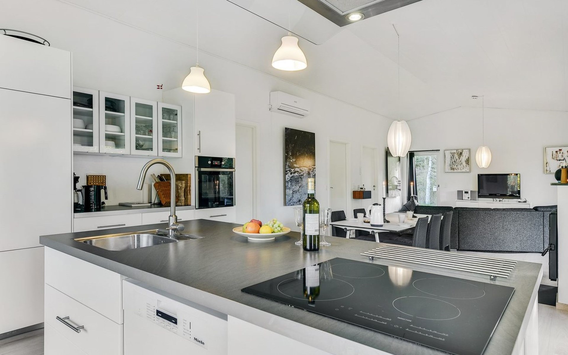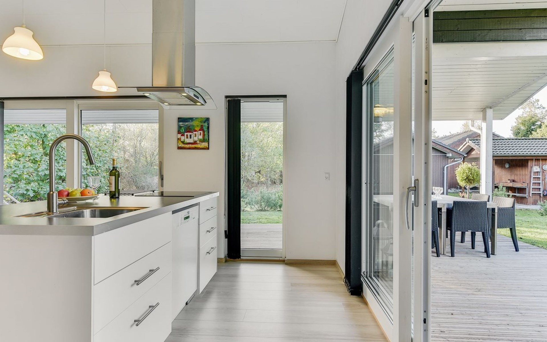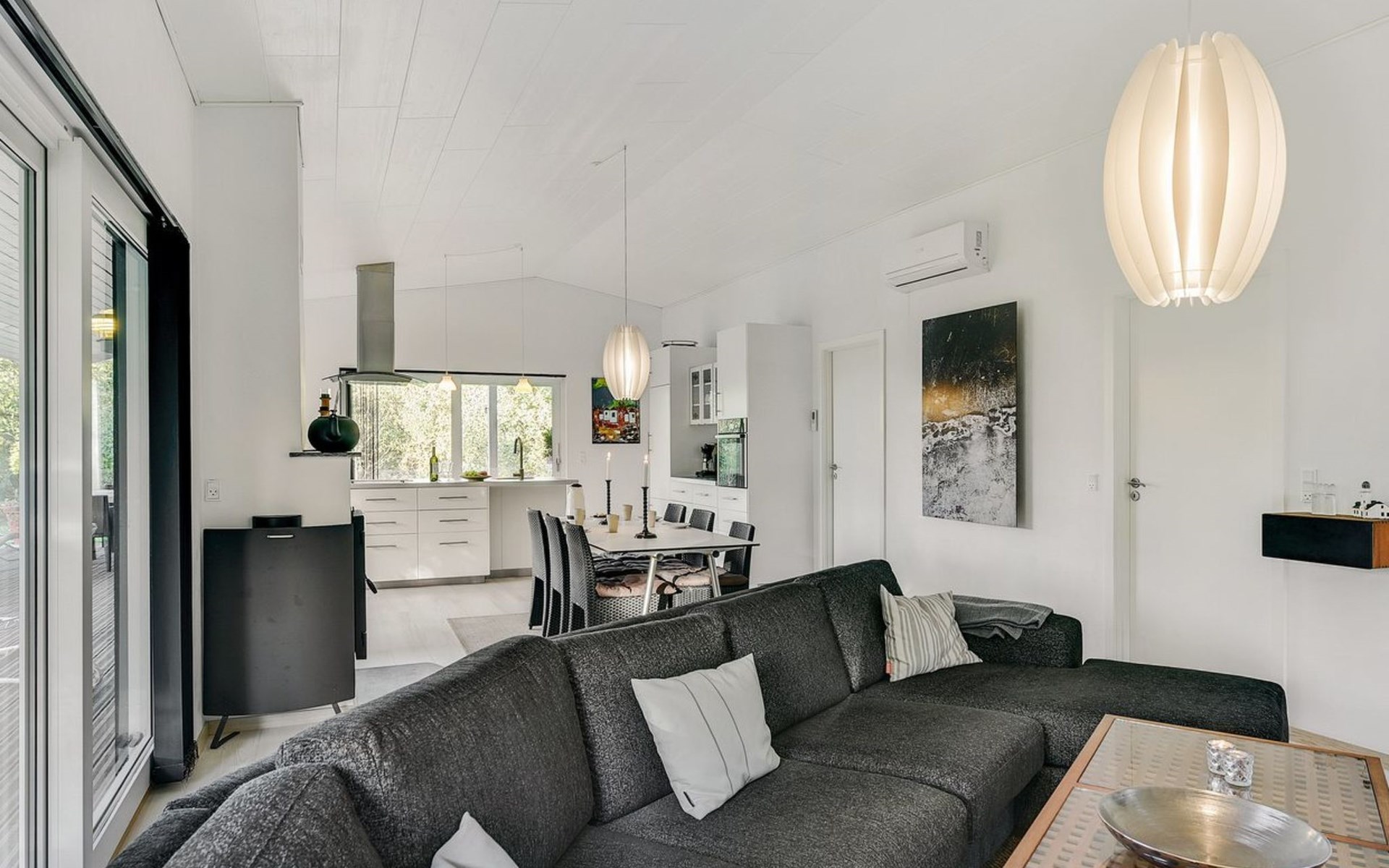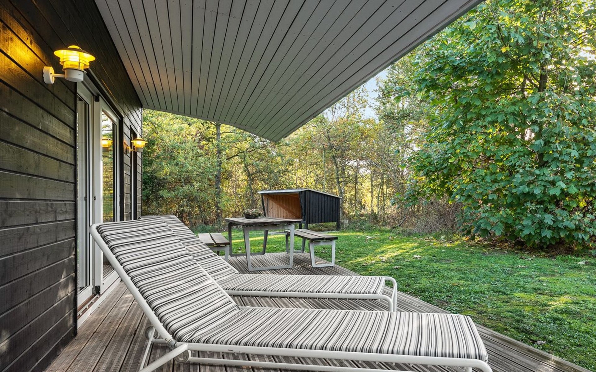 Single-family house, built in 2014. Private: natural state property 1'250 m2. In the house: washing machine. Parking at the house. Grocery 3 km. The owner does not accept any youth groups.