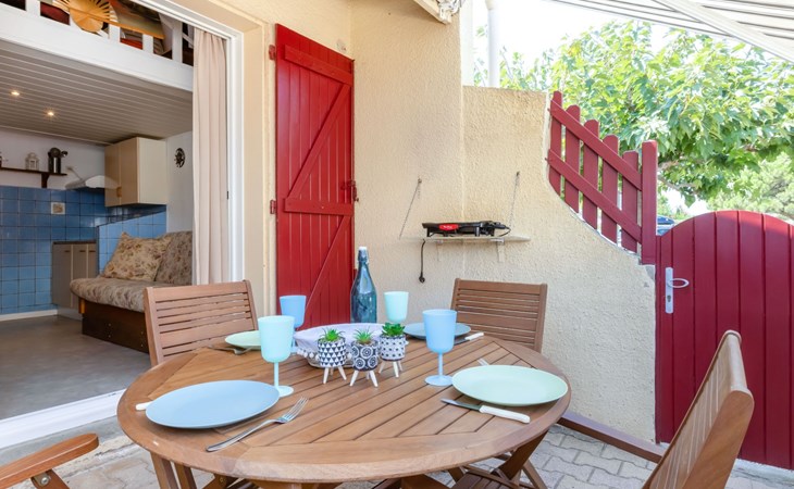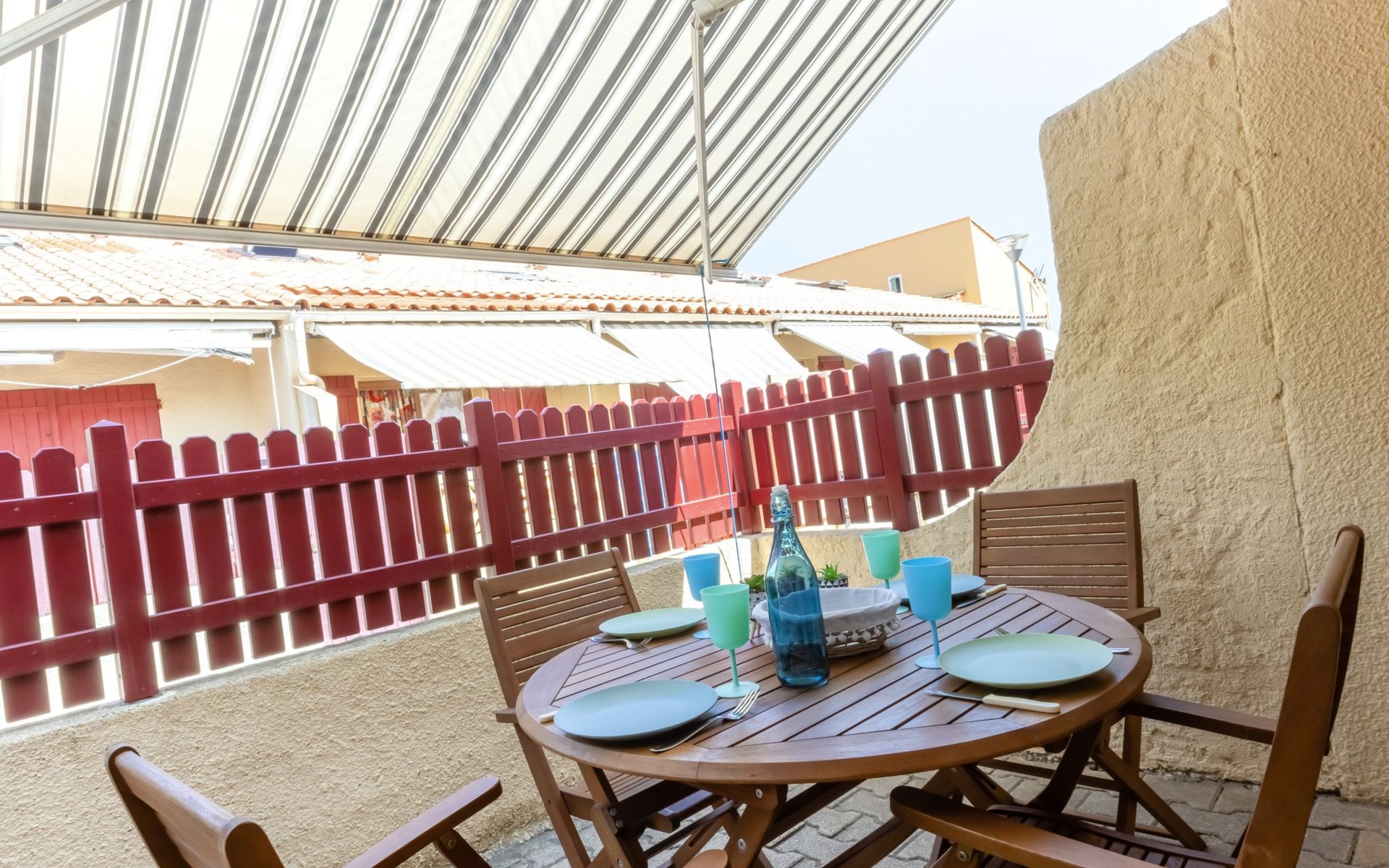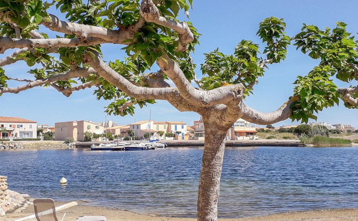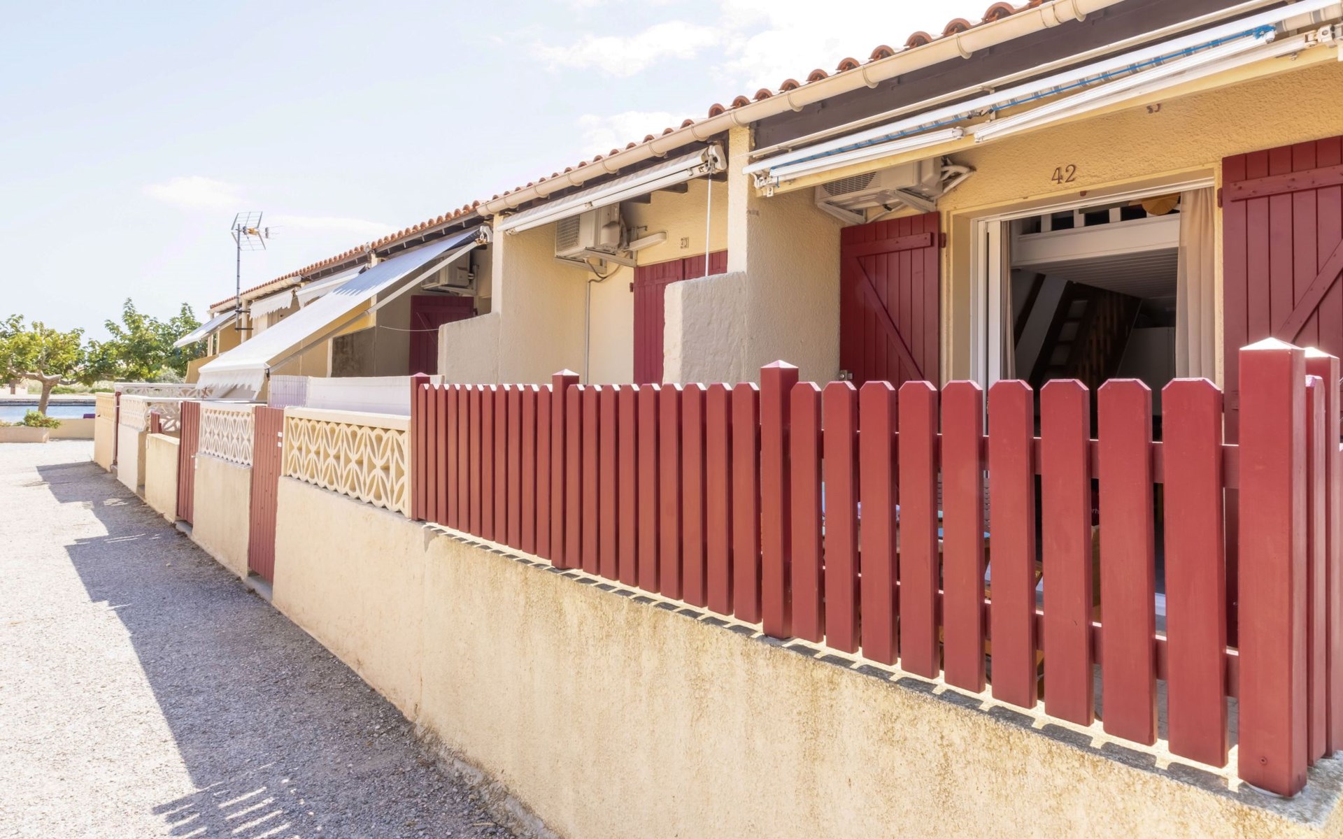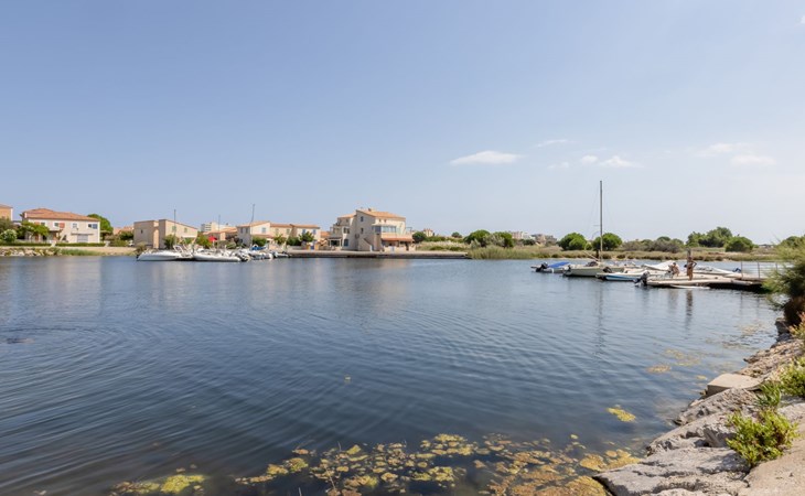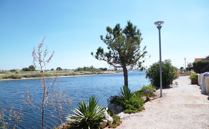 Cosy residence "Santa Barbara". 120 houses in the residence. On the outskirts, 1 km from the sea, 50 m from the lake, 1 km from the beach. Parking. Grocery 3 km, supermarket 5 km, restaurant 1.5 km, bar 2 km, bakery 2 km, bicycle rental 6 km, bus stop "Le Barcarès" 400 m, railway station "La Franqui" 16 km, sandy beach "plage de port leucate" 2 km, diving center 6 km, outdoor swimming pool 4 km, nudist beach 5 km. Sports harbour 7 km, surf school 1 km, sailing school 3 km, tennis 3 km, minigolf 5 km, riding stable 9 km. Nearby attractions: Aqualand Port Leucate 7 km, Réserve Africaine de Sigean 41 km, Fort de Salses 20 km, Narbonne 55 km, Perpignan 25 km, Barcelone 215 km. Well-known lakes can easily be reached: Etang de Leucate ou Salses 7 km, Lac de Villeneuve de La Raho 28 km. Hiking paths: Sentier du guetteur 8 km, Station meteorologique de Opoul Perillos 25 km, Sentier du littoral Collioure 40 km. The Residence has private small beach areas on the salt water lake.