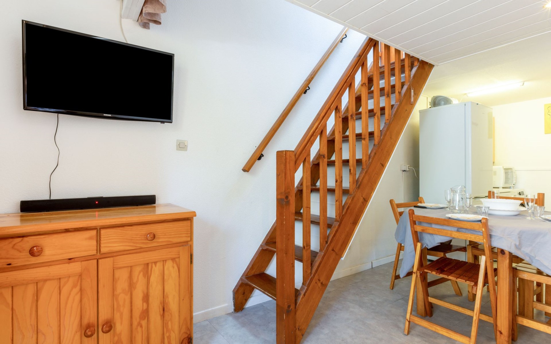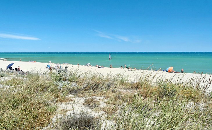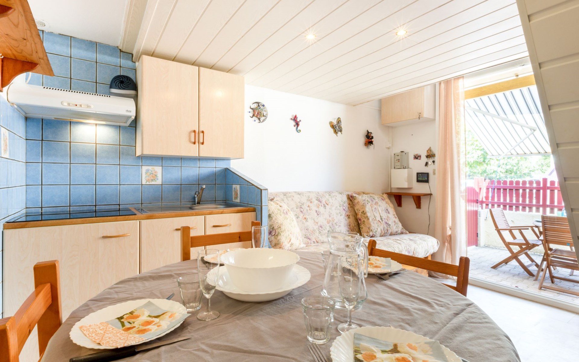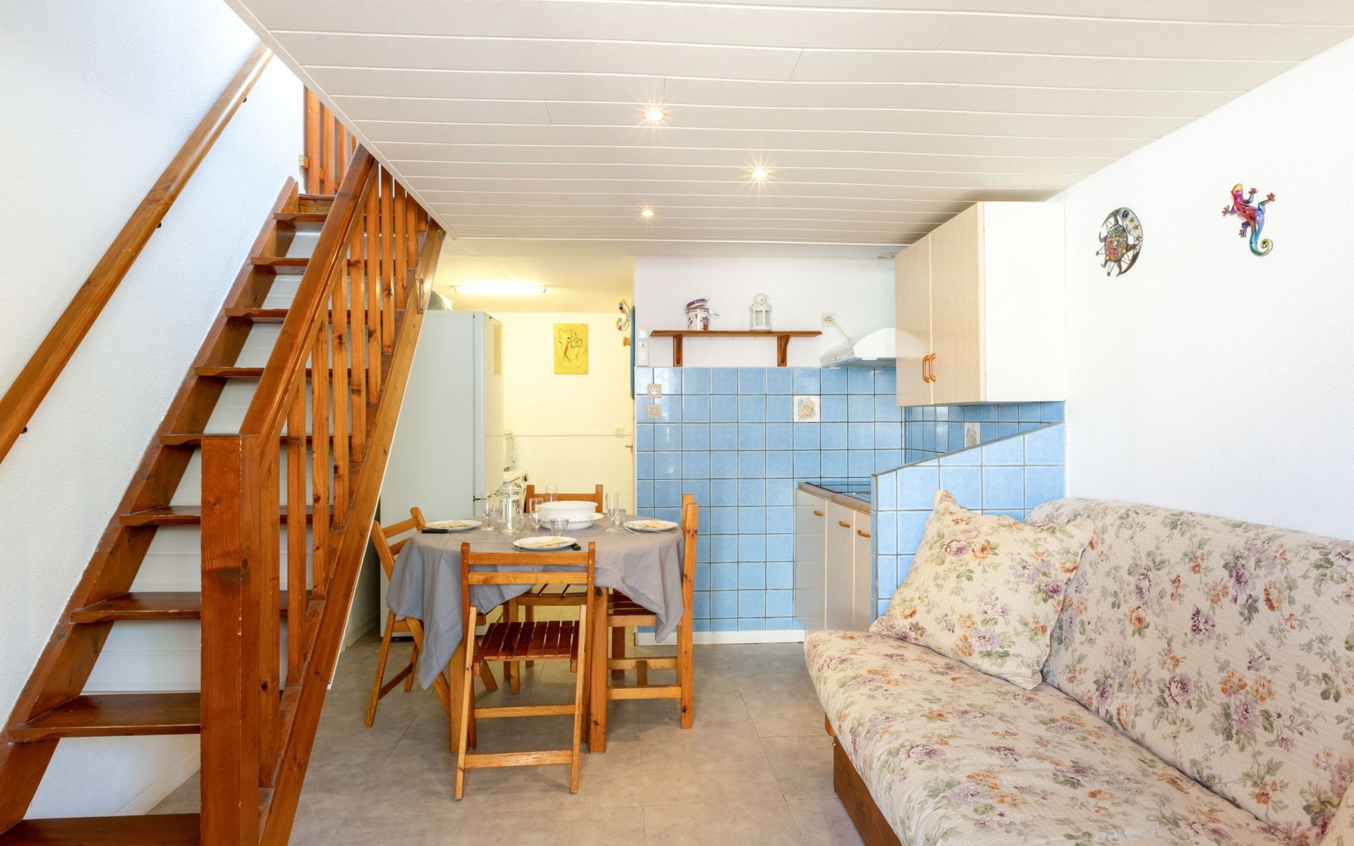Cosy residence "Santa Barbara". 120 houses in the residence. On the outskirts, 1 km from the sea, 50 m from the lake, 1 km from the beach. Parking. Grocery 3 km, supermarket 5 km, restaurant 1.5 km, bar 2 km, bakery 2 km, bicycle rental 6 km, bus stop "Le Barcarès" 400 m, railway station "La Franqui" 16 km, sandy beach "plage de port leucate" 2 km, diving center 6 km, outdoor swimming pool 4 km, nudist beach 5 km. Sports harbour 7 km, surf school 1 km, sailing school 3 km, tennis 3 km, minigolf 5 km, riding stable 9 km. Nearby attractions: Aqualand Port Leucate 7 km, Réserve Africaine de Sigean 41 km, Fort de Salses 20 km, Narbonne 55 km, Perpignan 25 km, Barcelone 215 km. Well-known lakes can easily be reached: Etang de Leucate ou Salses 7 km, Lac de Villeneuve de La Raho 28 km. Hiking paths: Sentier du guetteur 8 km, Station meteorologique de Opoul Perillos 25 km, Sentier du littoral Collioure 40 km. The Residence has private small beach areas on the salt water lake.