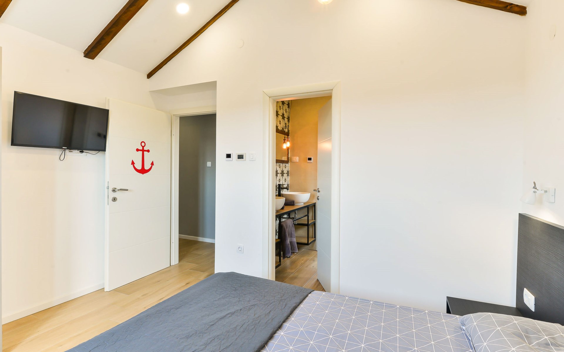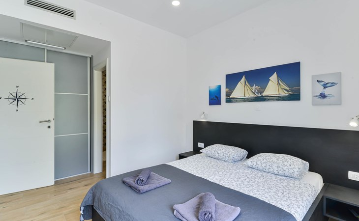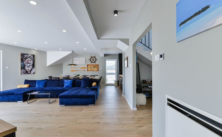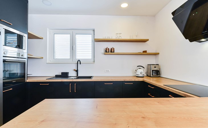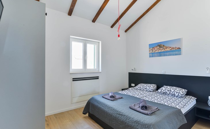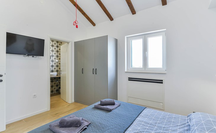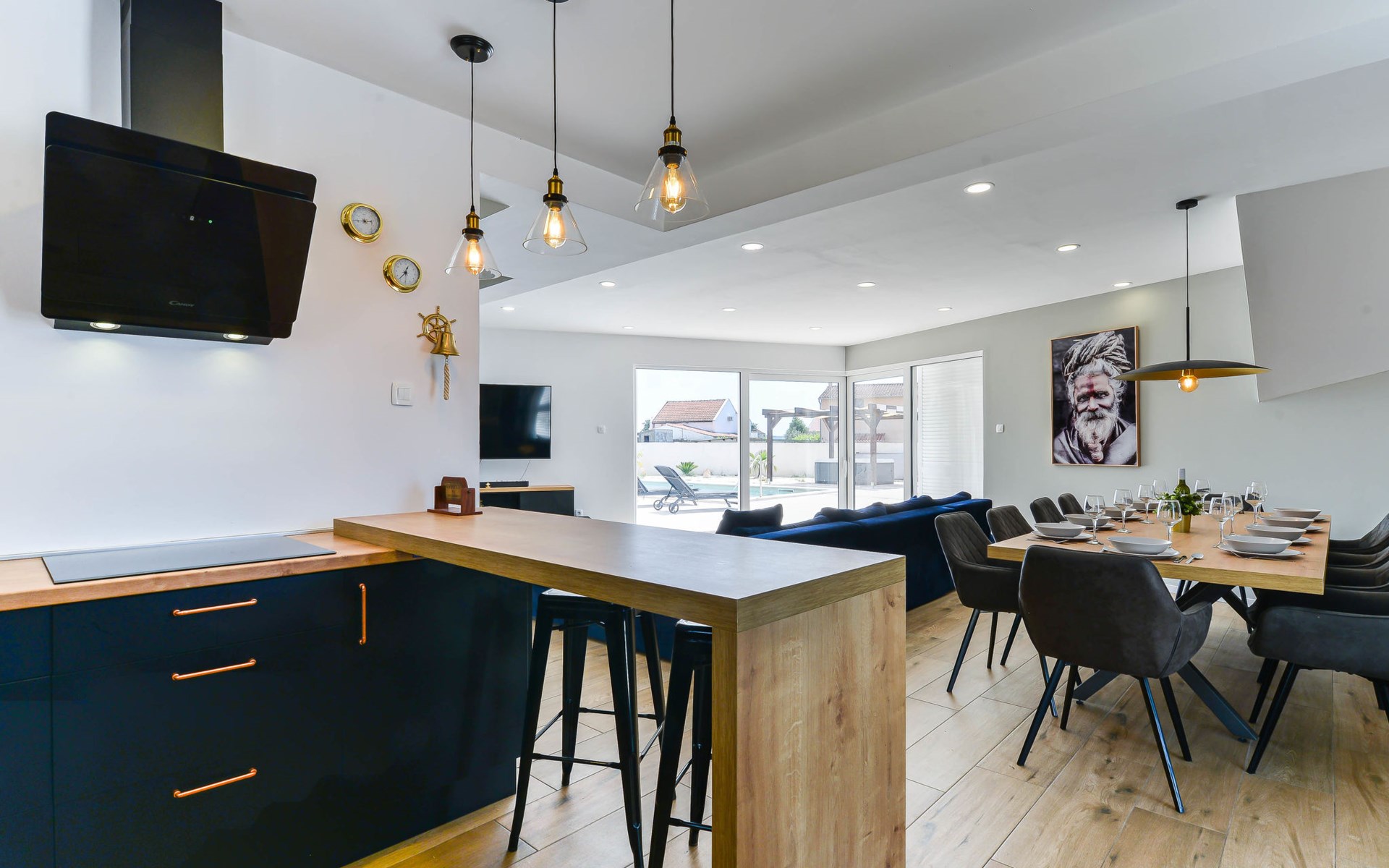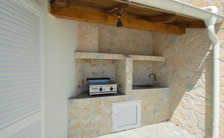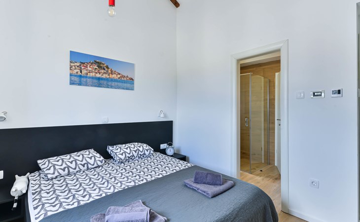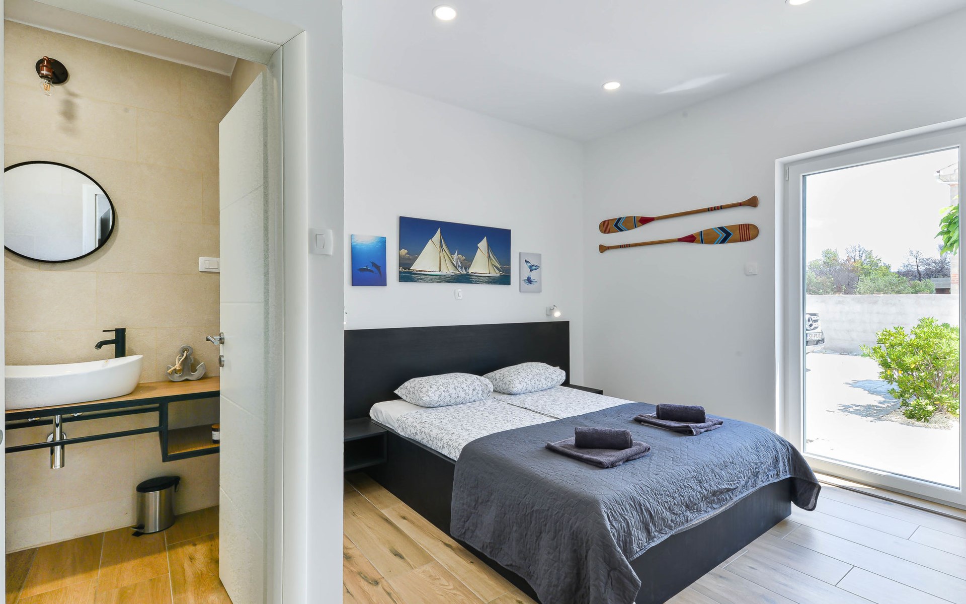 Villa "Violet", 2 storeys, built in 2018. 1.5 km from the centre of Zaton, in a quiet, sunny position, 1.5 km from the sea, 2.5 km from the beach. Private: swimming pool angular (10 x 4 m, depth 150 cm, seasonal availability: 01.May. - 30.Sep.) with internal staircase. Outdoor shower, hot tub, pergola, garden furniture, barbecue. In the house: internet access, sauna, washing machine, tumble dryer. Parking (for 3 cars) at the house on the premises. Shop 1.5 km, restaurant 1.5 km, bus stop 450 m, pebble beach 3 km, concrete beach 2.5 km. Nearby attractions: NP Krka 20 km. Please note: suitable for families.