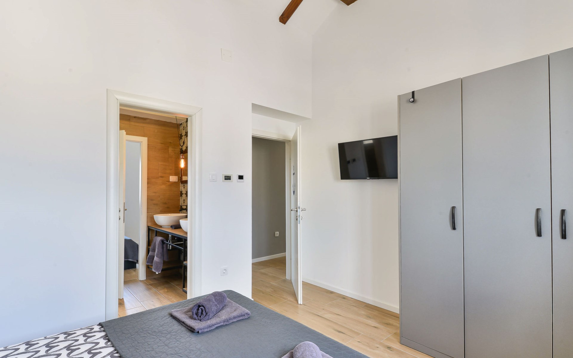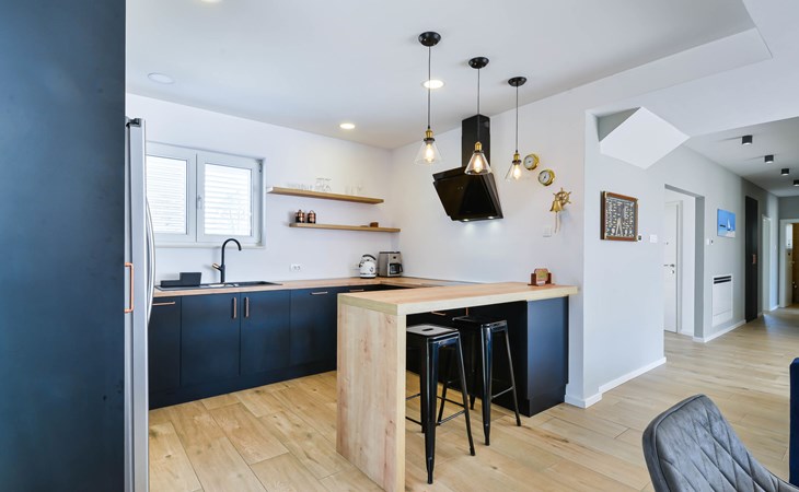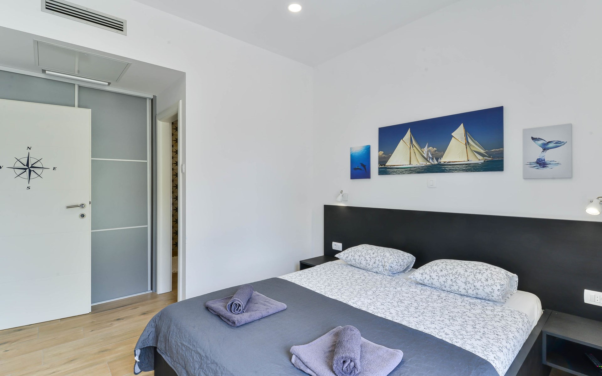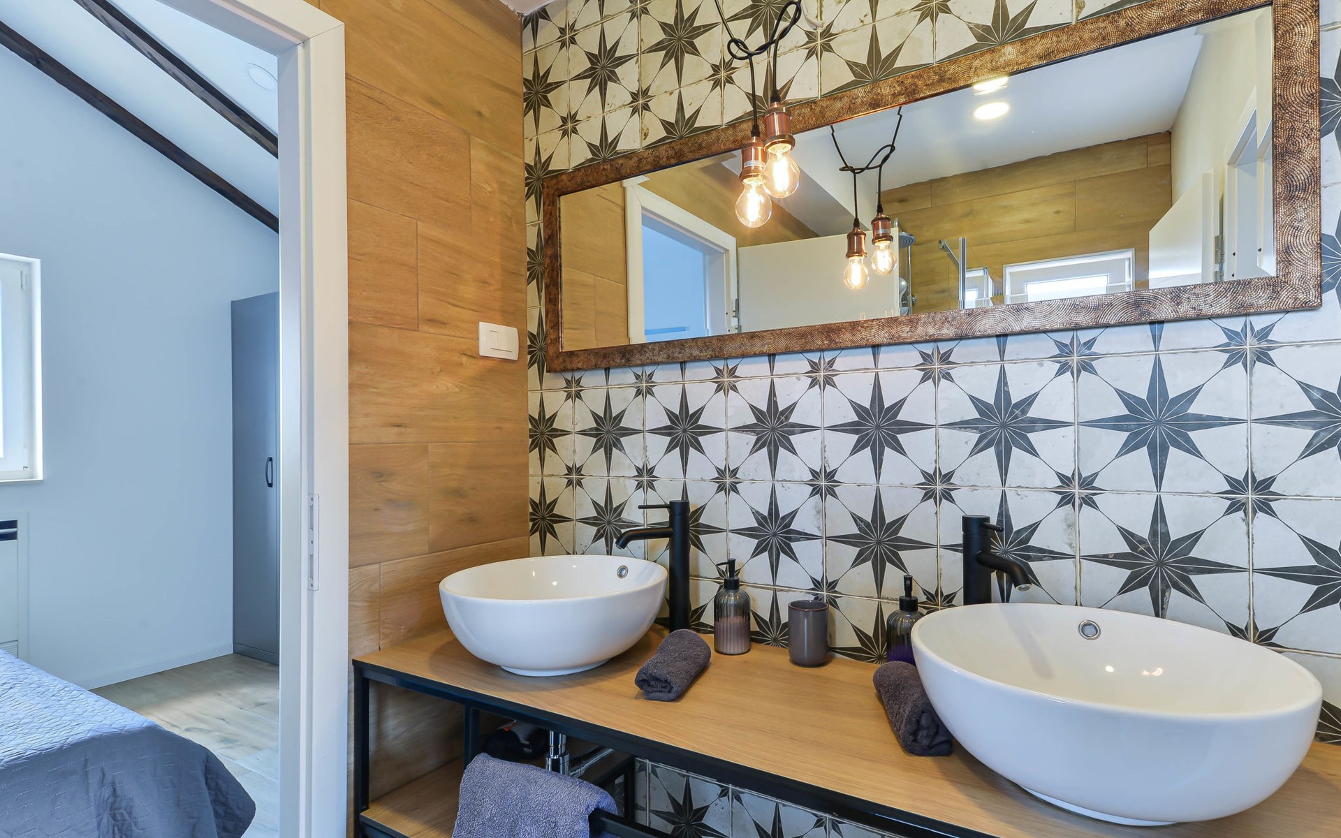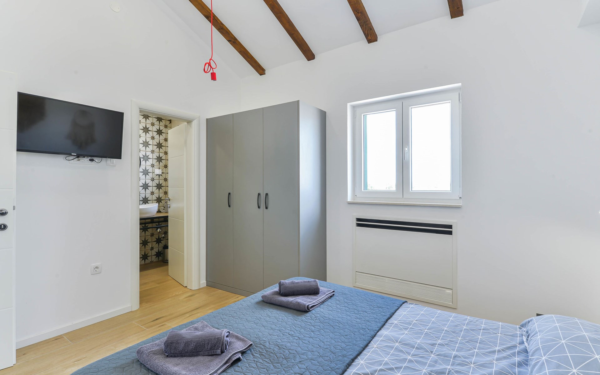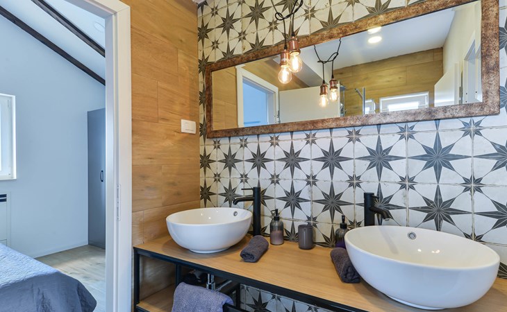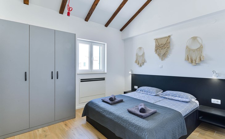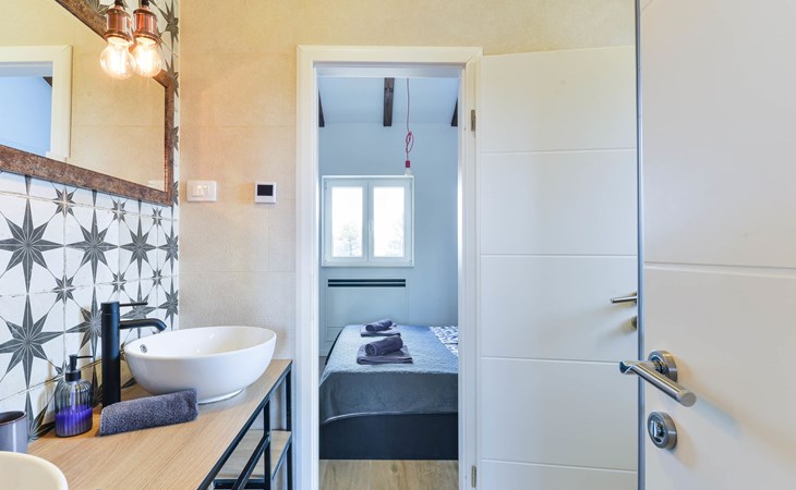 Villa "Violet", 2 storeys, built in 2018. 1.5 km from the centre of Zaton, in a quiet, sunny position, 1.5 km from the sea, 2.5 km from the beach. Private: swimming pool angular (10 x 4 m, depth 150 cm, seasonal availability: 01.May. - 30.Sep.) with internal staircase. Outdoor shower, hot tub, pergola, garden furniture, barbecue. In the house: internet access, sauna, washing machine, tumble dryer. Parking (for 3 cars) at the house on the premises. Shop 1.5 km, restaurant 1.5 km, bus stop 450 m, pebble beach 3 km, concrete beach 2.5 km. Nearby attractions: NP Krka 20 km. Please note: suitable for families.