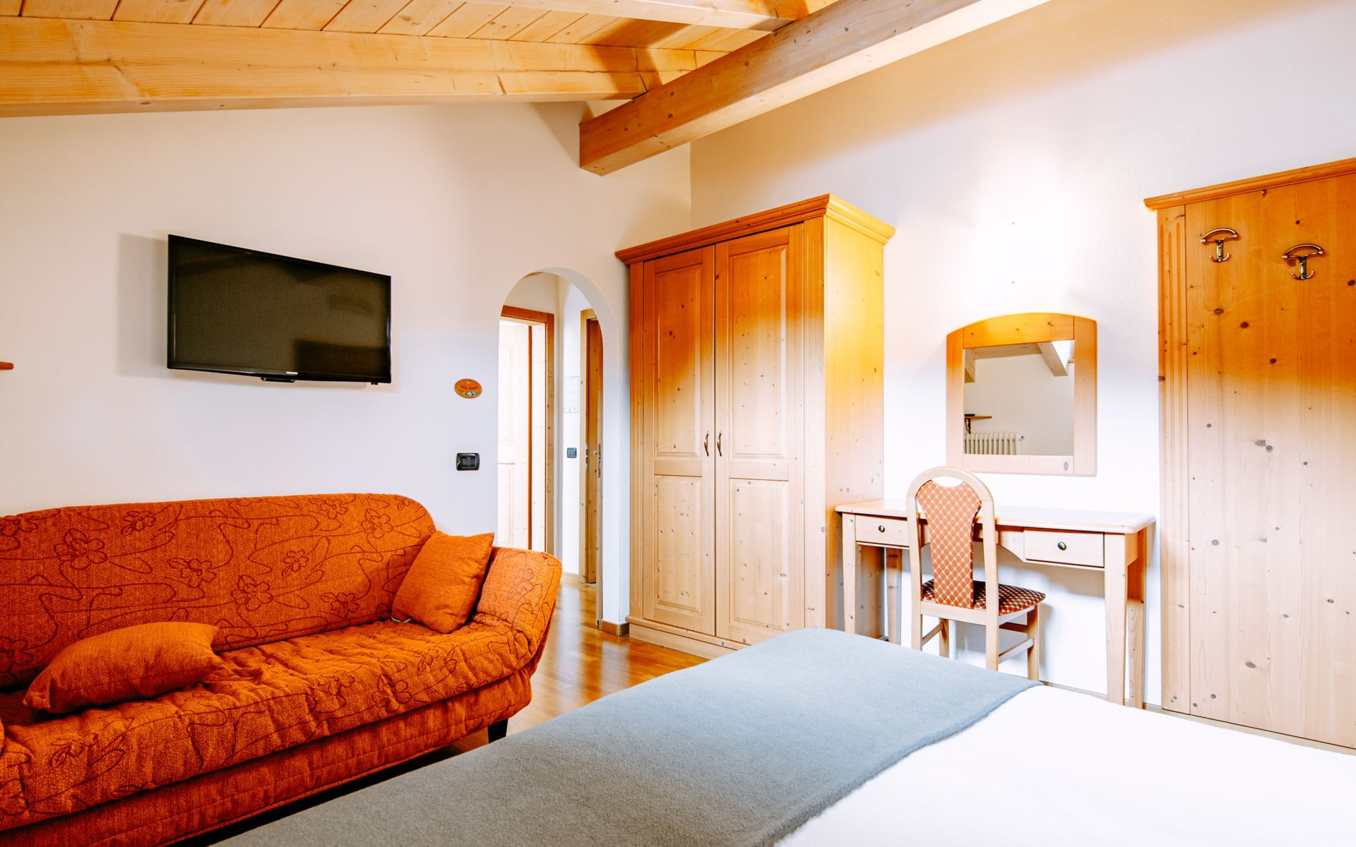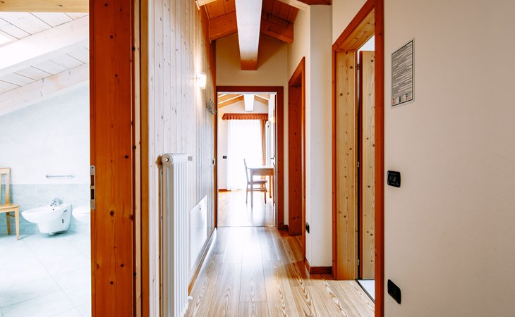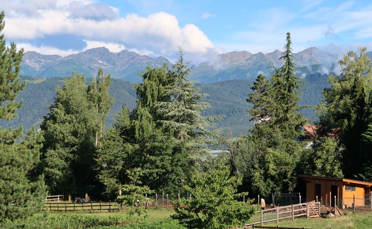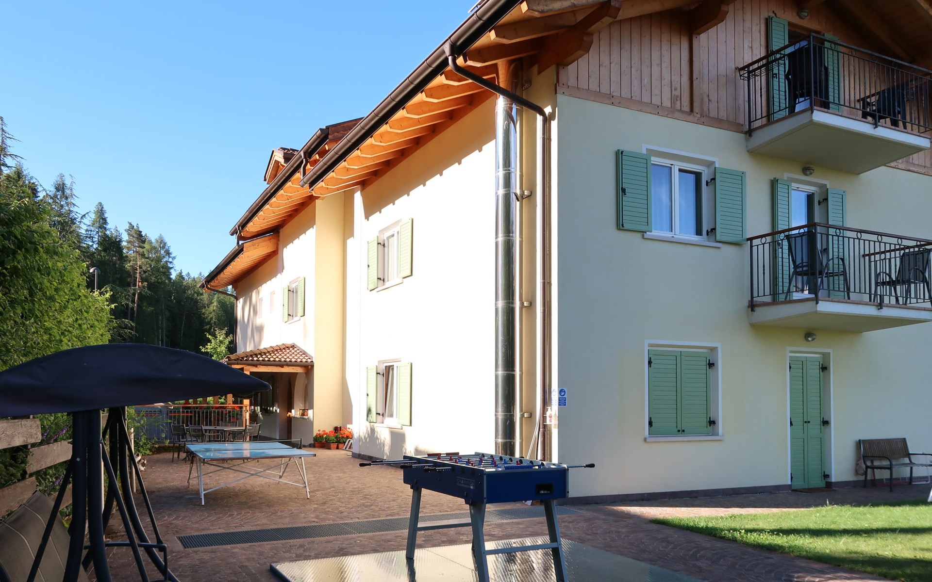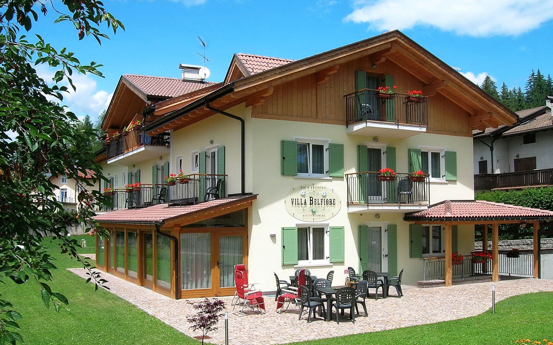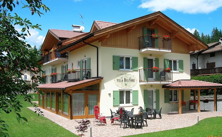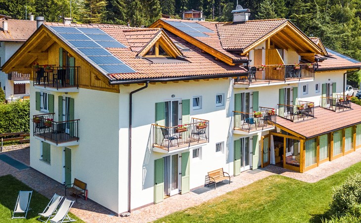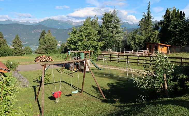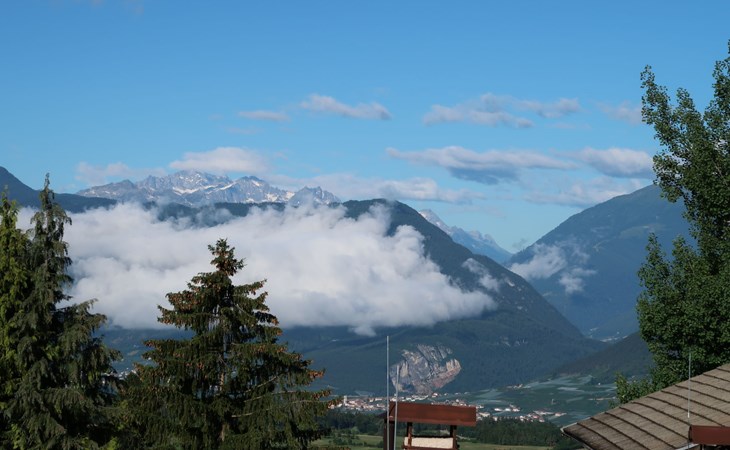 Val di Non 19 km from Cles: Beautiful, cosy house "Belfiore", 1'160 m a.s.l., 3 storeys, surrounded by meadows. 2 apartments in the residence. Outside the resort, 400 m from the centre of Ronzone, on a slope, 150 m from the edge of the forest, 16 km from the lake, south-west facing position. For shared use: well-kept garden with lawn. Garden furniture, barbecue, children's playground. In the house: reception, bar, breakfast room, lift, storage room for bicycles, washing machine (for shared use, extra). Breakfast possible on request (extra). Parking at the house. Supermarket 1 km, restaurant 1 km, bus stop "Linea B630 (Cles-Mendola)" 200 m, railway station "Bolzano" 32 km, grass beach "Lago di Santa Giustina" 16 km, outdoor swimming pool, indoor swimming pool 400 m, bathing lake "Lago di Santa Giustina" 16 km. Golf course (18 hole) 4.4 km, walking paths from the house 250 m, cycle lane 150 m. Nearby attractions: Passo della Mendola 5 km, Canyon Rio Sass 5 km, Parco Fluviale Novella 16 km, Santuario San Romedio 16 km, Castel Thun 30 km. Well-known lakes can easily be reached: Lago Smeraldo 7 km, Lago di Tret - Santa Maria 15 km, Lago Tovel 45 km.
