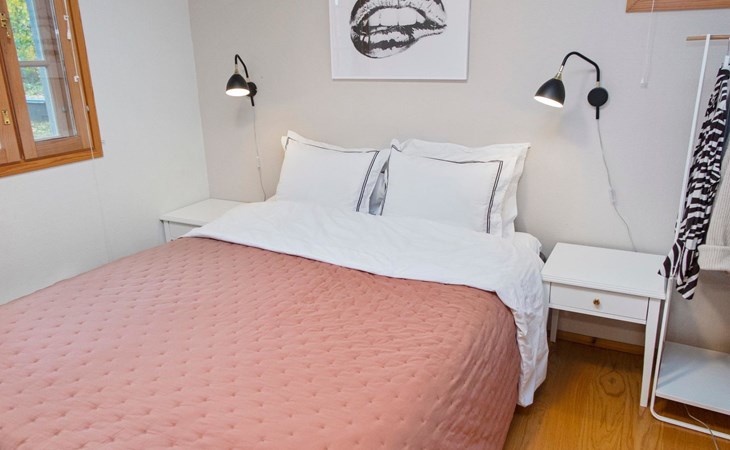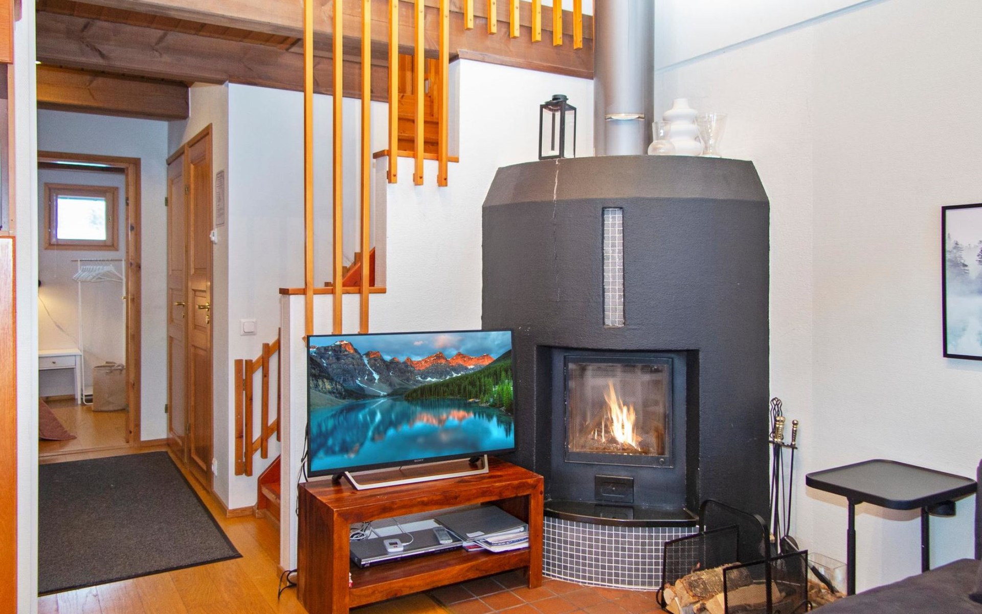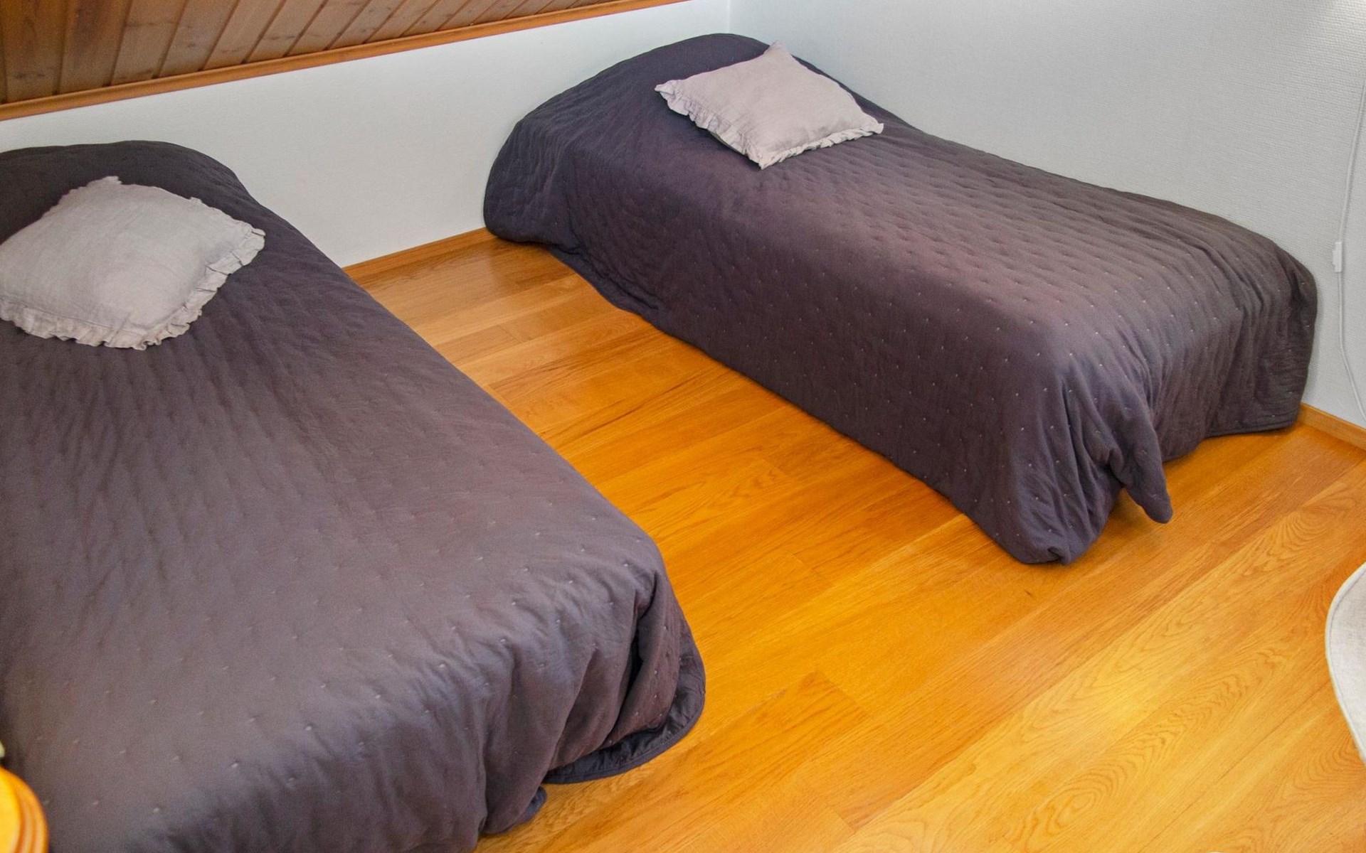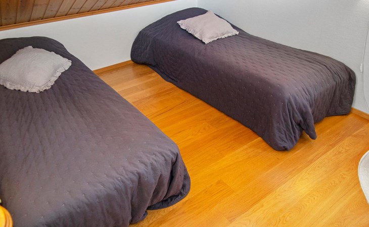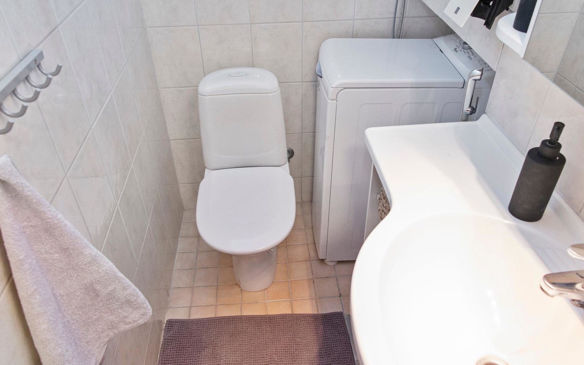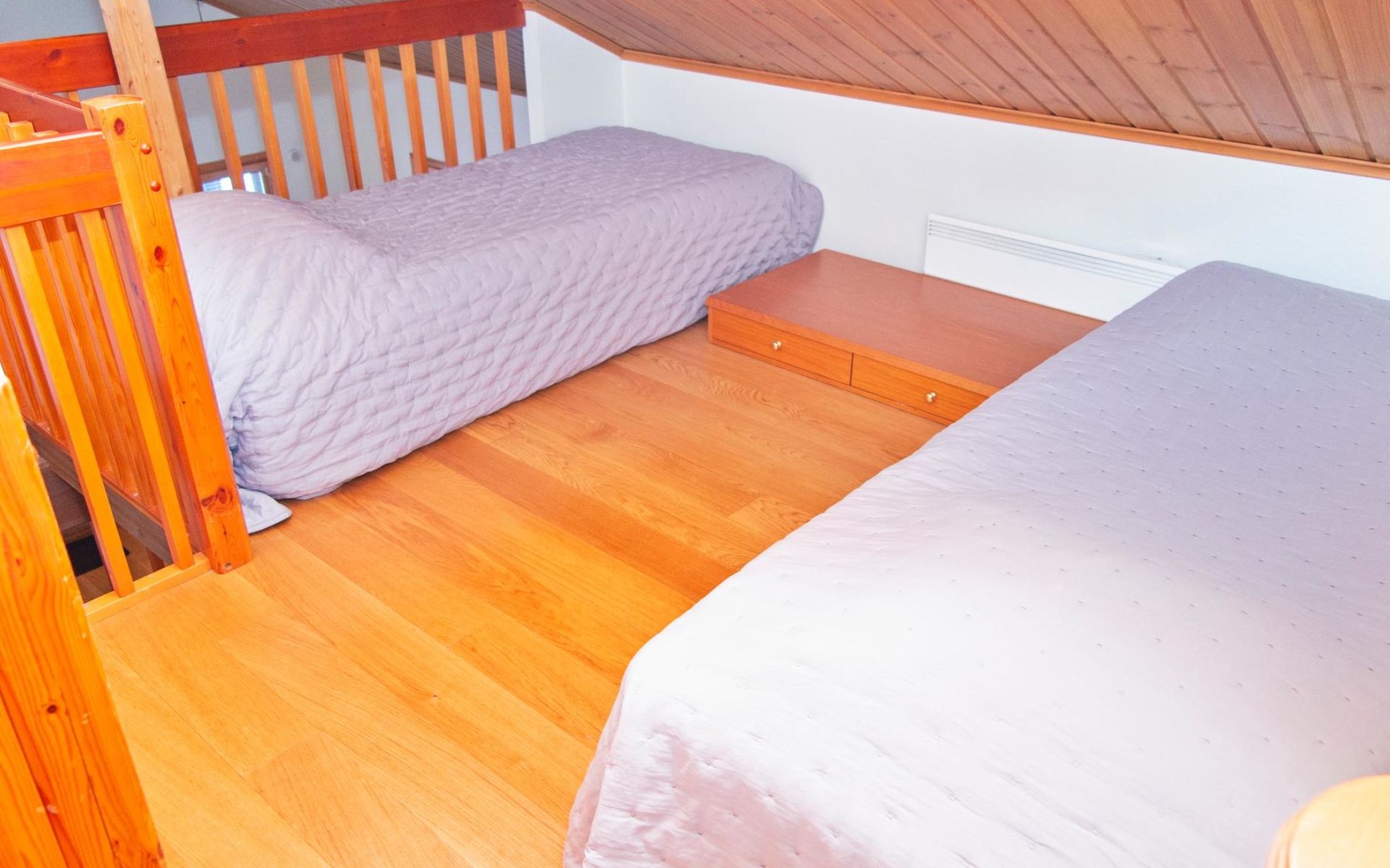 In this semi-detached apartment you have downstairs a living room/kitchen, a bedroom with 2 beds, a washroom, a separate toilet, sauna (electric stove), a hall and a terrace. Cromecast.