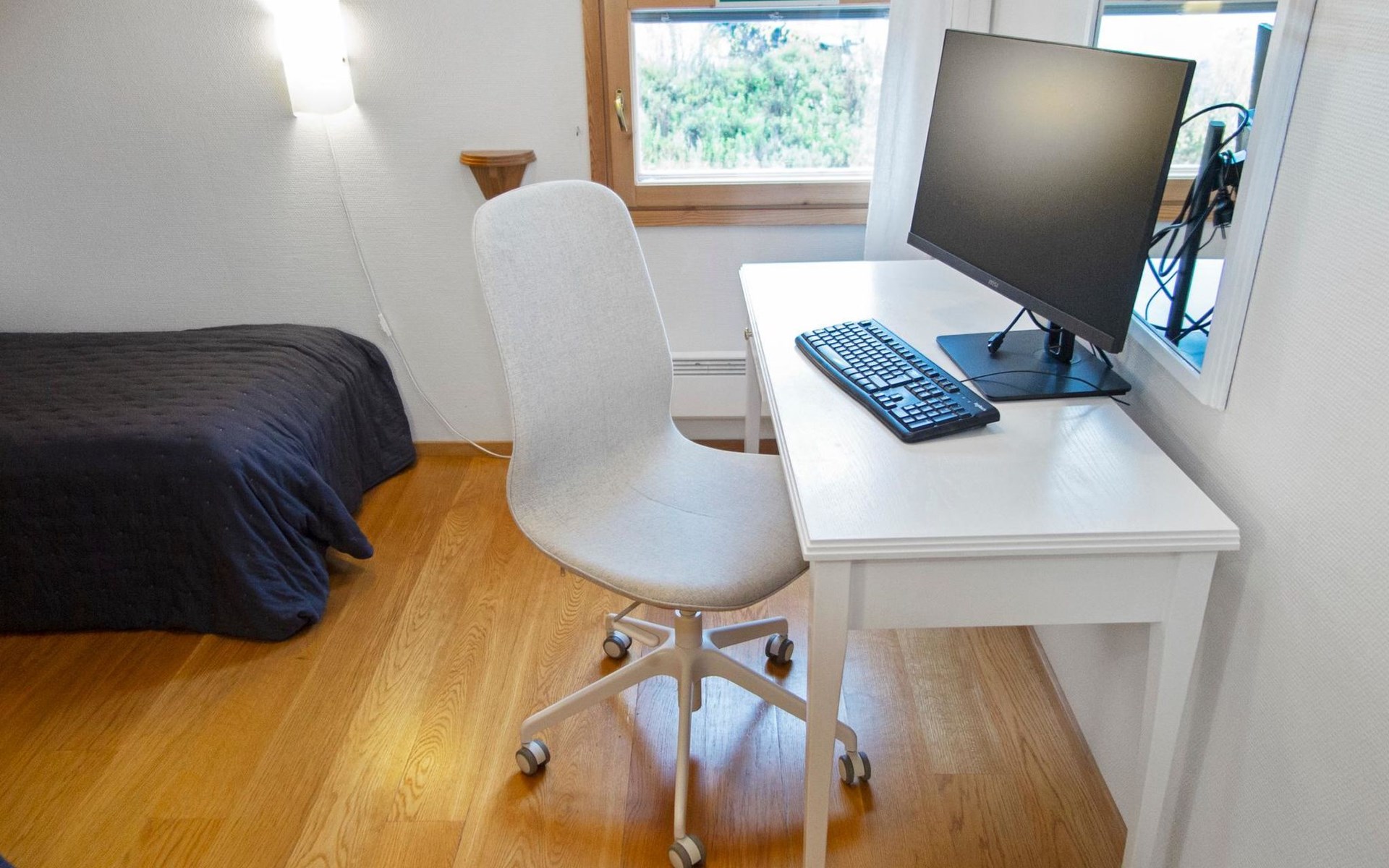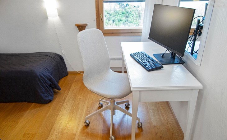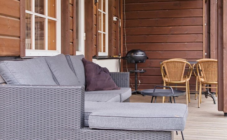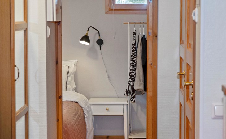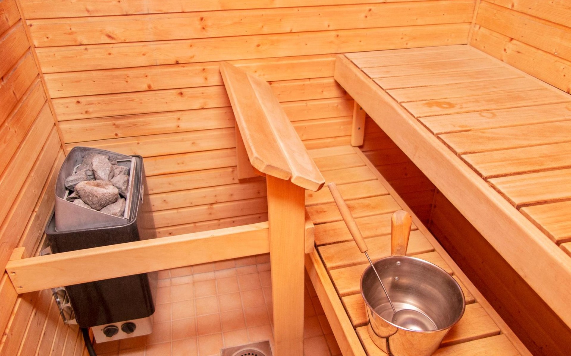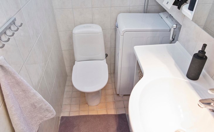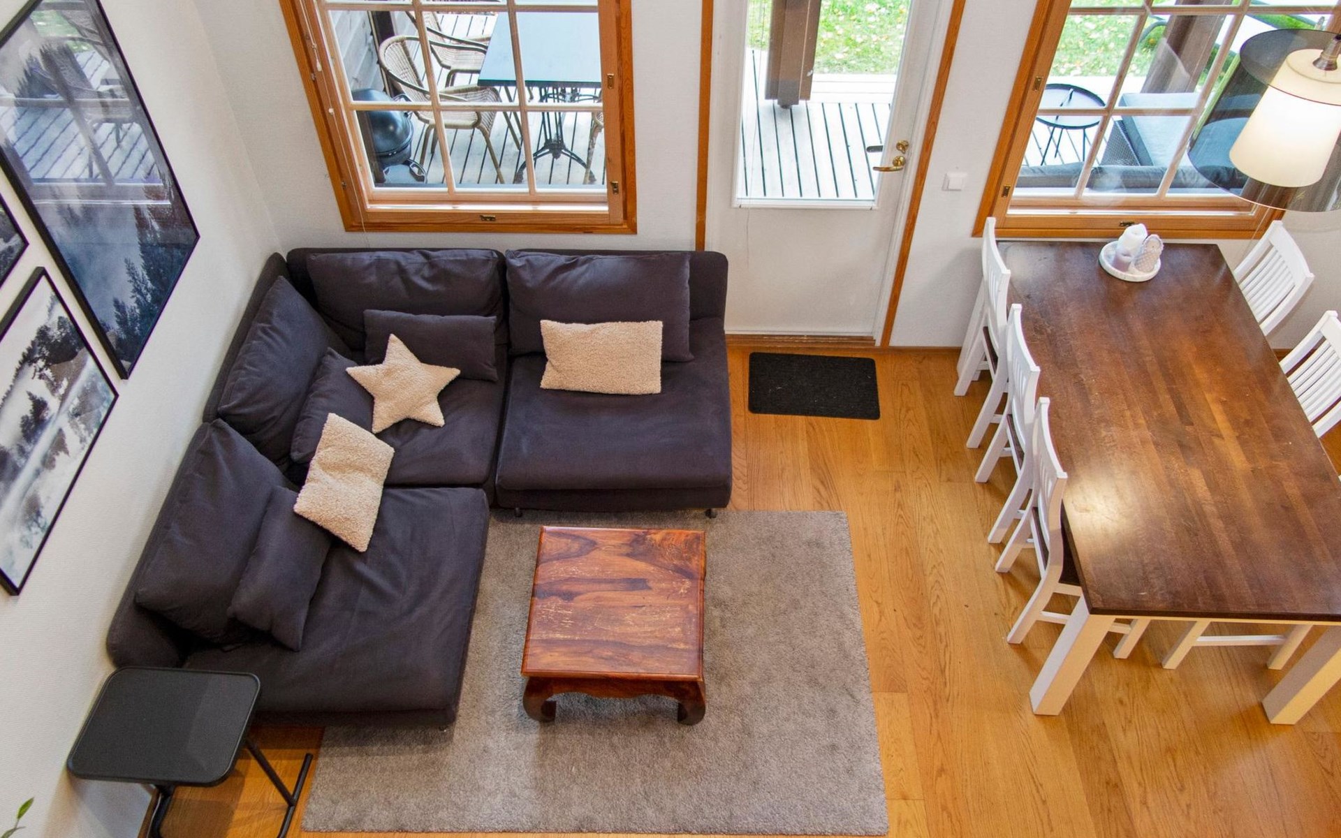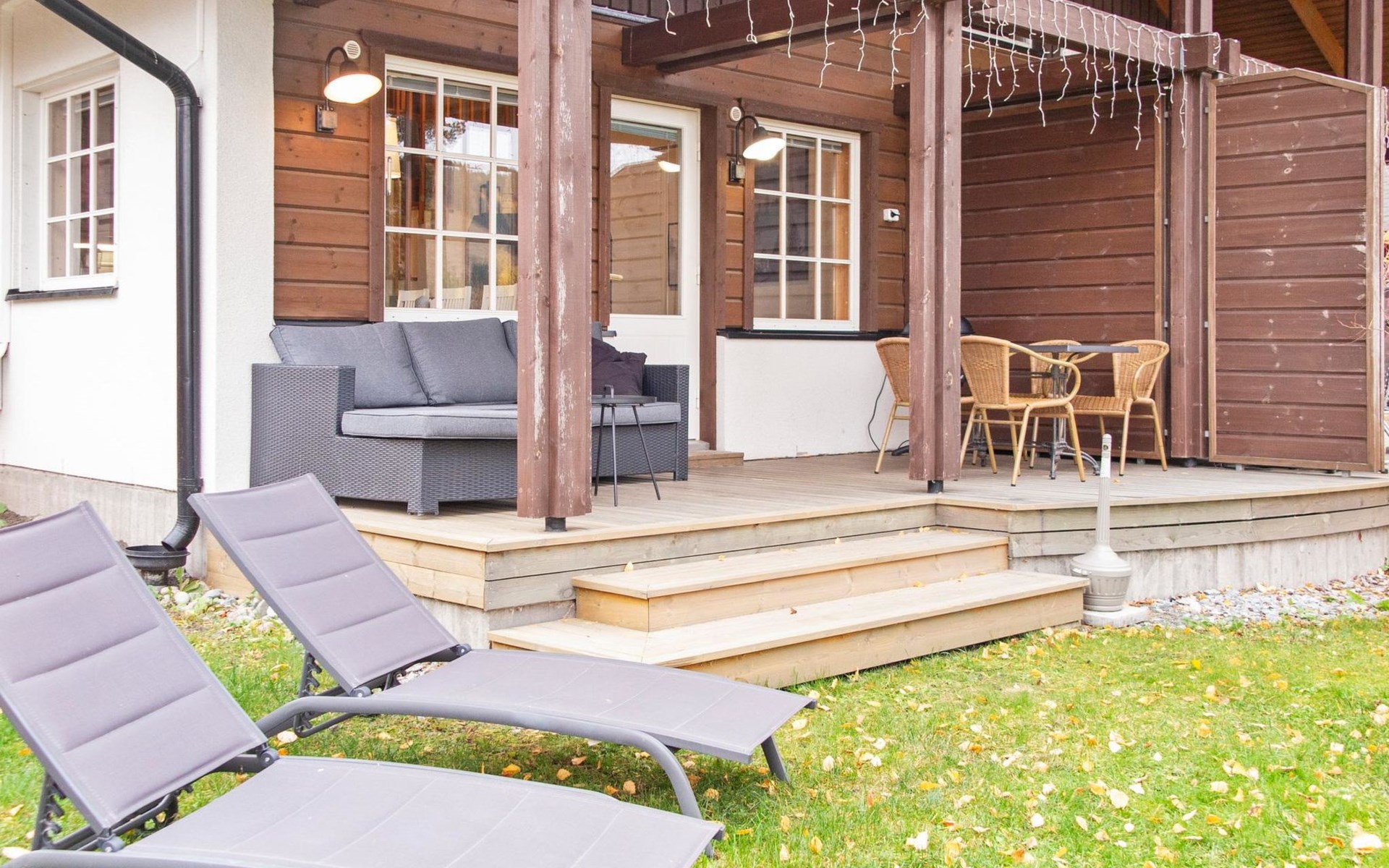 In this semi-detached apartment you have downstairs a living room/kitchen, a bedroom with 2 beds, a washroom, a separate toilet, sauna (electric stove), a hall and a terrace. Cromecast.