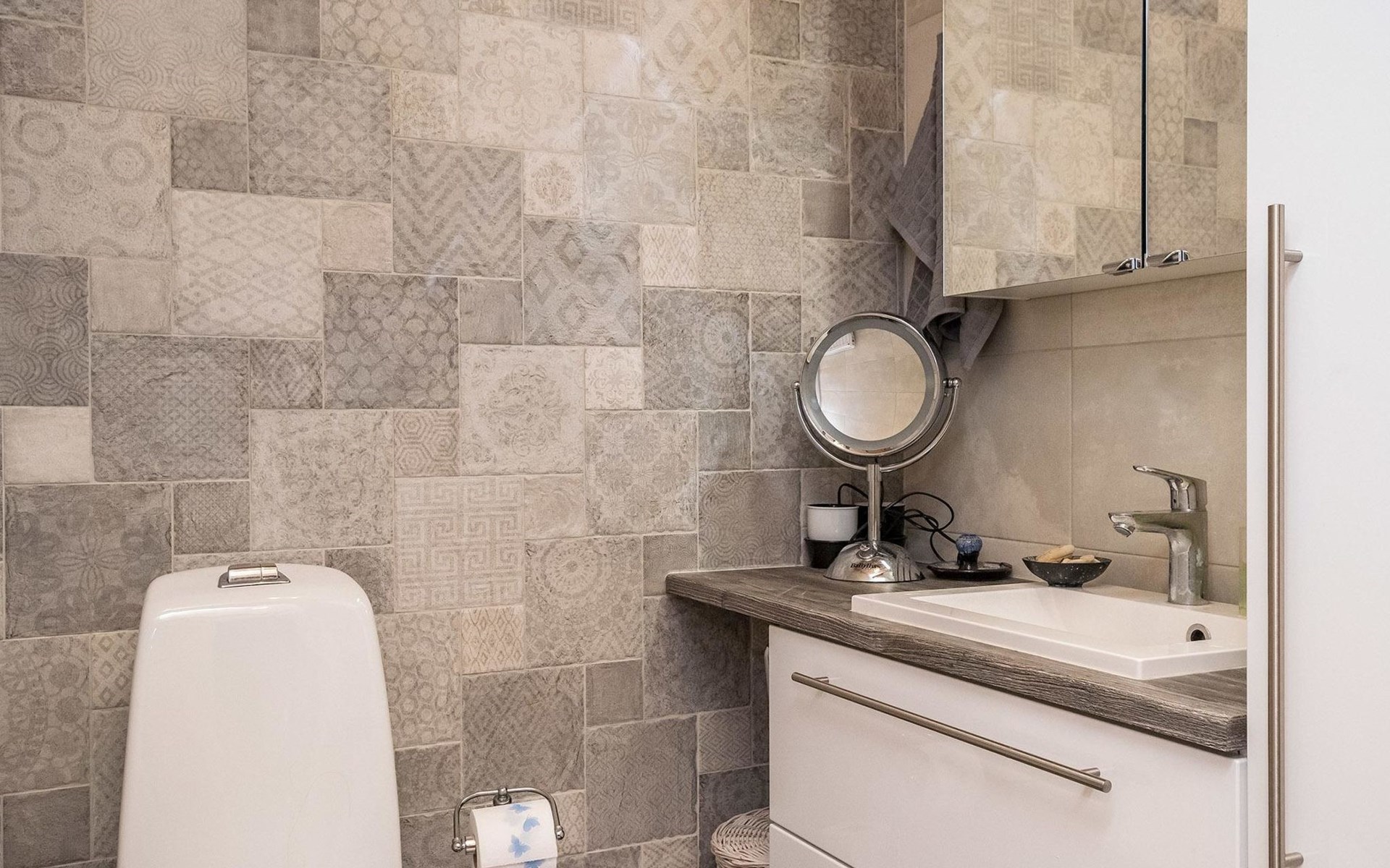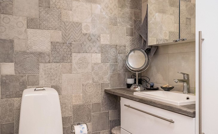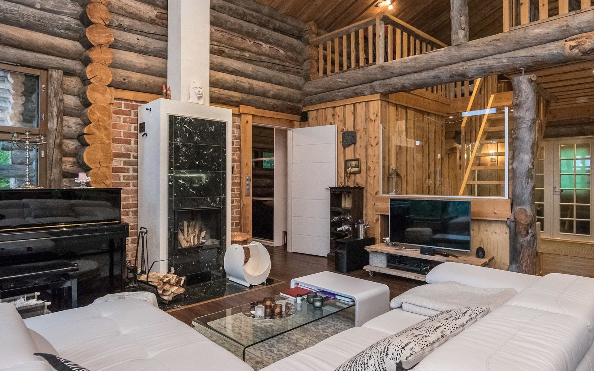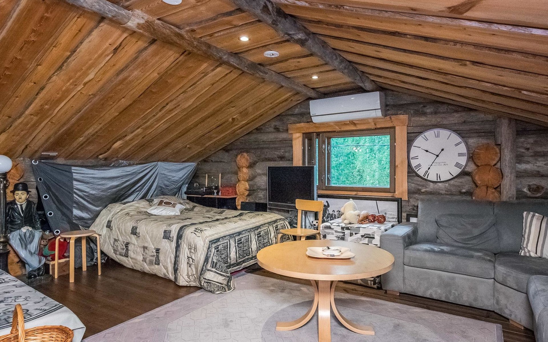 In the loft (about 20 m²) 120 cm bed and work desk. Air source heat pumps for heating and cooling in the loft and on the ground floor.