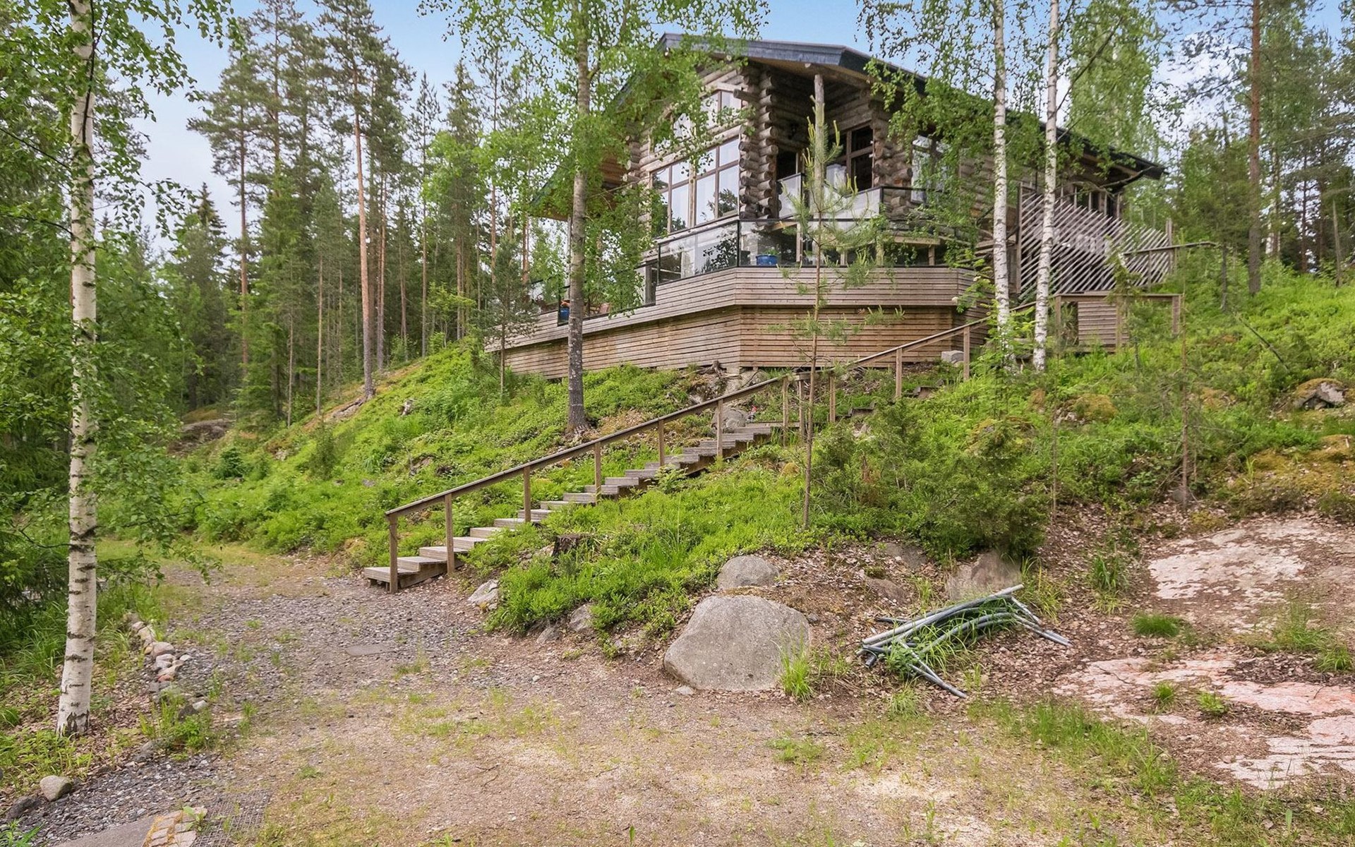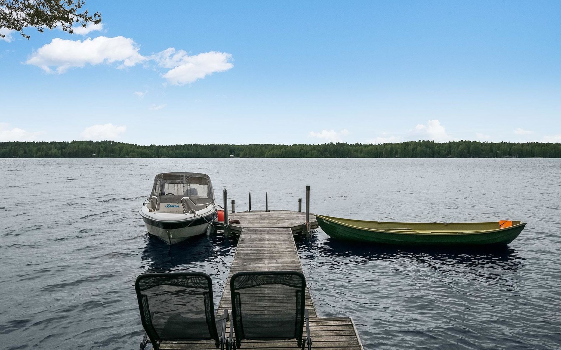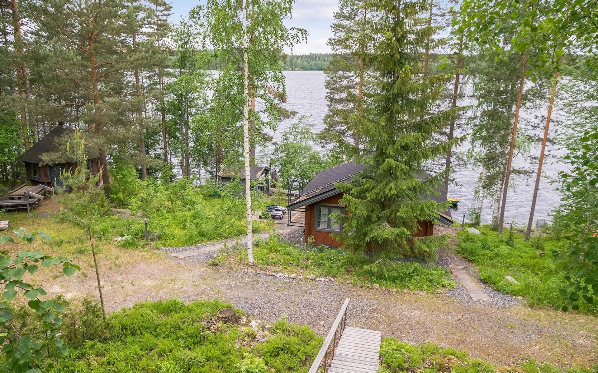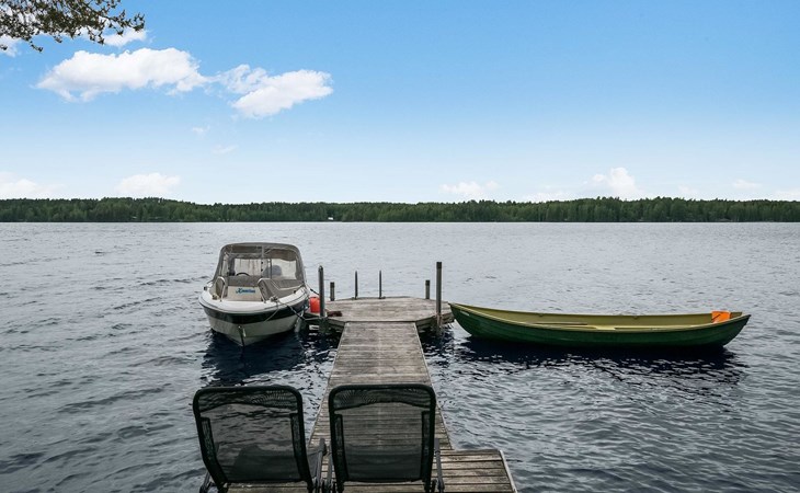 28 km to the northeast from Heinola, lake Ala-Rääveli 40 m (length 15 km, width 1,3 km), hard, stone/gravel bottom, water depth at the end of the pier is approx. 2 m, rowing boat.
