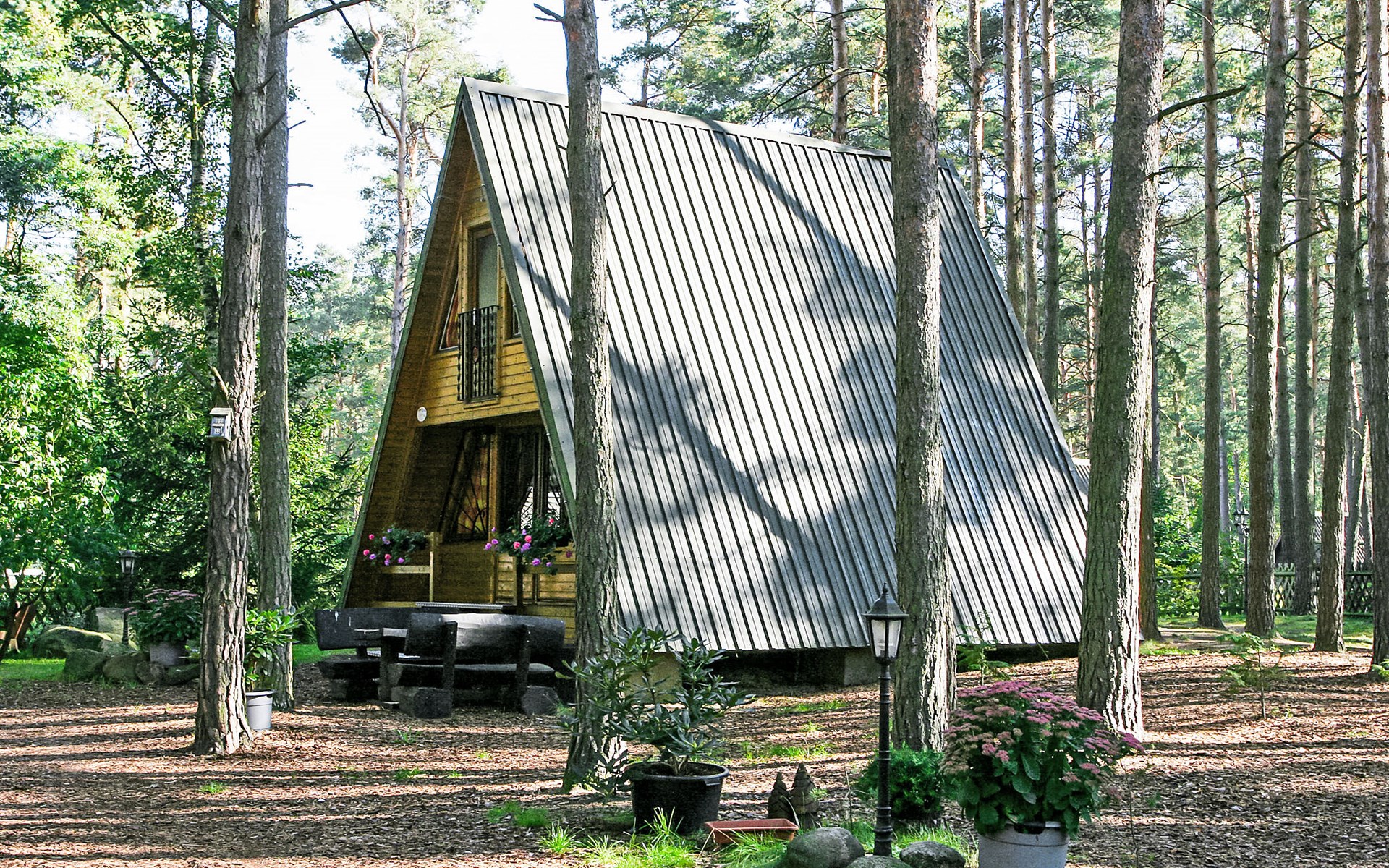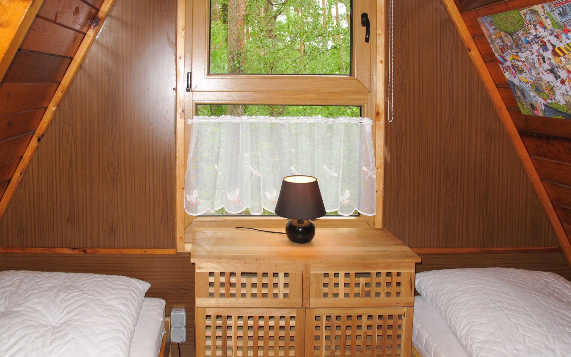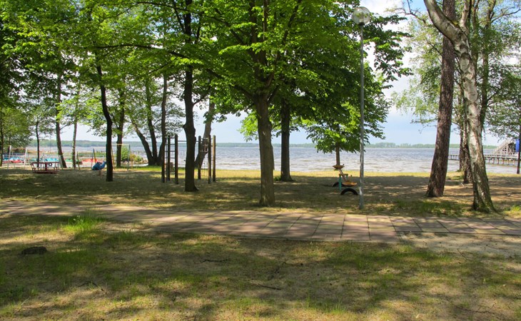 Cosy timber house "Nepumuk". On the outskirts, 1 km from the centre of Arendsee, 200 m from the lake, 200 m from the beach, in the woods. For shared use: property (fenced). Table tennis, children's playground (swing). In the complex: washing machine (extra), tumble dryer (for shared use, extra), bicycle rental. Motor access (via unmade road). Public parking 250 m extra. Grocery 500 m, supermarket 1 km, restaurant 300 m, bus stop "Arendsee, Strandbad" 400 m, railway station "Seehausen" 18 km. Minigolf 500 m. Please note: car recommended. Groups of teenagers on request only. The owner lives on the same property. The photograph shows a typical example. Neighbourhood highly sensitive to noise. Quietness and good behaviour expected. The total of 7 wooden roof holiday homes are located in a small holiday complex, 200 m away from the Arendsee lake, which offers a beach, boat rentals and steamboat trips (extra).