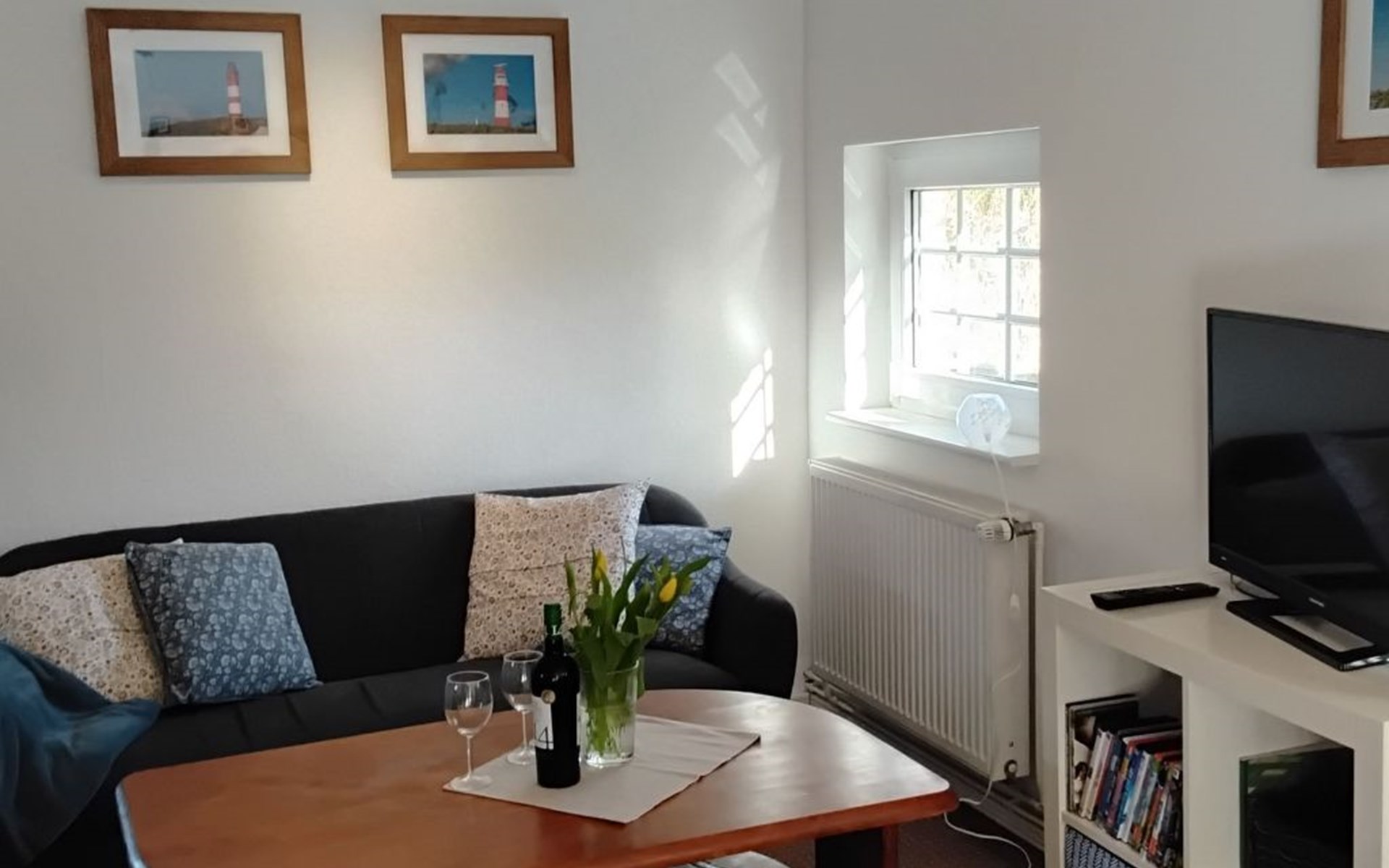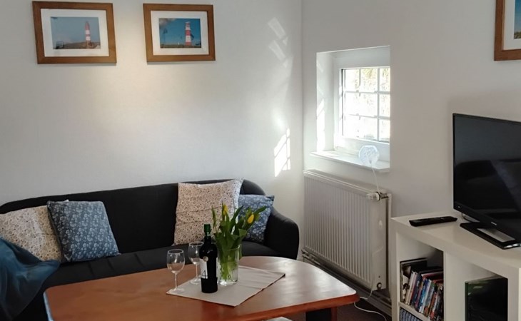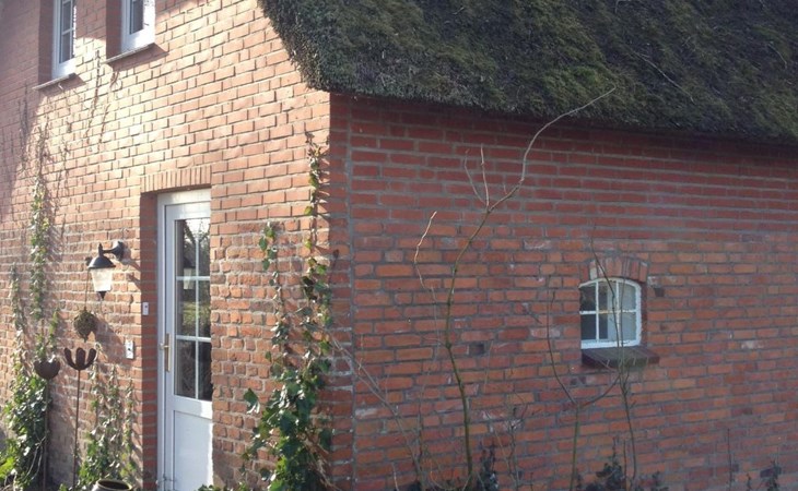The house is a little thatched cottage on two floors. It is behind the second line of the embankment on a commercial road just 800 metres from the North Sea as the crow flies. The house can accommodate four people.