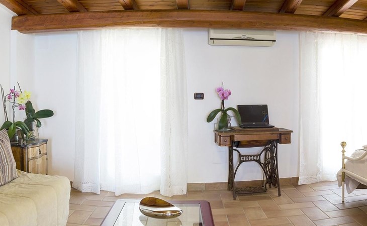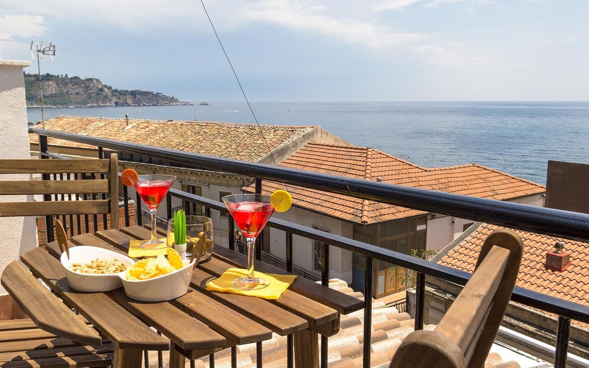 Outside there is a little balcony, affording a great view of the sea and Taormina bay. There is also a big terrace for al fresco dining.