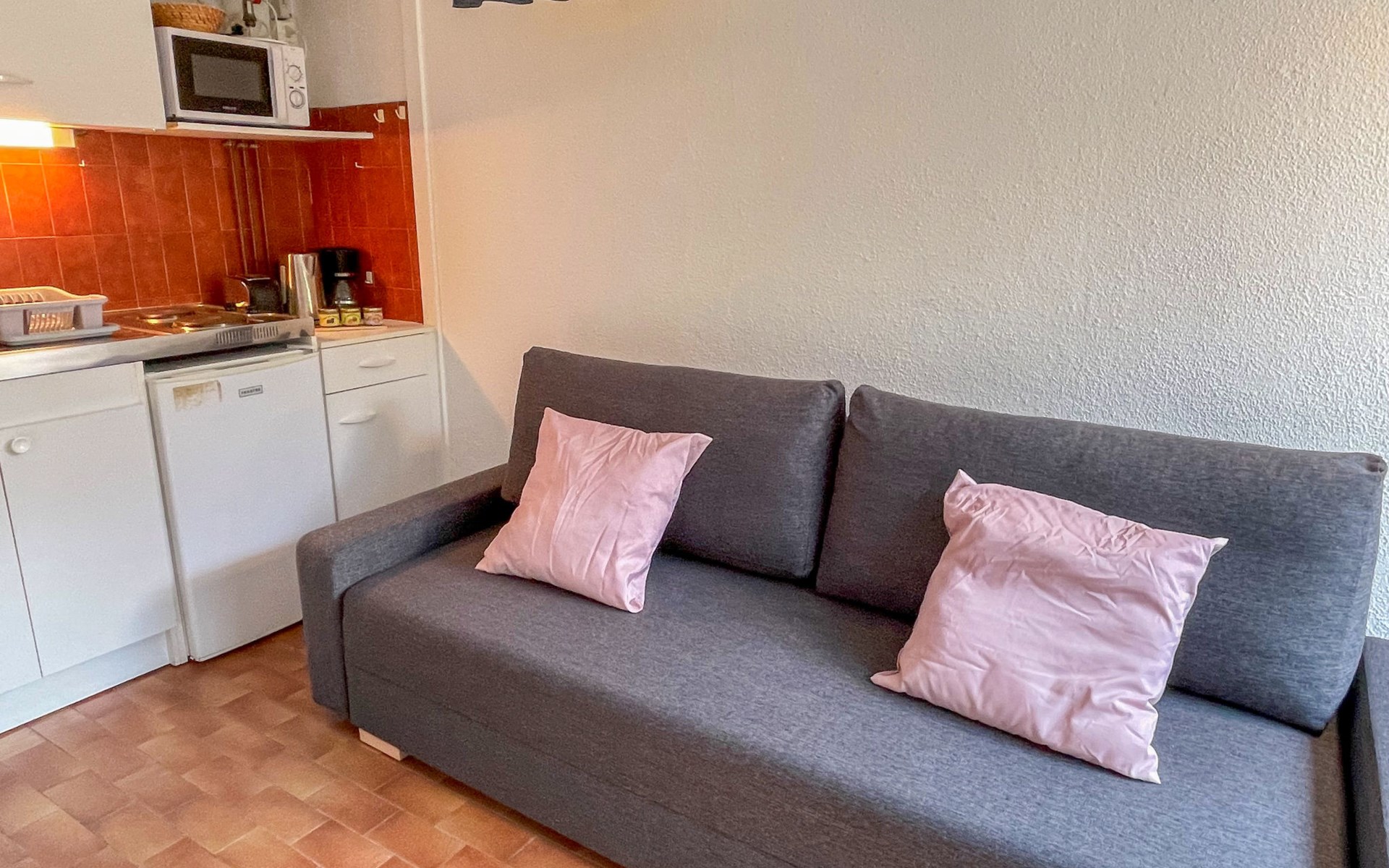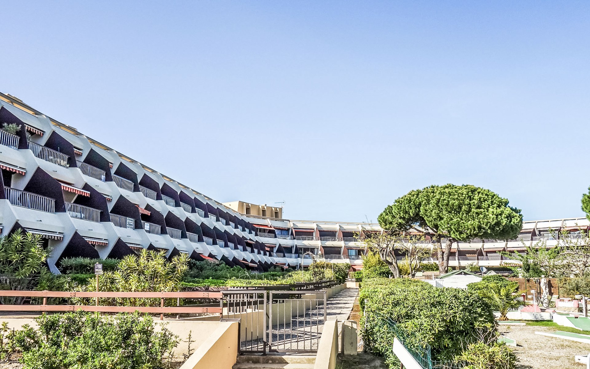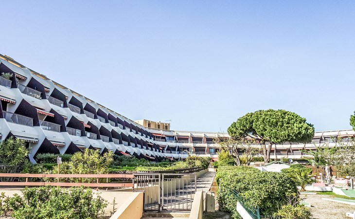 Residence "Le Cabestan", 2 storeys. In the district of la Plage Nord, 250 m from the sea, 250 m from the beach. Public parking 50 m. Shop 100 m, grocery, supermarket 1 km, shopping centre 100 m, restaurant, railway station 2.5 km, sandy beach 200 m, thermal baths "Thalazur Les Bains de Camargue" 2 km. Tennis 600 m, riding stable 2 km. Nearby attractions: Arènes du Grau du Roi 2.5 km, Aigues Mortes 8 km, Grande Motte 14 km, Saintes-Maries-de-la-Mer 38 km, Nîmes 52 km. Hiking paths: Réserve Naturelle de Camargue. Please note: airfield 24 km from the property. Pedestrian area, Mini-golf in front of the residence. Restaurants at the base of the building.