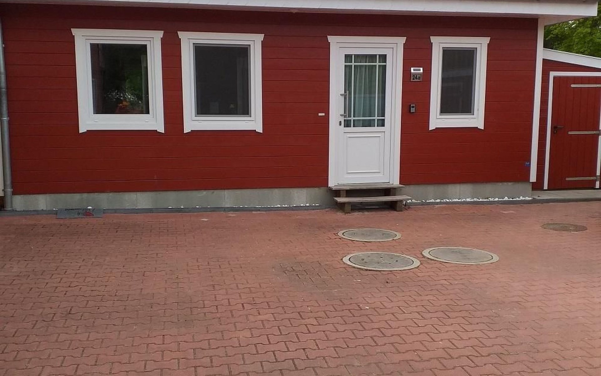 The outdoor area boasts an open and partly covered terrace that invites you to linger. In addition to a table, chairs and two loungers for your relaxation, there is also a shed on the property that offers enough space to safely store bicycles. At the end of the property, a bridge leads over a ditch directly onto the dyke, from where you can enjoy an unobstructed view of the passing ships on the Ems.