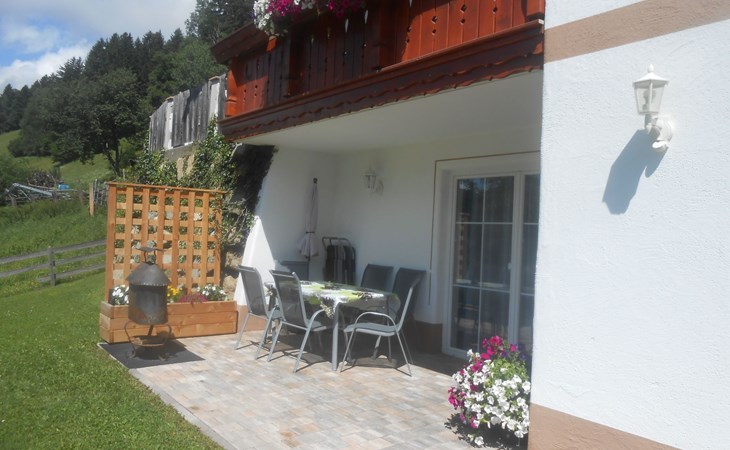 Outside, a furnished terrace invites you to relax and enjoy the peaceful ambience. The adjoining garden, which is shared, has a playground that is particularly popular with our younger guests. This area offers plenty of space to enjoy the fresh mountain air and get away from it all.