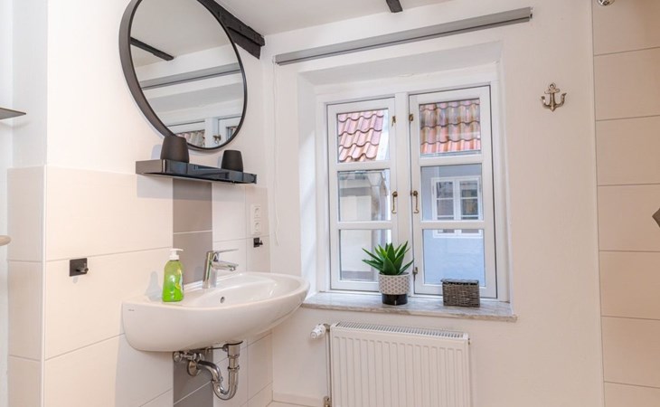 The outdoor area of the holiday flat, located on the first floor, promises quiet evenings in pleasant surroundings. Even though the flat itself does not have its own outdoor area such as a balcony or garden, the location in Flensburg invites you to enjoy the fresh Baltic Sea air on a walk or in one of the nearby parks.