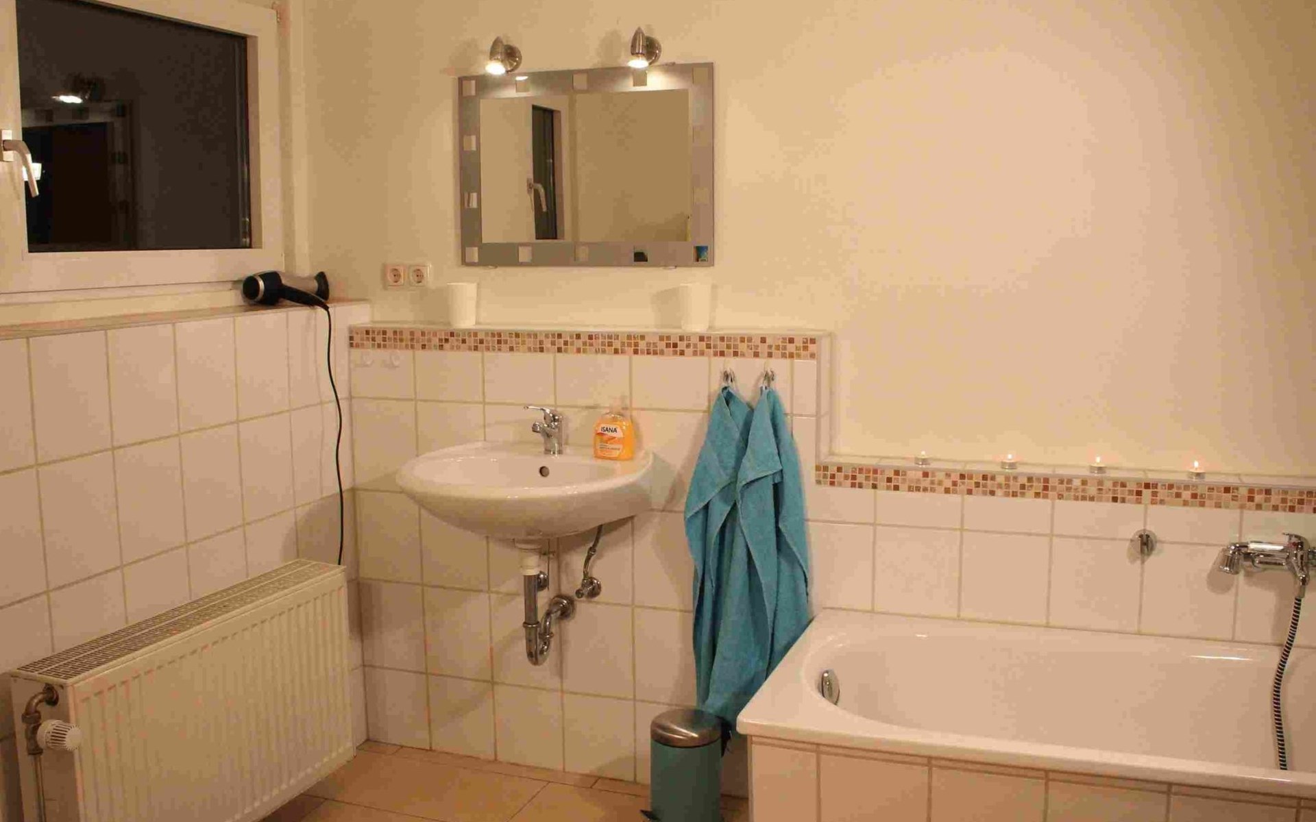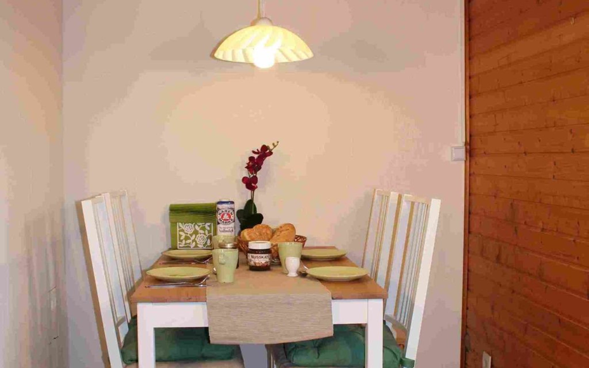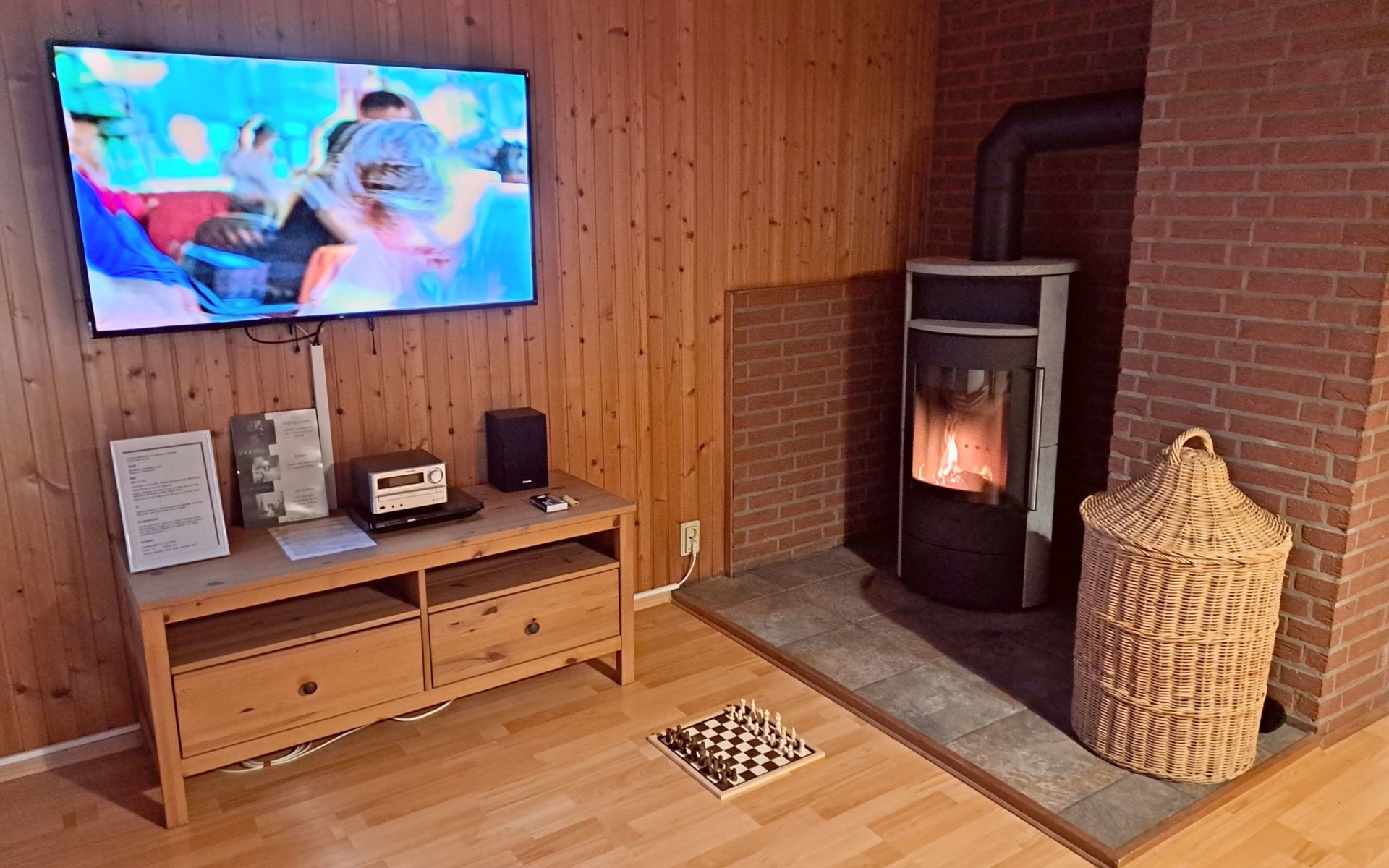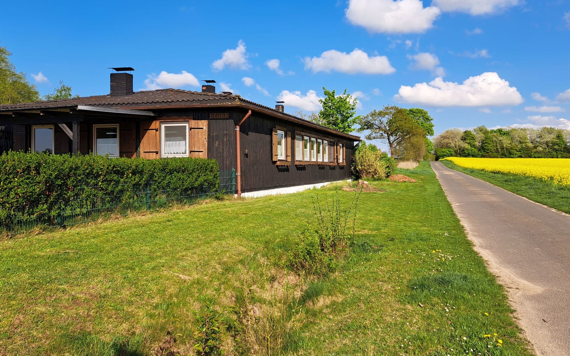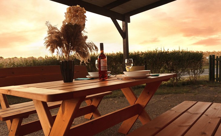The so-called "customs house" from the 1960s has been lovingly renovated and brought up to date. The interior creates a cosy atmosphere of rustic comfort and modern elements. The large garden and the covered terrace have been retained. The holiday accommodation extends over a living space of 70 m² and is divided into a bedroom, a large living room, a separate kitchen with dining area and a daylight bathroom. The heart of the flat is the stately living room, which has a bright laminate floor and a wonderful wood-burning stove that spreads cosiness in autumn, on cool spring days and of course in winter. Independently of this, central heating also keeps the house warm. Relax on the corner sofa after a day out, while the large flat-screen TV, a Blu-Ray player with a small selection of films and a hi-fi system provide entertainment. The bedroom sleeps two people in a double bed measuring 1.80 x 2.00 metres and has enough space for your clothes in a wardrobe and chest of drawers. The pine design is in keeping with the ambience of the holiday home. Here, too, you have a modern, light-coloured laminate floor. There is another wood-burning stove in the kitchen. Come in after a walk in the still cool spring or a golden autumn day, enjoy a hot soup and the firelight from the stove - the perfect welcome to your temporary home. The tiled kitchen allows for extensive self-catering with a four-zone ceramic hob with oven, fridge, dishwasher and the usual appliances such as a coffee machine, kettle and toaster. In the spacious bathroom, you can choose between a modern shower cubicle and a bathtub. You are welcome to leave your hairdryer at home, there is already one there. The use of WLAN is included.