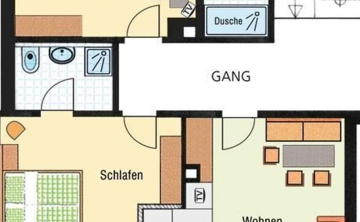 Inside, the three-room flat with its 2 separately accessible bedrooms, equipped with comfortable double beds, balcony and TV, invites you to relax. A cosy living room with south-facing balcony, flat-screen TV, dining area and couch provides entertainment and comfort. The modern integrated kitchen is equipped with everything you need: 4 ring ceramic hob, dishwasher, microwave, fridge, extractor bonnet and various coffee machines (filter, pods, ), toaster, kettle and egg cooker. Two bathrooms with shower/WC round off the comfortable interior.