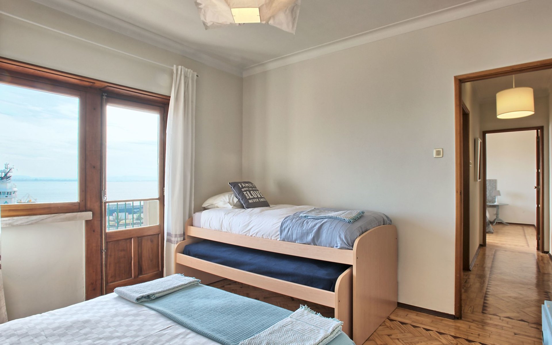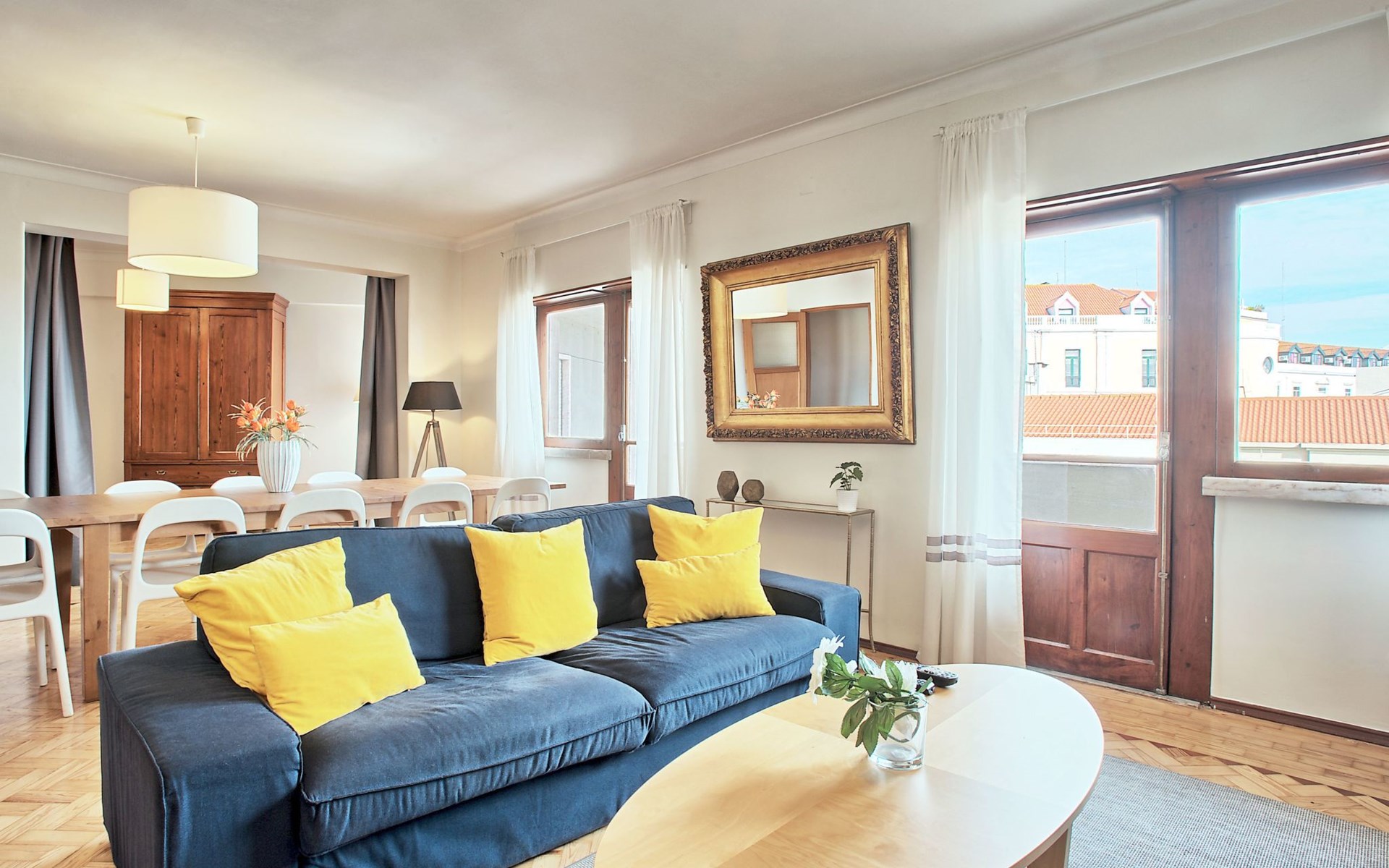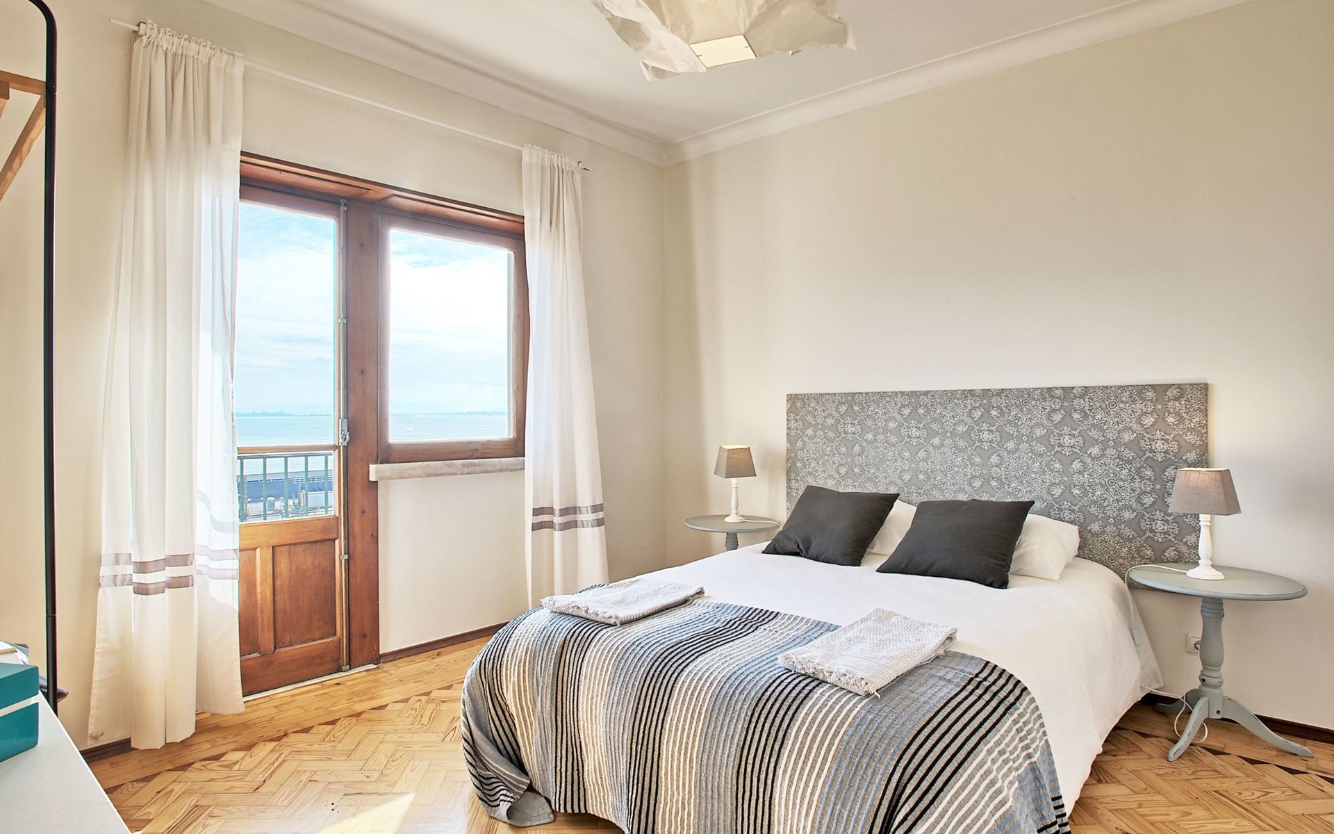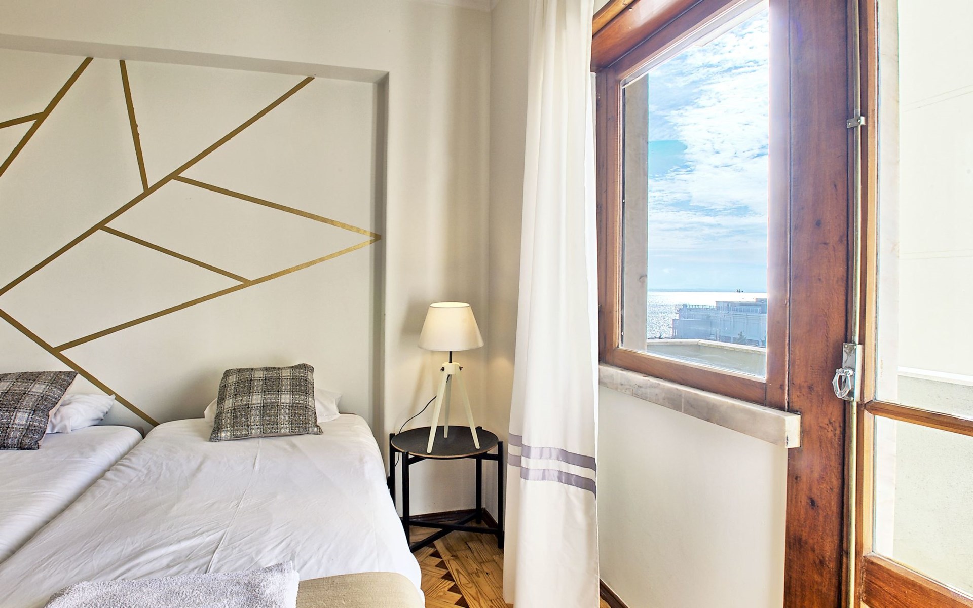 Stepping outside, the apartment boasts three side balconies, one of which offers a picturesque view of the River, providing a tranquil setting to enjoy your mornings or evenings. Although grilling is not permitted, these outdoor spaces serve as lovely areas to soak in the surroundings and enjoy the vibrant atmosphere of Lissabón.