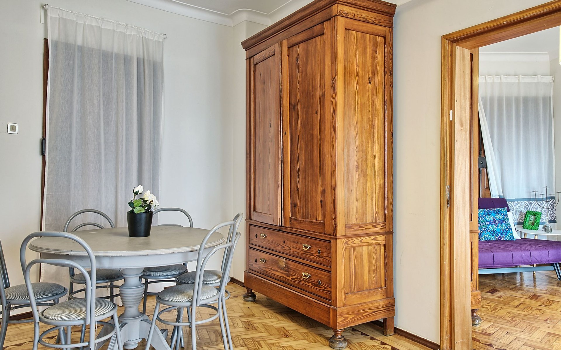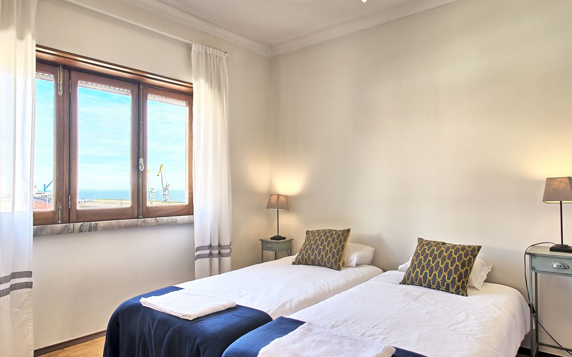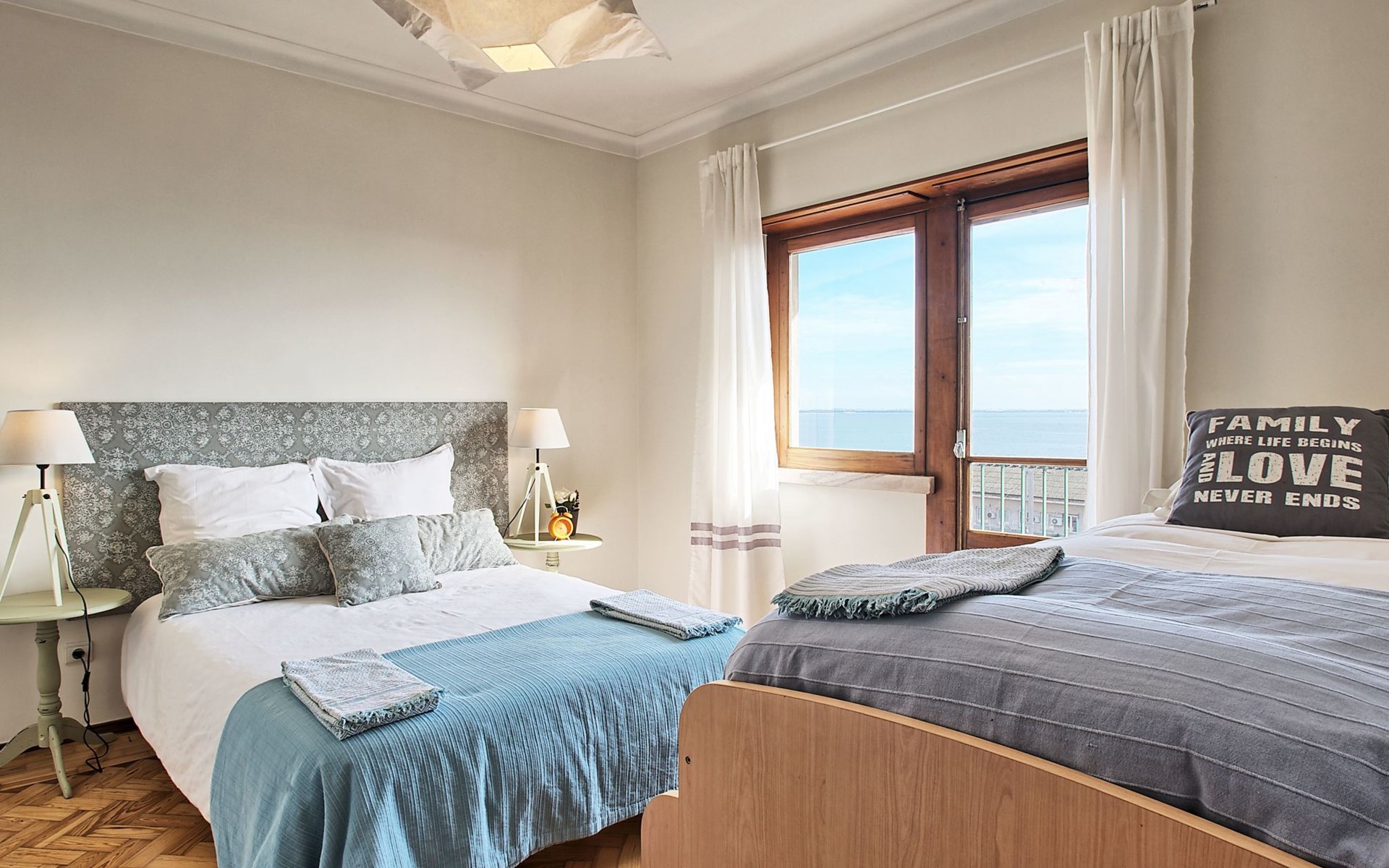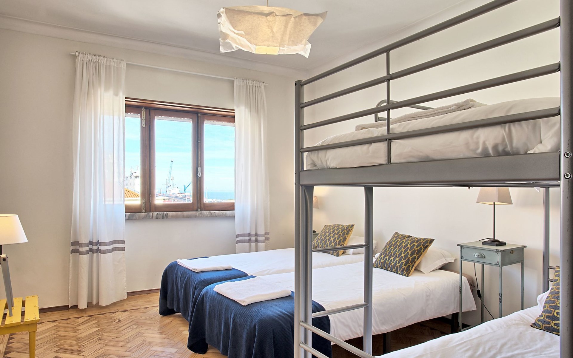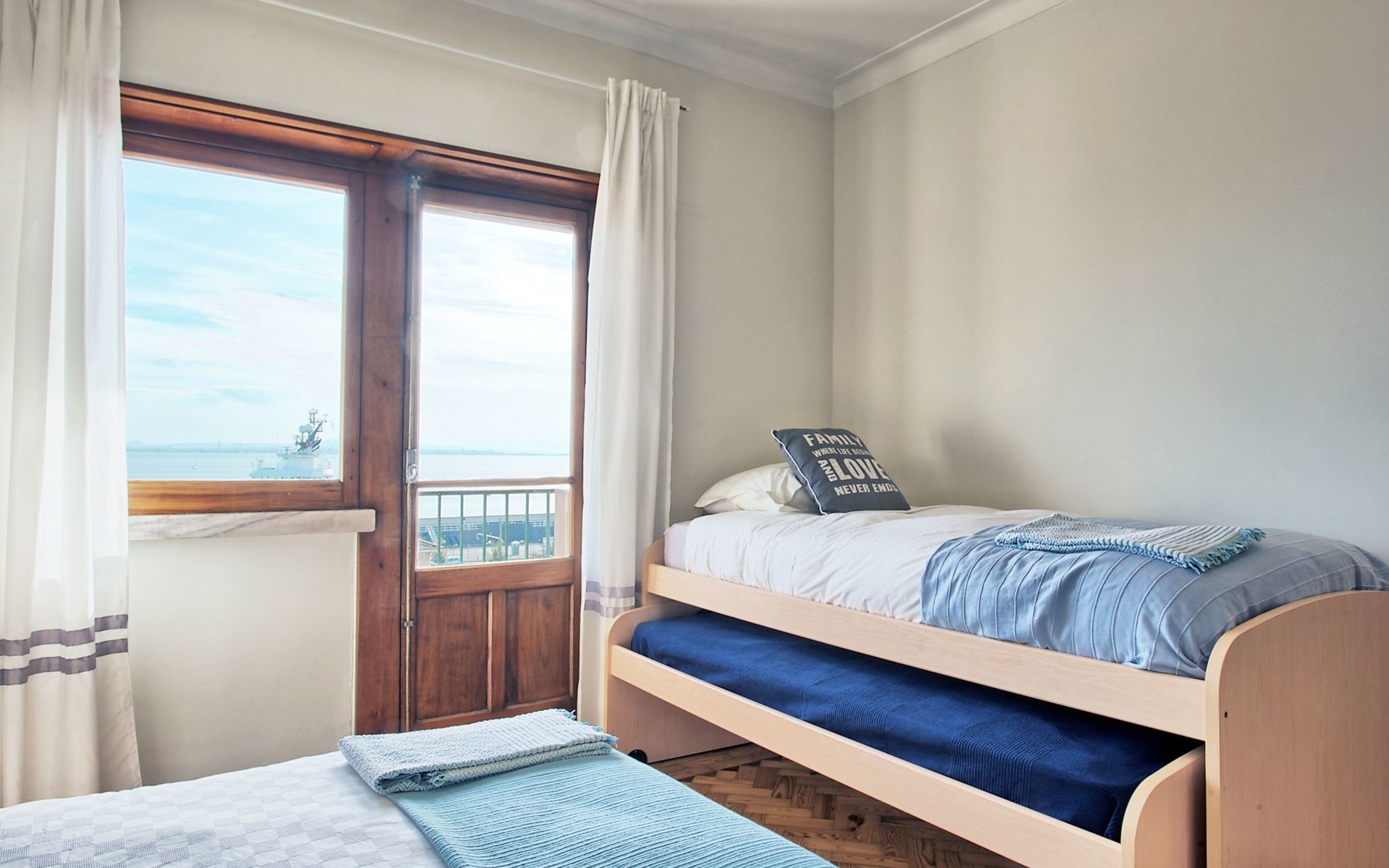Stepping outside, the apartment boasts three side balconies, one of which offers a picturesque view of the River, providing a tranquil setting to enjoy your mornings or evenings. Although grilling is not permitted, these outdoor spaces serve as lovely areas to soak in the surroundings and enjoy the vibrant atmosphere of Lissabón.