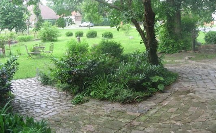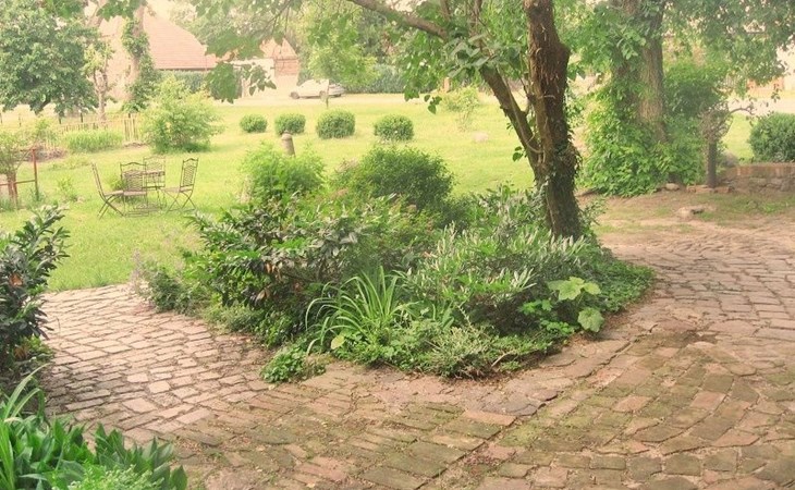 The feel-good ambience continues outside. The terrace invites you to spend relaxing hours outdoors, while the spacious garden, which is for communal use, and the neighbouring former estate park are ideal places to switch off in the midst of nature. Dog owners will also be pleased to know that a medium-sized companion is very welcome.