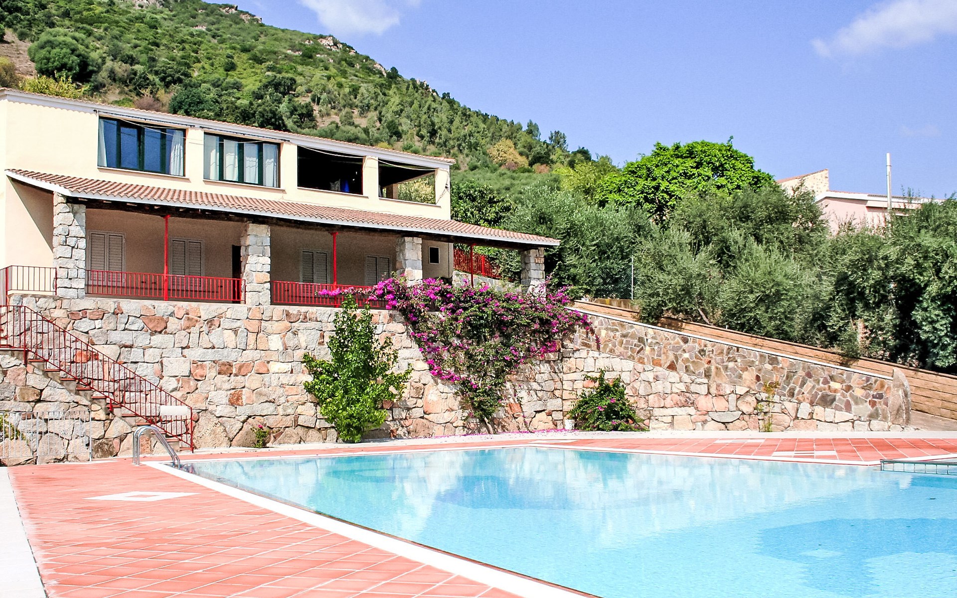Residence "Is Murtas", 2 storeys. 4 km from the centre of Cardedu, 15 km from the centre of Jerzu, in a quiet, sunny, elevated position, 7 km from the sea, in the countryside. For shared use: swimming pool (20 x 7 m, seasonal availability: 15.Jun. - 15.Sep.). Tennis, barbecue house. In the house: restaurant, WiFi, washing machine (for shared use, extra). Parking. Grocery 4 km, bus stop 5 km, sandy beach 7 km. Nearby attractions: Arbatax 40 km, Tertenia 17 km, Santa Maria Navarrese 40 km, Golfo di Orosei 100 km. Please note: car recommended. The photograph shows a typical example. Additional accommodations can be booked.