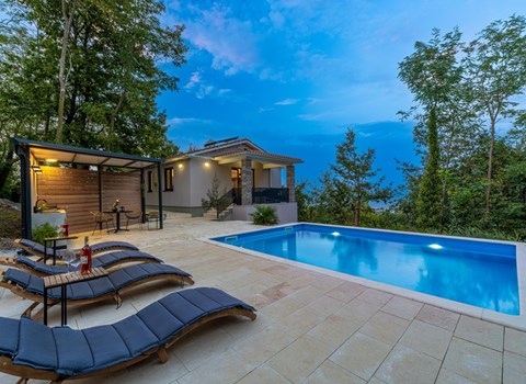 Apartment house "Princip". 2 km from the centre of Labin, 2 km from the centre of Rabac, in a quiet, sunny position on a slope, 2 km from the sea, 2 km from the beach. For shared use: property 3'000 m2 with trees, swimming pool (6 x 3 m, depth 170 cm, seasonal availability: 04.Apr. - 06.Nov.) with internal staircase. Outdoor shower, terrace, garden furniture (slide). In the house: internet access, washing machine. Motor access to the house (100 m via unmade road). Parking. Supermarket 2 km, restaurant 1 km, bus stop 2 km, pebble beach 2 km, rocky beach 2 km. Please note: the owner lives in the same residence.