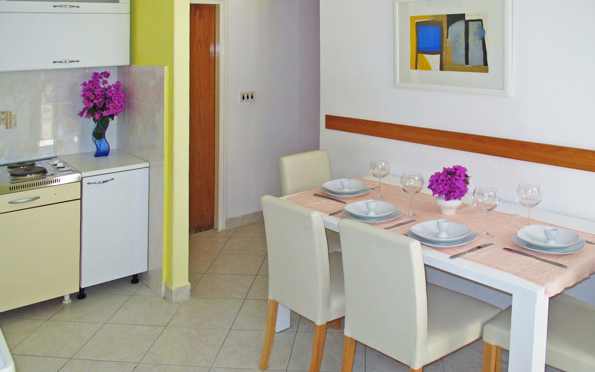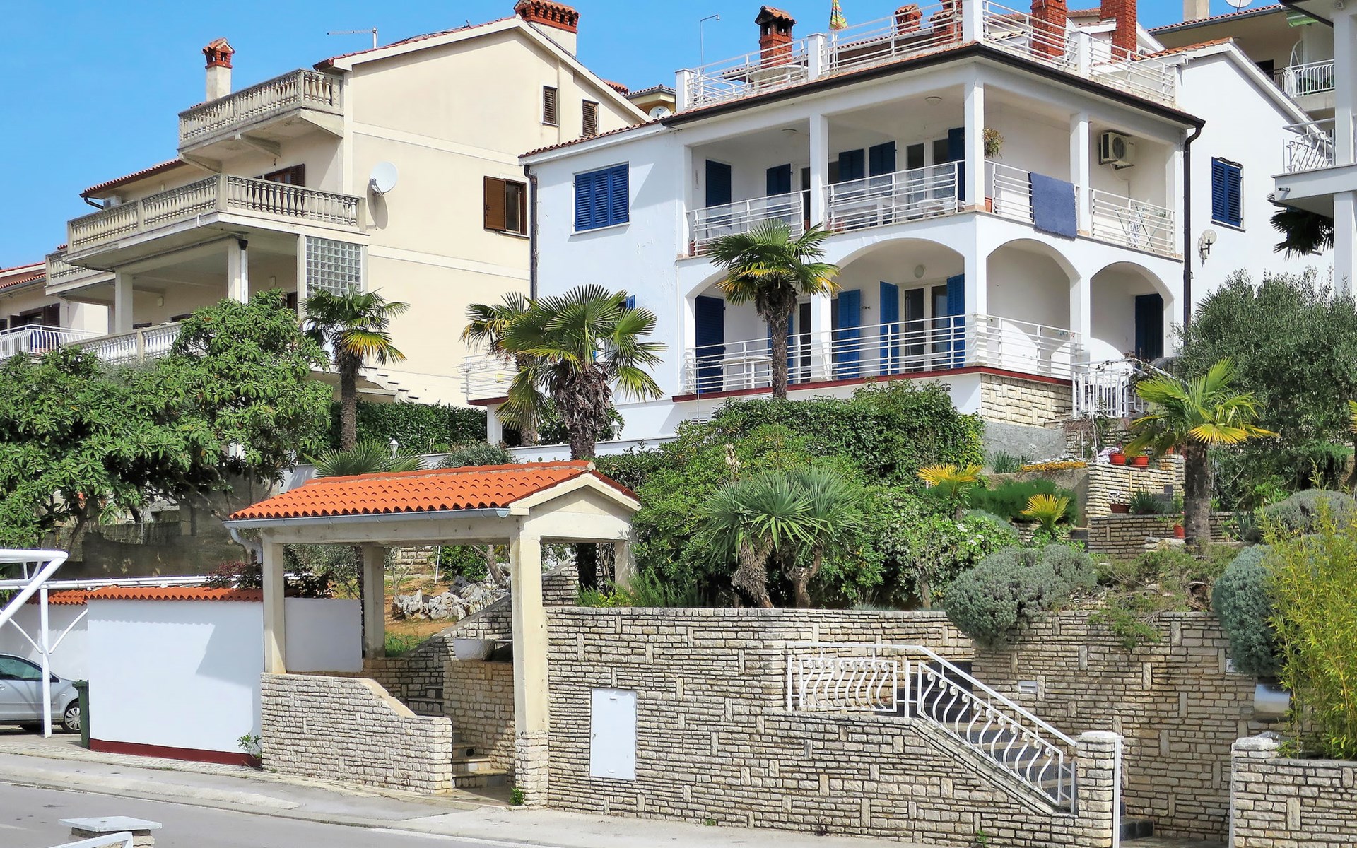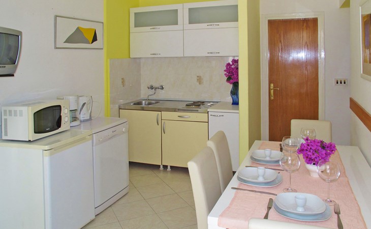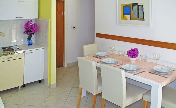 Apartment block "Palma". 750 m from the centre of Rabac, 750 m from the sea, 750 m from the beach. For shared use: property 600 m2 (fenced) with plants and trees. Terrace (18 m2), garden furniture. In the house: internet access. Parking on the premises. Shop 400 m, supermarket 750 m, bus stop 1.3 km, rocky beach 750 m.