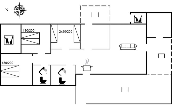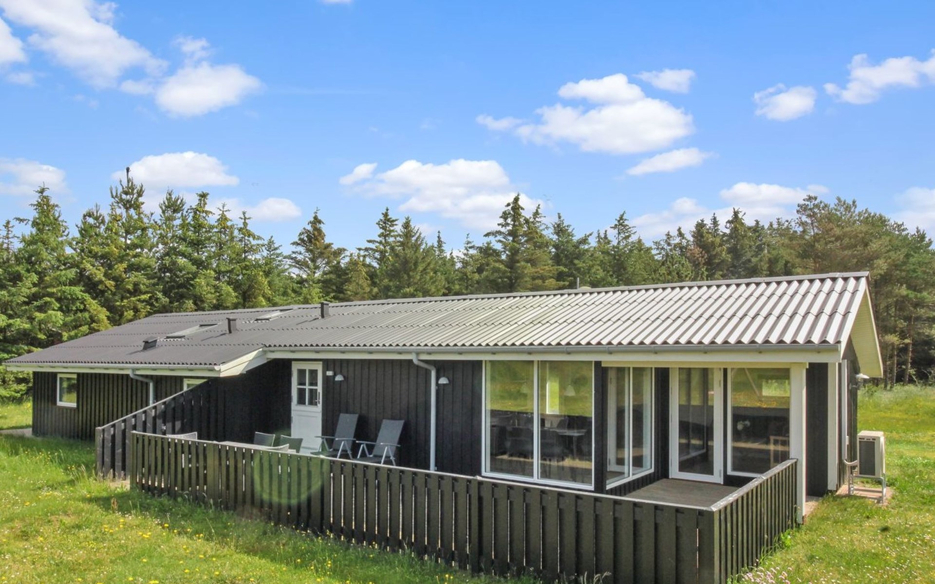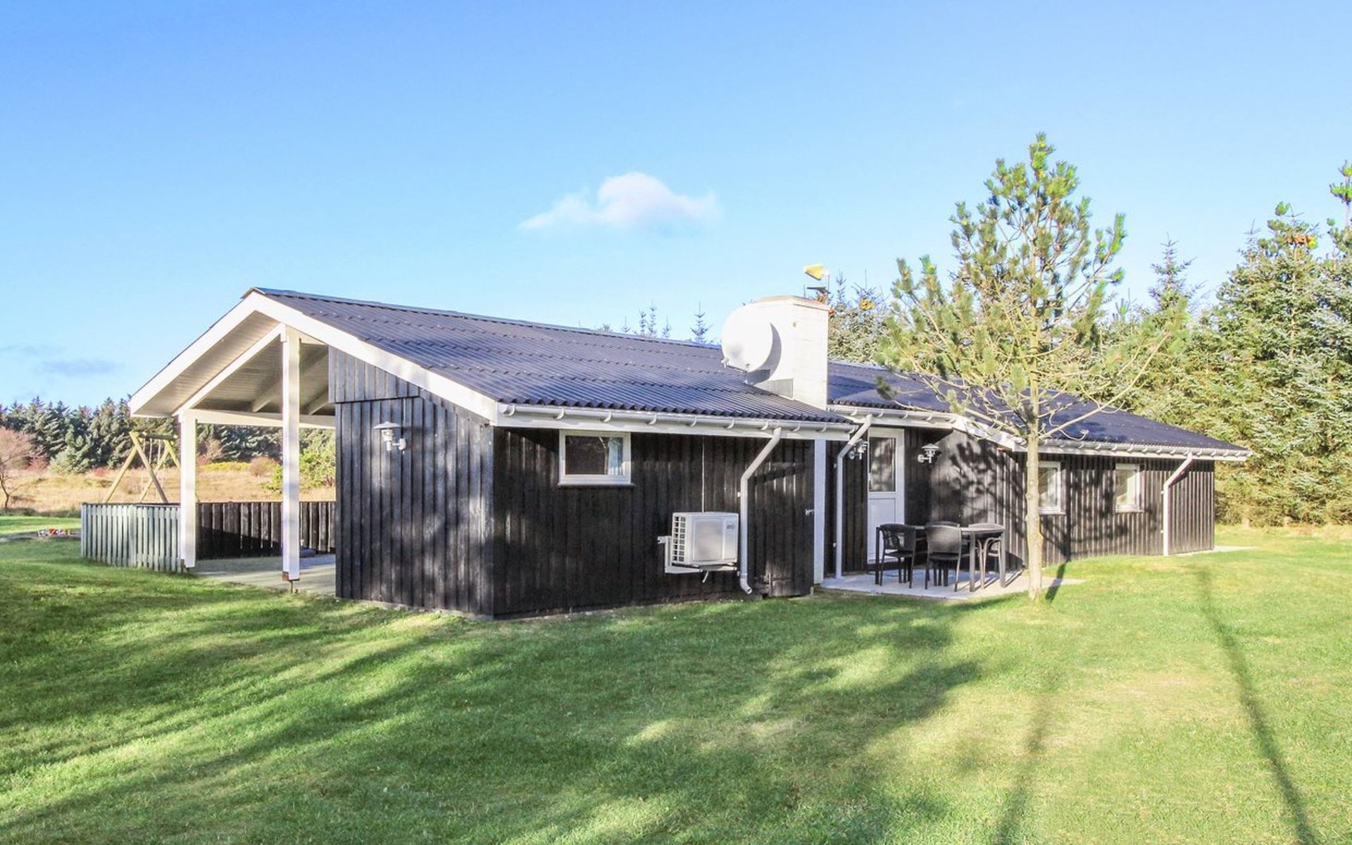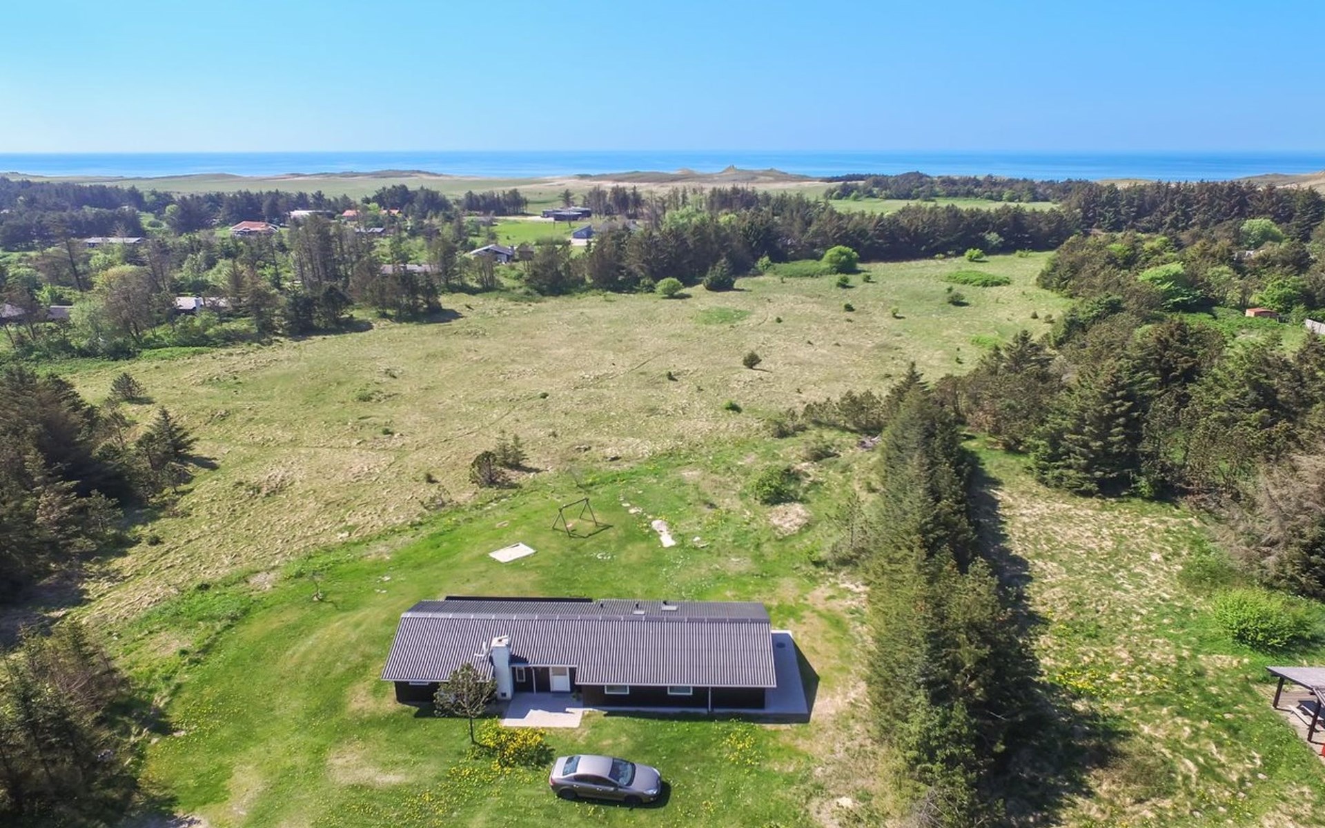 Single-family house, built in 1972. 600 m from the sea. Private: natural state property 2'400 m2. Terrace (50 m2), children's playground (swing). In the house: washing machine. Parking at the house. Grocery 5 km. The owner does not accept any youth groups.