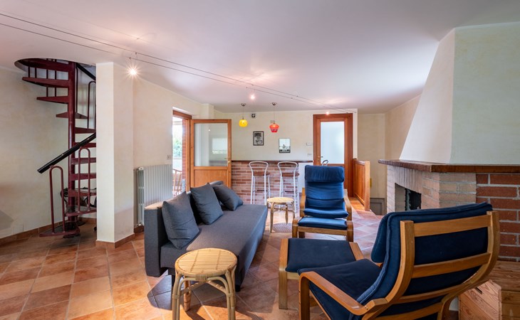 Rustic cottage "Pinetina", 750 m a.s.l.. 1 km from the centre of Bossolasco, 12 km from the centre of Dogliani, 25 km from the centre of Alba, in a sunny position on top of a hill, 65 km from the sea, in the countryside, south-west facing position. Private: property 1'000 m2 (fenced) with trees, natural garden, meadow. Stepped path to the house. Parking at the house on the premises. Supermarket 600 m, bus stop 50 m, railway station "Alba" 25 km, outdoor swimming pool 1 km.