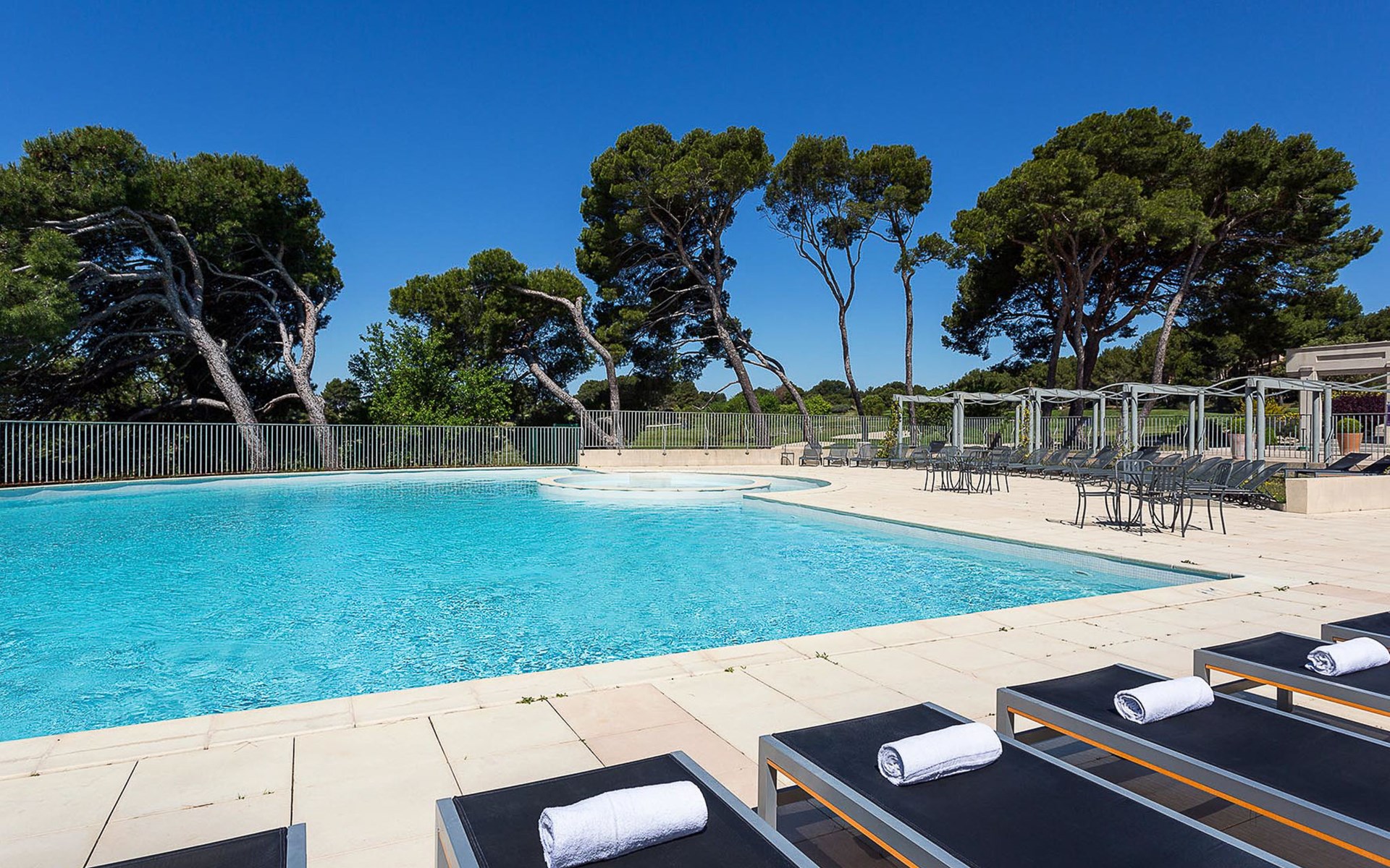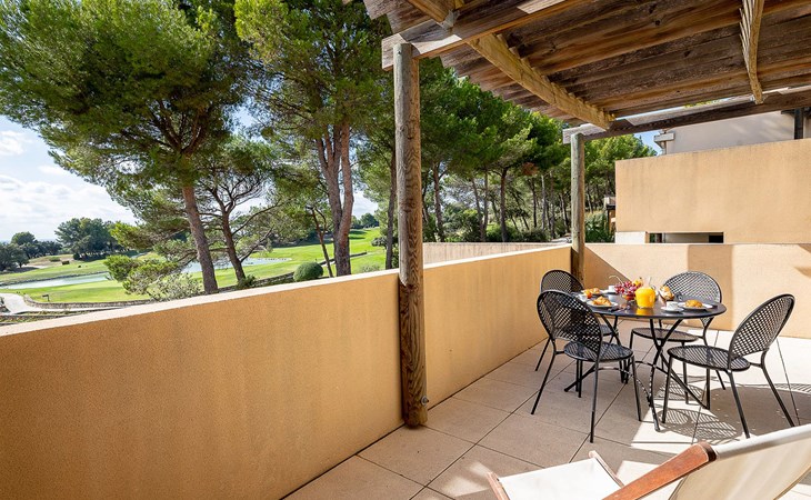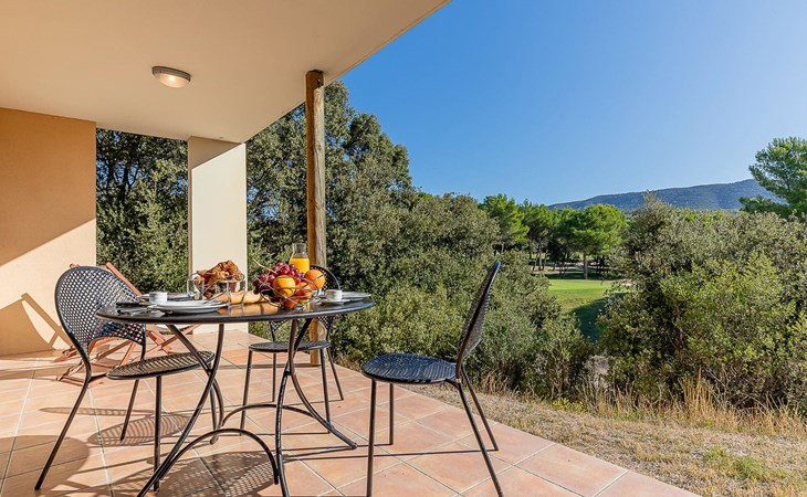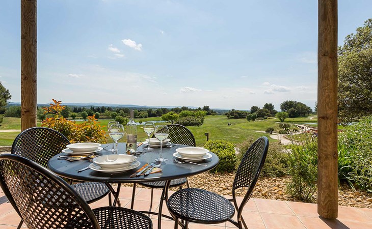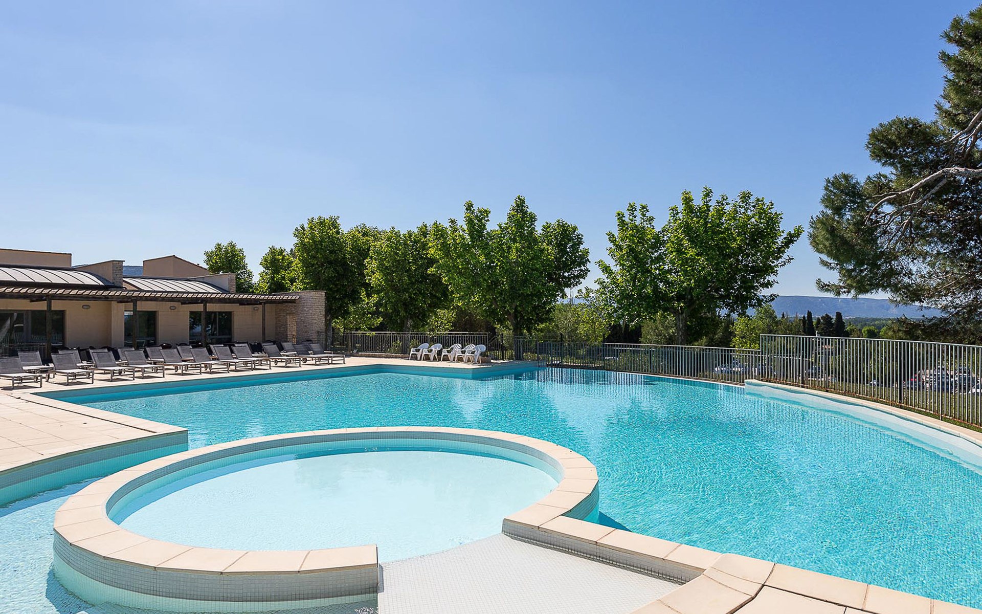 Saumane 3 km from L'Isle-sur-la-Sorgue: Large, beautiful, cosy resort "Provence Country Club". 131 apartments in the residence. In the hamlet Saumane 3 km from the centre of L'Isle-sur-la-Sorgue, 18 km from the centre of Carpentras, 32 km from the centre of Avignon, in the countryside, on the golf course. For shared use: property with lawn and trees, natural garden, meadow, swimming pool (20 x 10 m, seasonal availability: 16.May. - 10.Oct.). Unconventional pool shape. Children's pool, tennis, terrace. In the complex: reception, WiFi, fitness room, washing machine, tumble dryer (for shared use, extra). Bread roll service. Parking on the premises. Supermarket 5 km. Golf course (18 hole) 50 m. Please note: the photograph shows a typical example. The holiday properties may differ in living space, floorplan, equipment and furnishing. Wi-fi only at the reception.