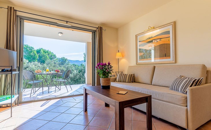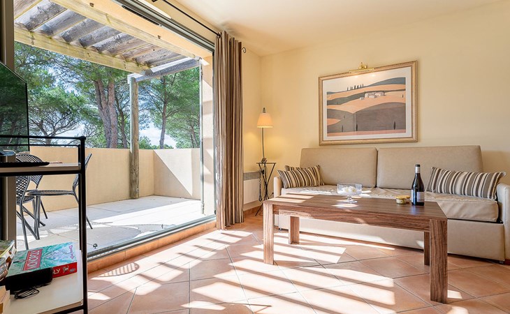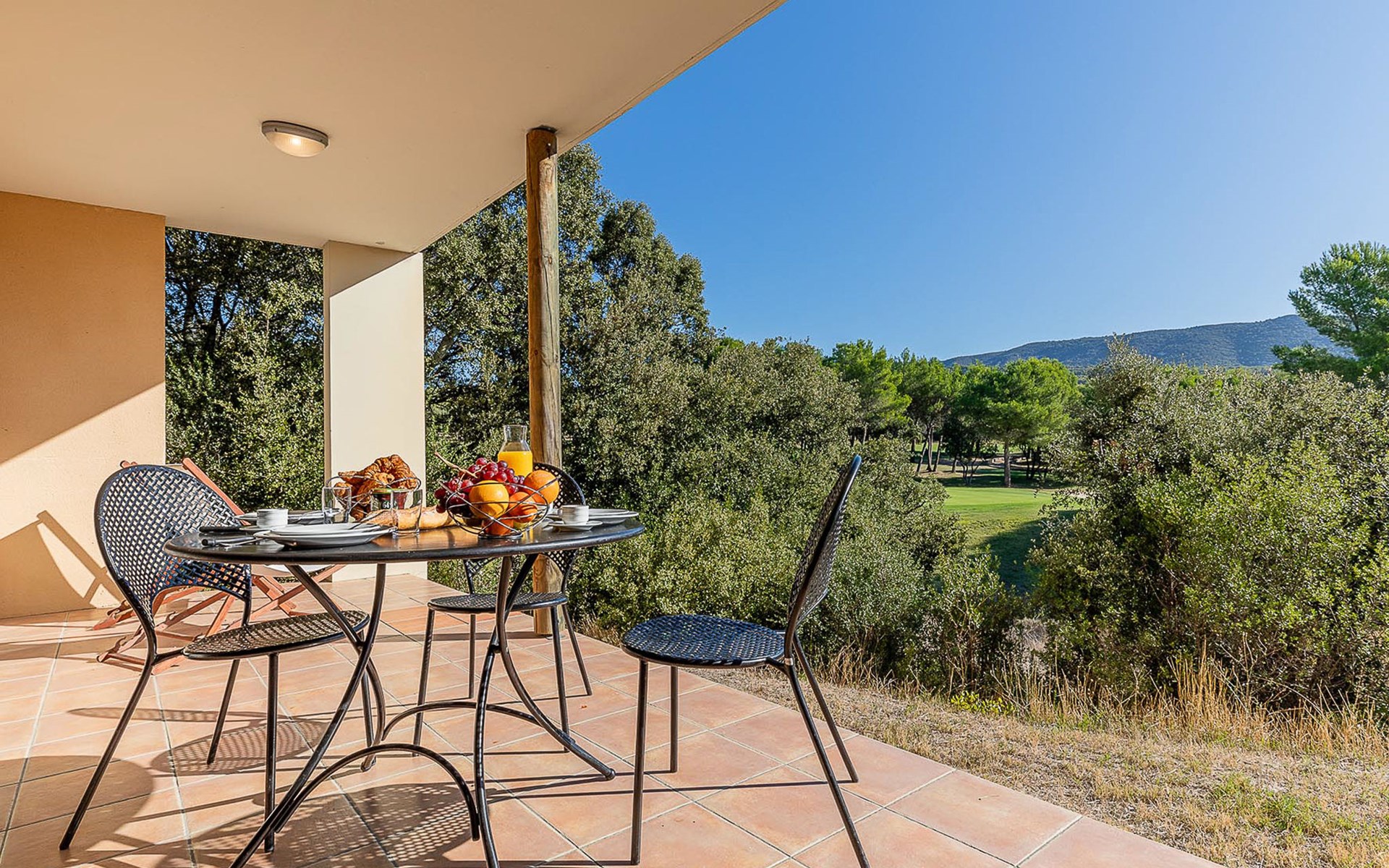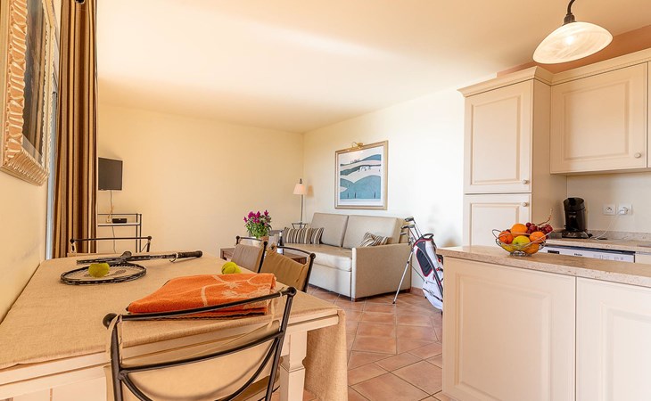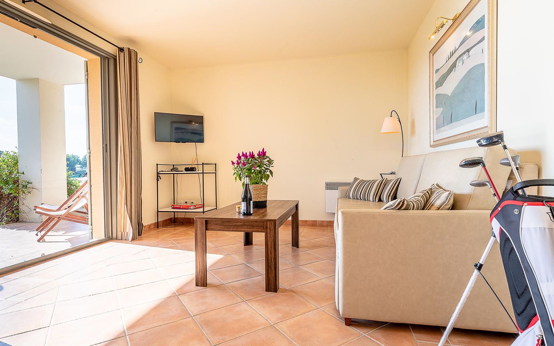 Saumane 3 km from L'Isle-sur-la-Sorgue: Large, beautiful, cosy resort "Provence Country Club". 131 apartments in the residence. In the hamlet Saumane 3 km from the centre of L'Isle-sur-la-Sorgue, 18 km from the centre of Carpentras, 32 km from the centre of Avignon, in the countryside, on the golf course. For shared use: property with lawn and trees, natural garden, meadow, swimming pool (20 x 10 m, seasonal availability: 16.May. - 10.Oct.). Unconventional pool shape. Children's pool, tennis, terrace. In the complex: reception, WiFi, fitness room, washing machine, tumble dryer (for shared use, extra). Bread roll service. Parking on the premises. Supermarket 5 km. Golf course (18 hole) 50 m. Please note: the photograph shows a typical example. The holiday properties may differ in living space, floorplan, equipment and furnishing. Wi-fi only at the reception.