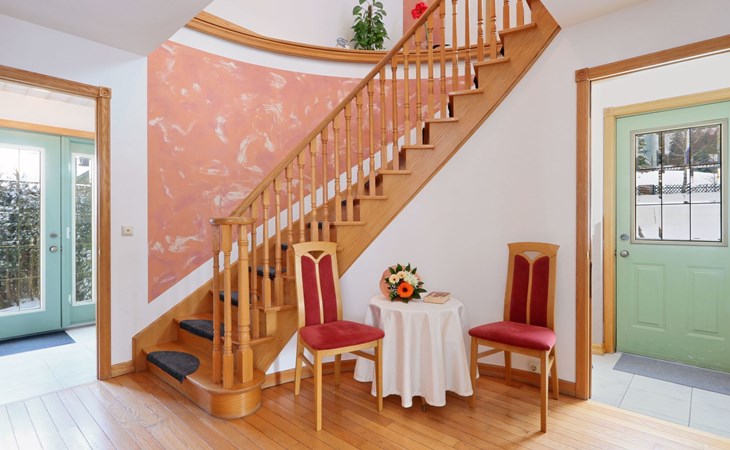 Inside, you will find a well thought-out room layout that skilfully combines comfort and functionality. A washing machine and tumble dryer are available for your exclusive use, ideal for longer stays or active days outdoors. The interior is complemented by contemporary amenities such as a coffee machine, kettle and dishwasher, which make everyday life easier. The inviting living room with fireplace promises cosy hours in convivial company.