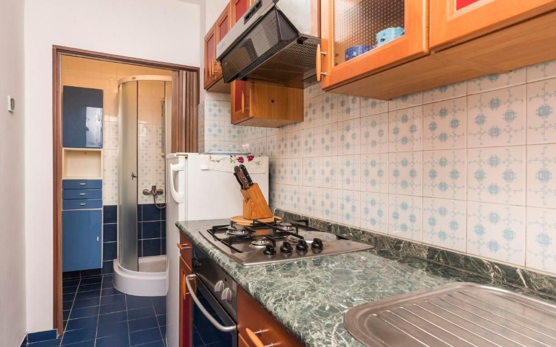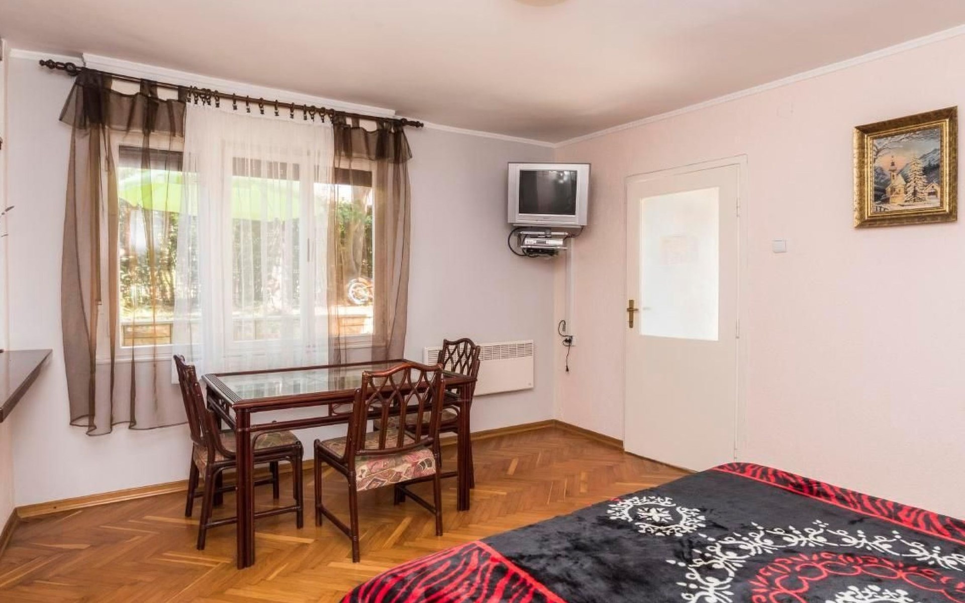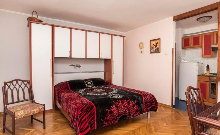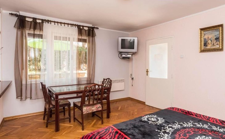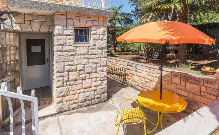 Sweet, simple and modest studio flat for 2 people on the ground floor with terrace and garden furniture with parasol, at the entrance a separate toilet with service, small sink and mirror, the room is furnished with a double bed (160x200) with wardrobe, bed linen (weekly change), table and 2 chairs, flat screen satellite TV, kitchen with 3 gas burners and an electric hob, extractor bonnet, oven, fridge, bathroom with shower and cabinet (without sink) and services), bath towels two per person (changed weekly), free Wi-Fi internet connection (possibly poor reception). Private car park next to the house.