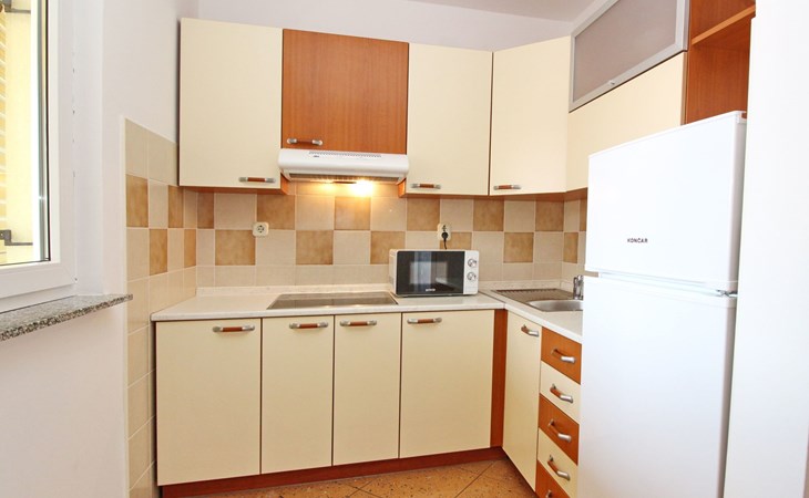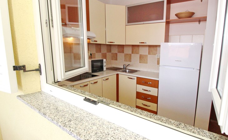 Kitchen : Kitchenette, crockery, cooking pots, cutlery, etc. available, dish towels available, electric cooker, number of hotplates: 4, refrigerator with freezer compartment, coffee machine