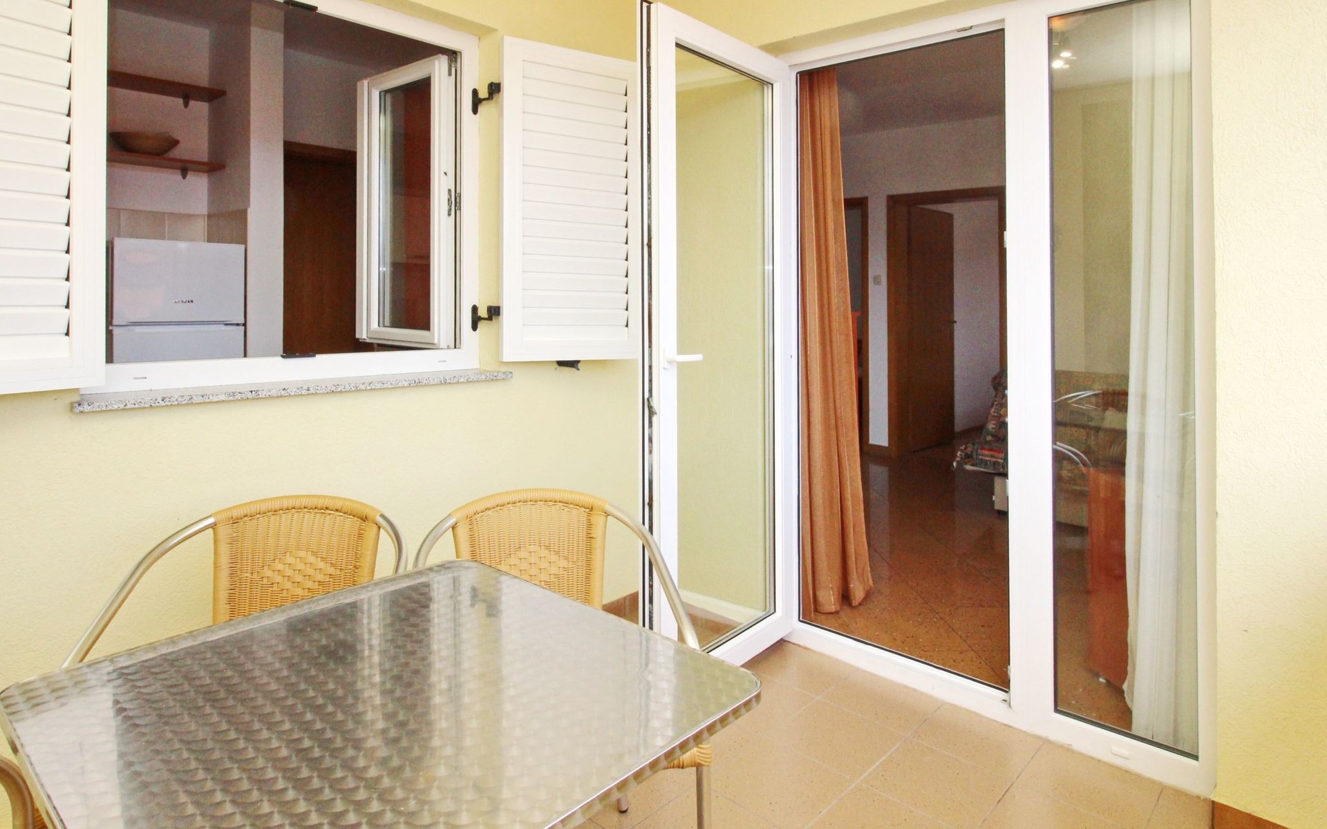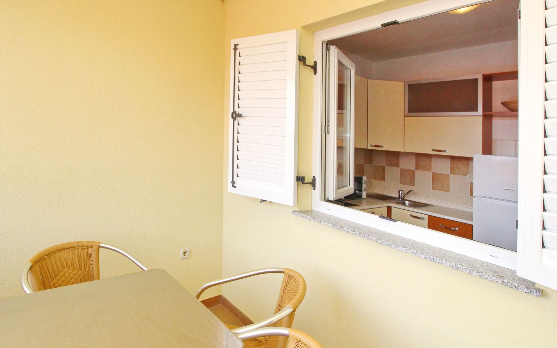 Balcony : a private balcony, covered, tables and chairs for the balcony are available.