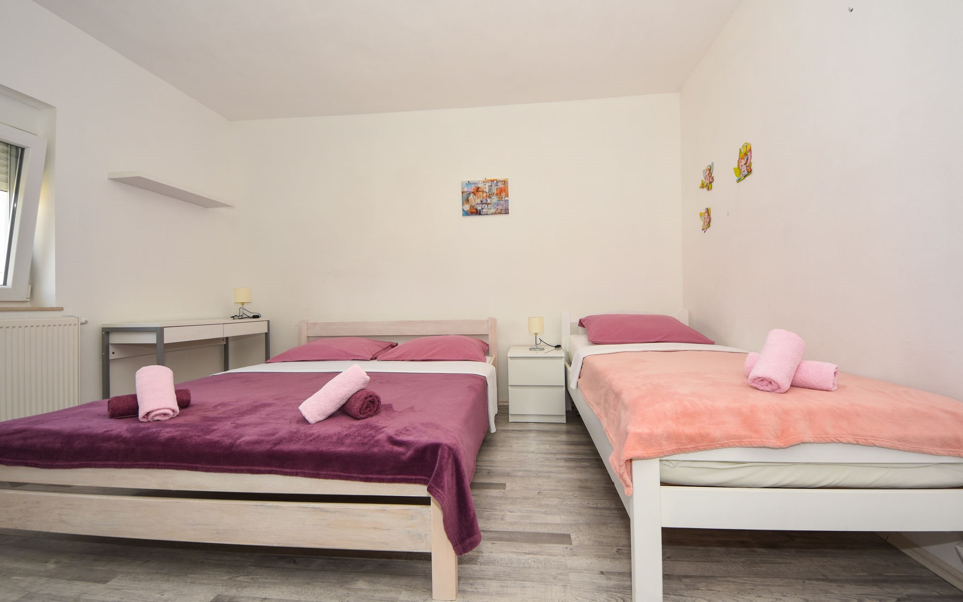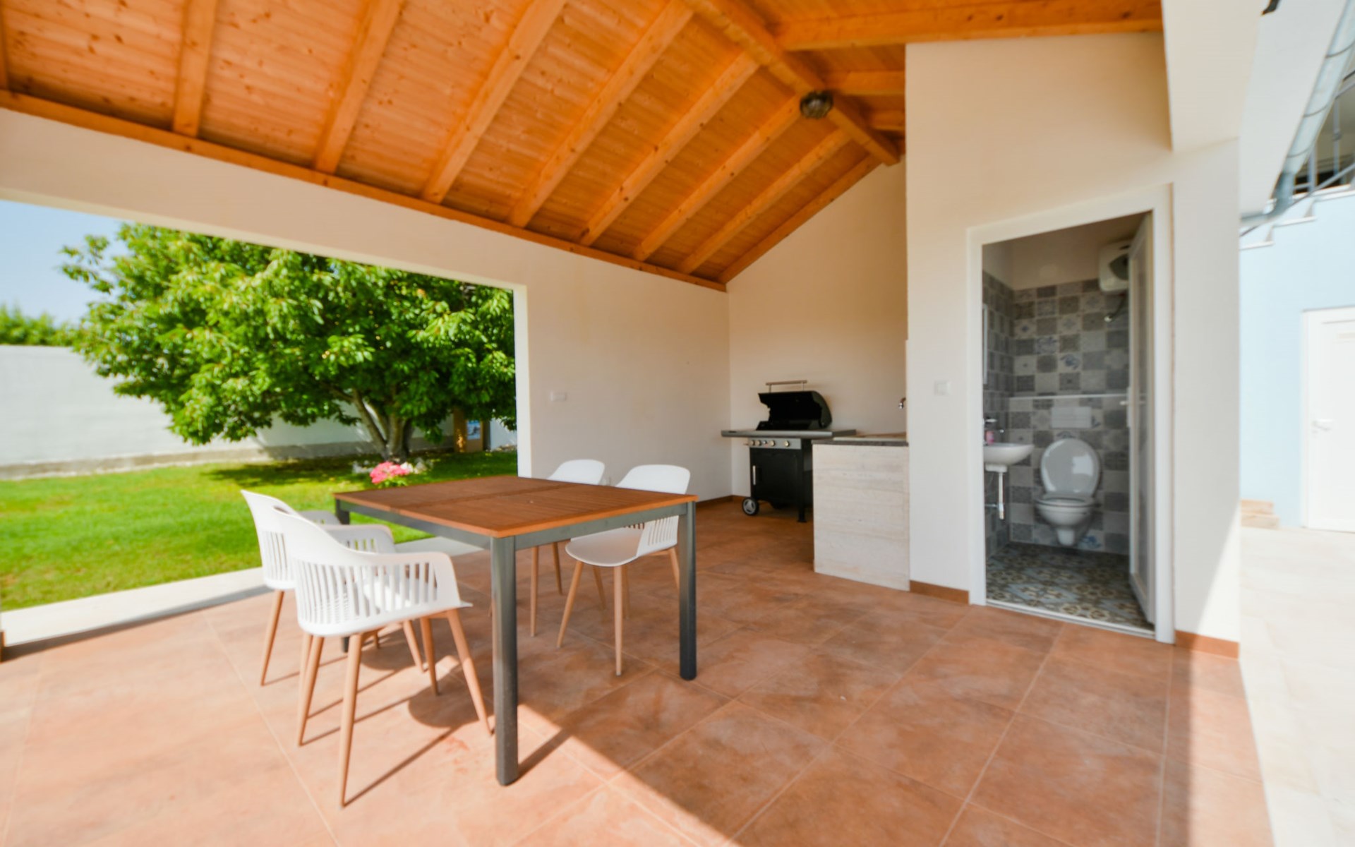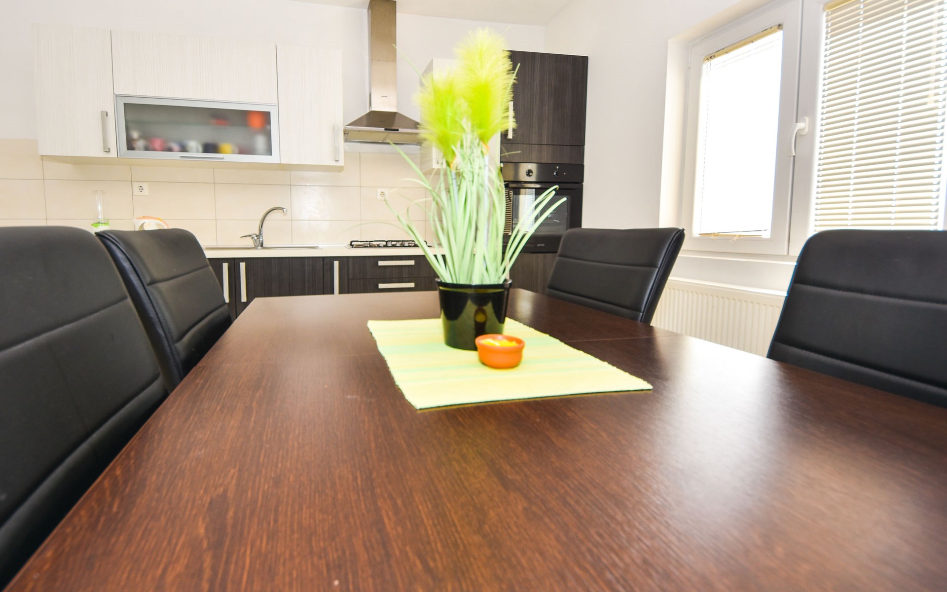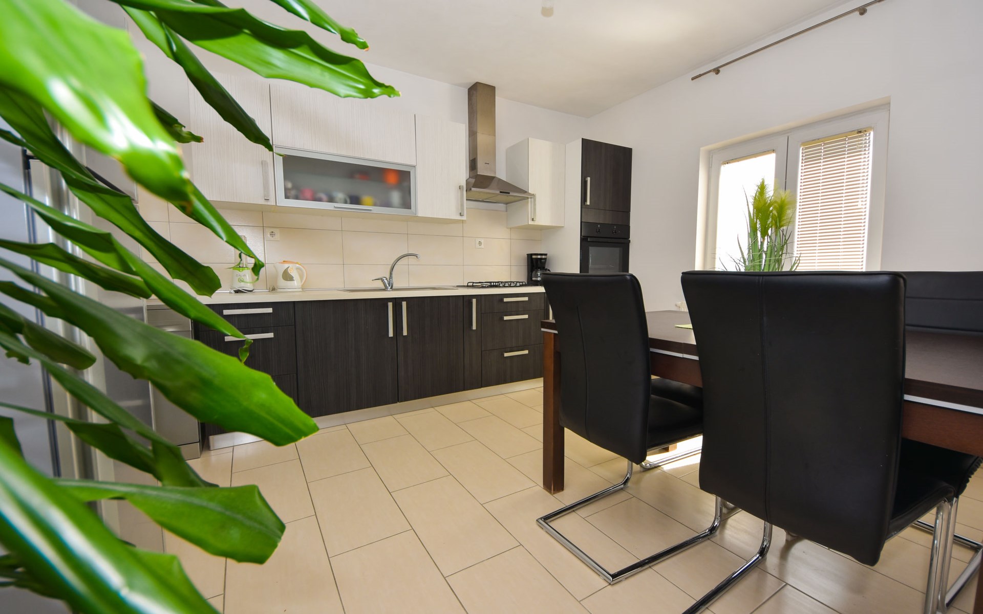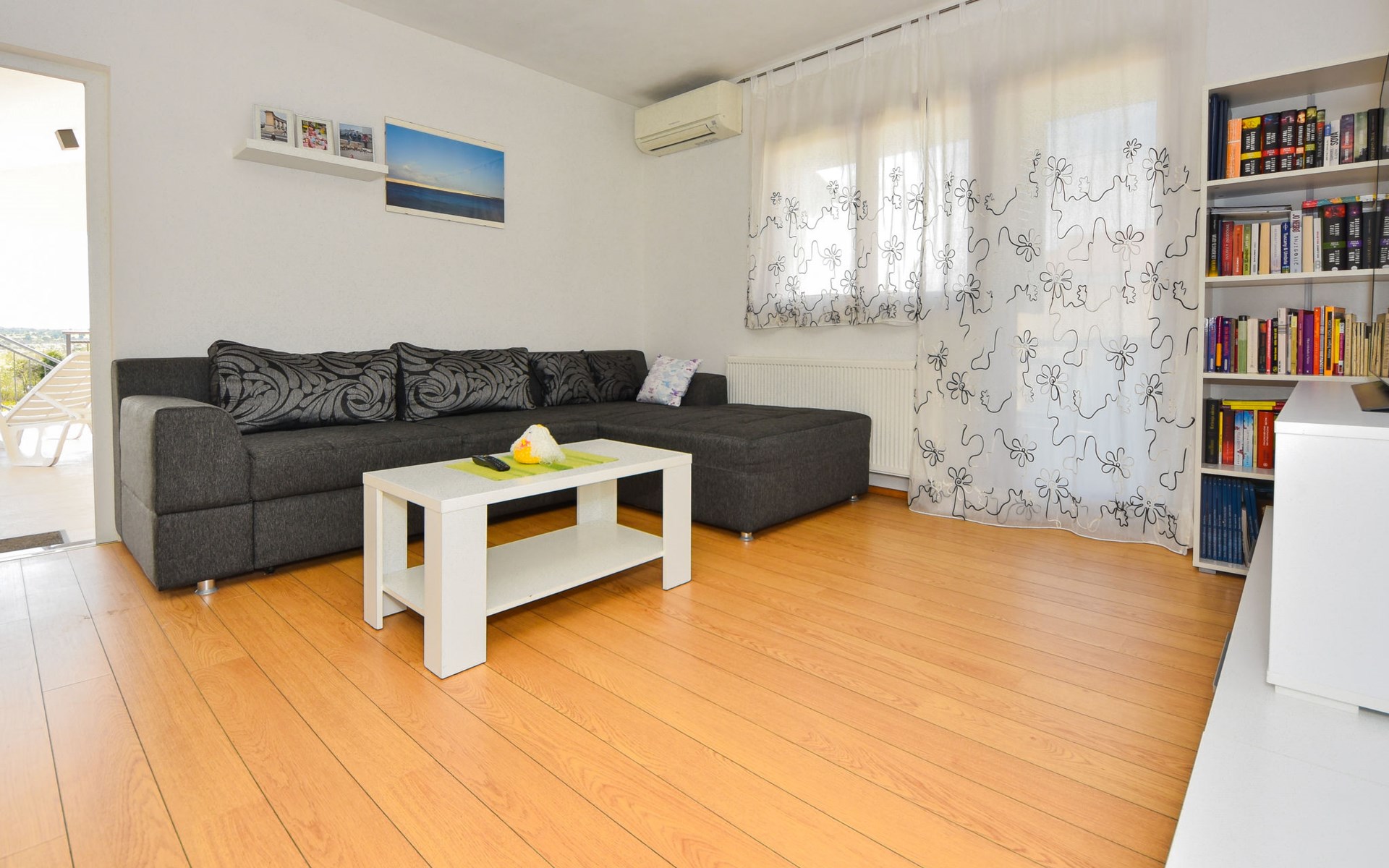 Podgradina 8 km from Novigrad: Terraced house "Elena". 7 km from the centre of Posedarije, in a sunny, elevated position, 2.2 km from the sea, 2.2 km from the beach. Private: property 450 m2 (fenced), swimming pool angular (8 x 4 m, depth 150 cm, seasonal availability: 04.May. - 05.Oct.). WC in the pool area, garden furniture, barbecue house, pool maintenance by the owner/gardener. In the house: internet access. Parking (for 2 cars) at the house on the premises. Shop 750 m, supermarket 6 km, restaurant 5 km, bus stop 500 m, sandy beach 4 km, shingle beach 2.2 km. Nearby attractions: NP Paklenica 30 km, NP Krka 80 km. Groups of teenagers on request only. Please note: the owner lives on the same property.
