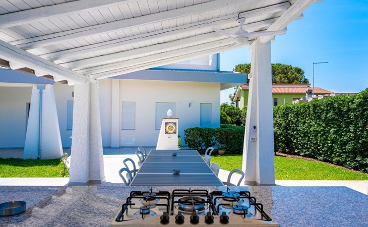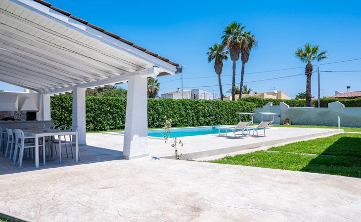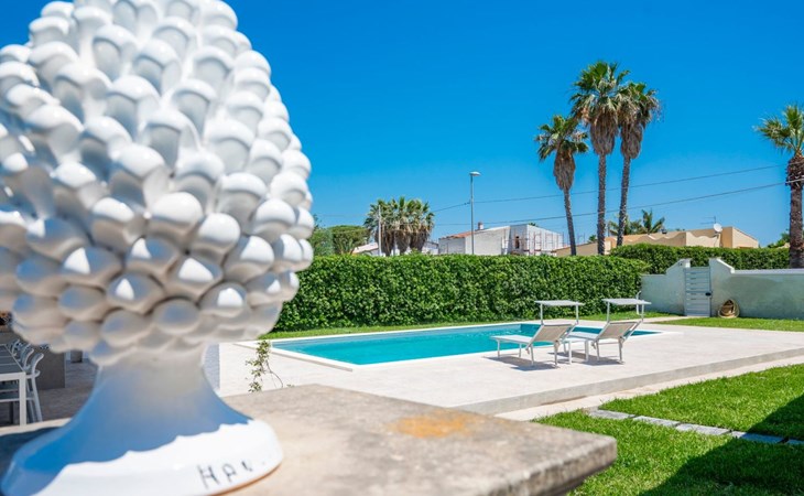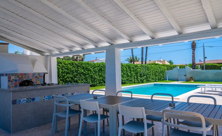 Inside, the villa is distinguished by its attention to detail and comprehensive amenities. It has a total of 5 bedrooms, 3 of which are located on the ground floor - 2 doubles and 1 twin. An additional double room and a twin room with single beds are located on the first floor, providing adequate space for privacy and rest for all guests. All rooms are air-conditioned, providing unparalleled comfort even on the hottest Sicilian summer days. The villa also provides 3 full bathrooms, a washing machine for exclusive use, an induction oven, and a dishwasher, allowing you to live your daily life in a practical and carefree manner.